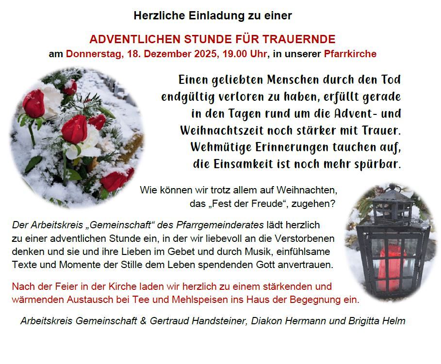 9.55 Rosenkranz, 10.30 Hl. Messe