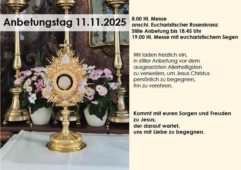 9.55 Rosenkranz, 10.30 Hl. Messe