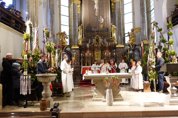 Nachdem der Frühling eine Pause machte, wurde heuer der Palmsonntag witterungsbedingt in der Kirche begangen, aber nicht minder feierlich und eindrucksvoll.
