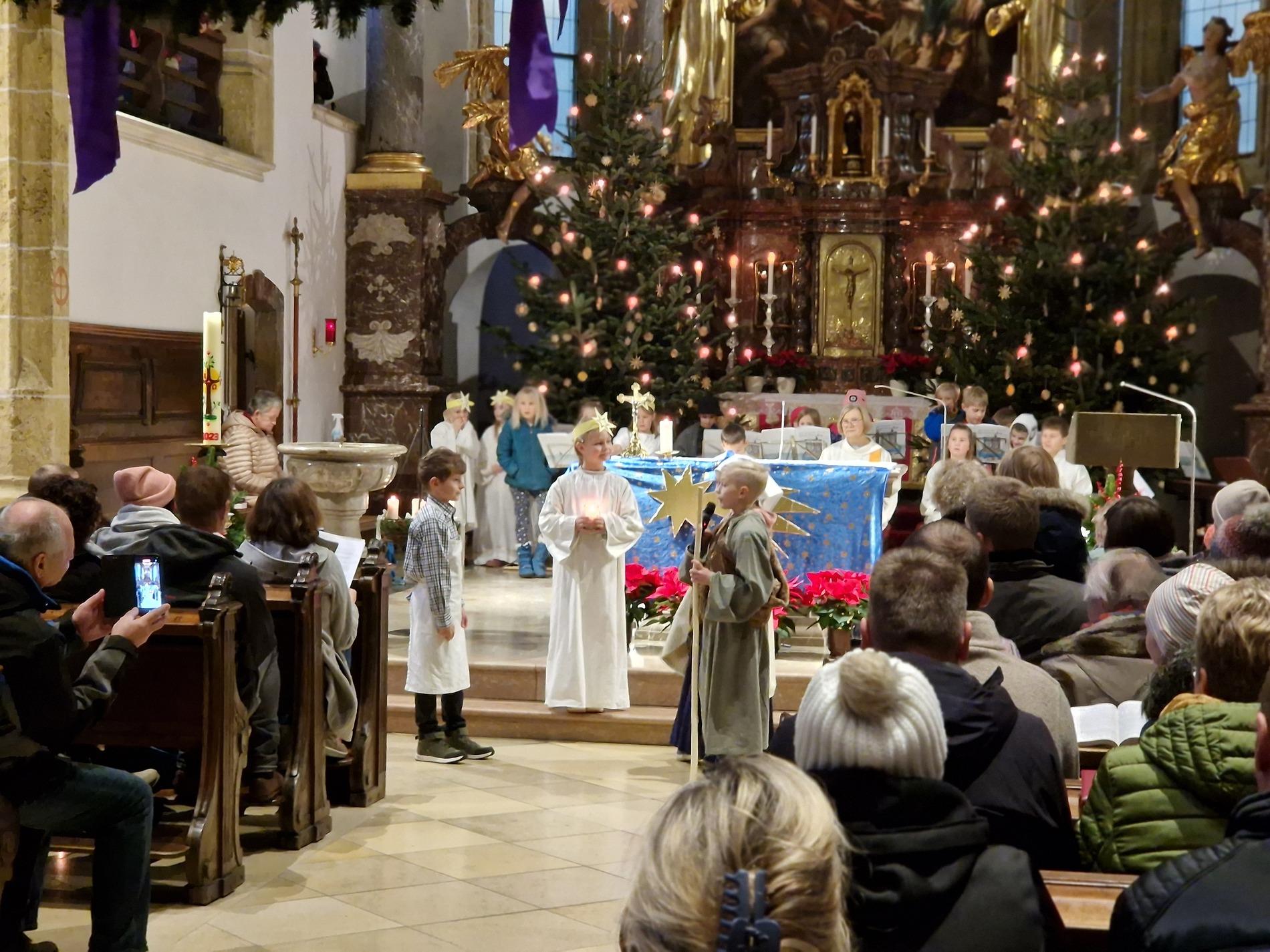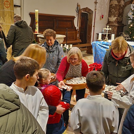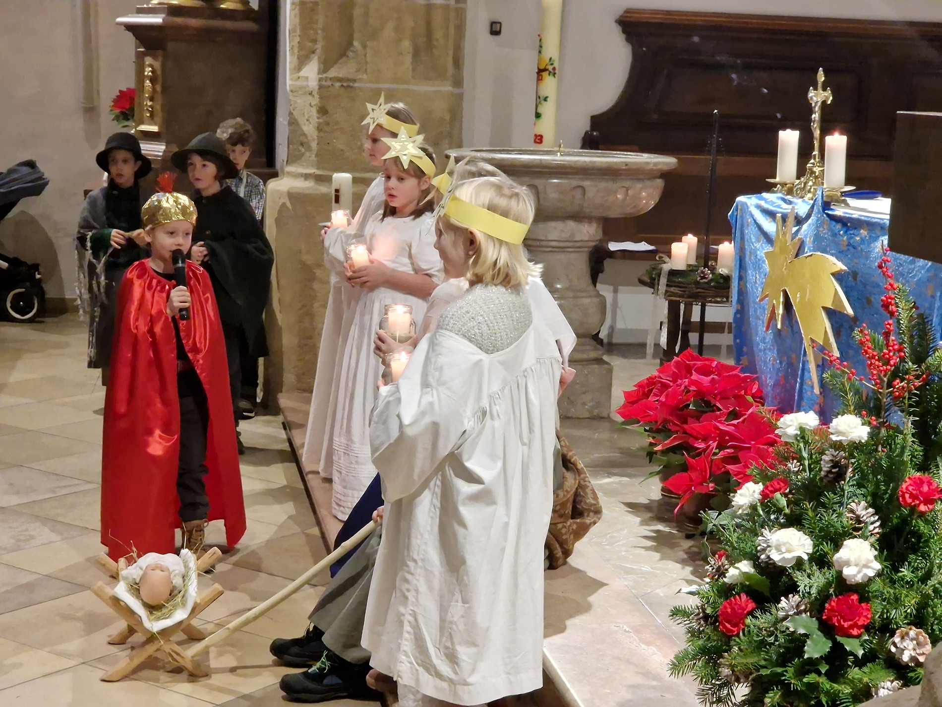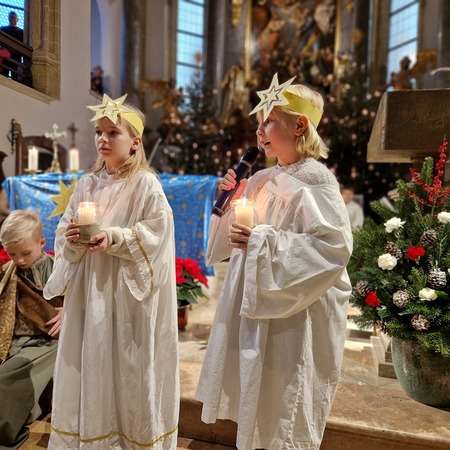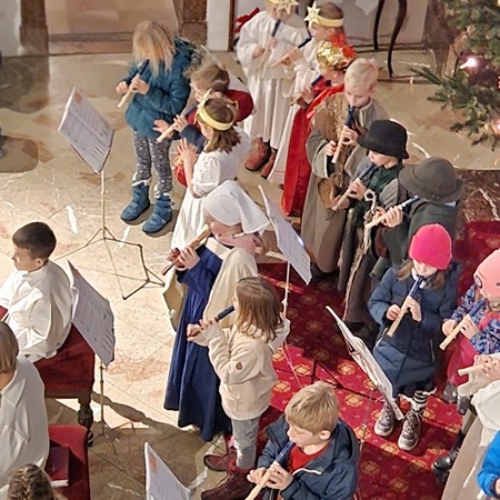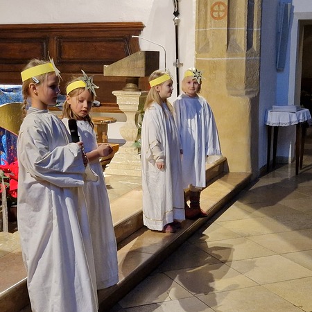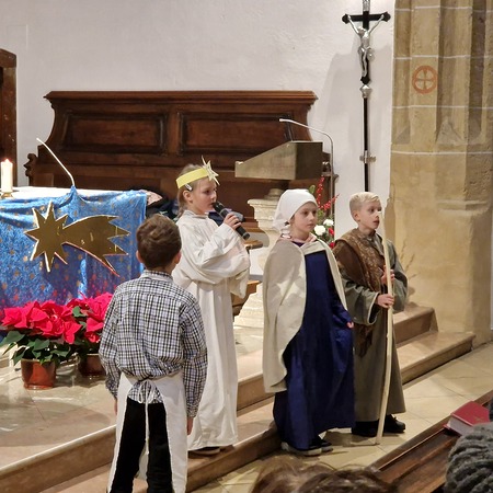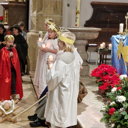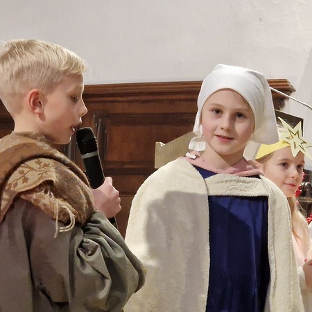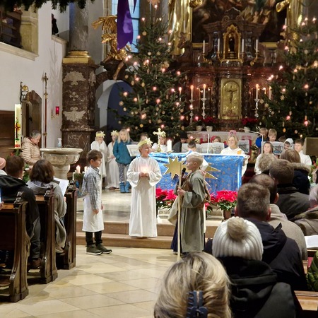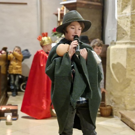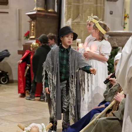 Am Nachmittag wurde in der zahlreich besuchten Kinderweihnacht das Krippenspiel „Licht der Welt“ dargestellt. Musikalisch gestalteten Kinder das Krippenspiel mit weihnachtlichen Melodien auf der Blockflöte. Mit folgenden Segenswünschen von Veronika Fuchslueger gingen die Kinder mit ihren Eltern und Großeltern in freudiger Erwartung nach Hause. „Ich wünsche uns, dass das Kind in der Krippe unsere Herzen berührt, dass der Stern unsere Gedanken führt, dass der Segen der Heiligen Nacht herabkommt und immer bei uns bleibt.“