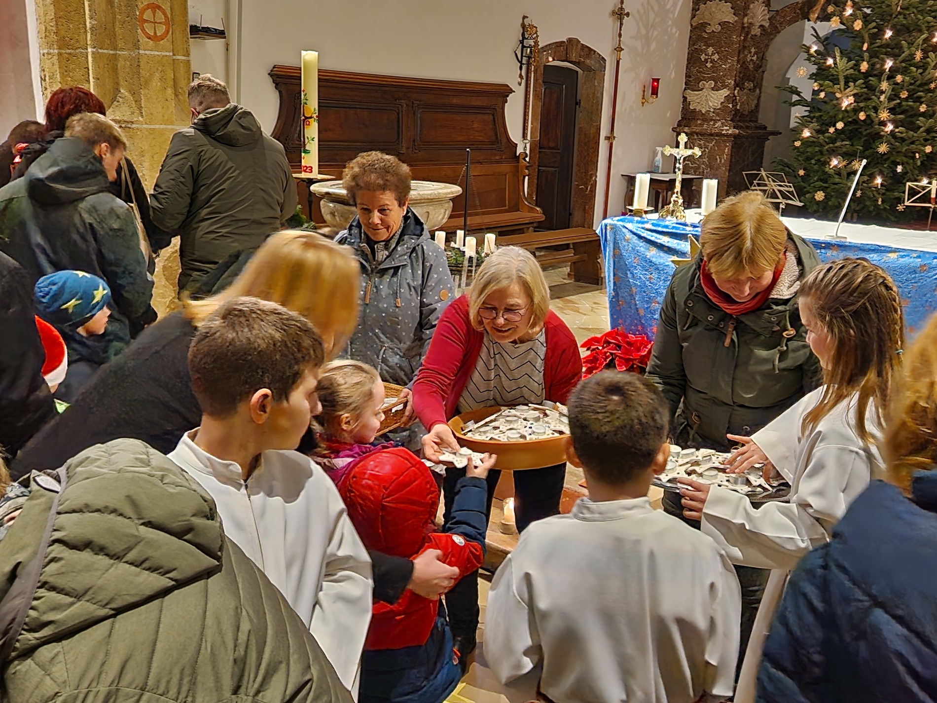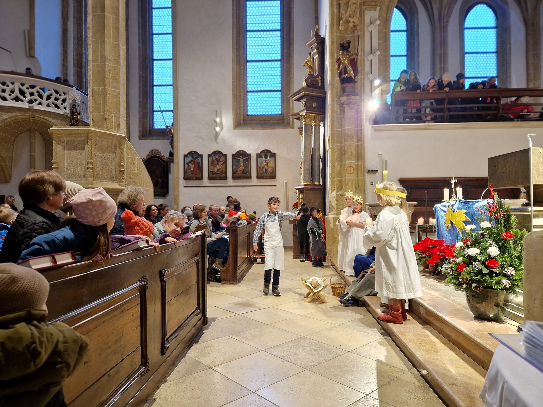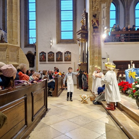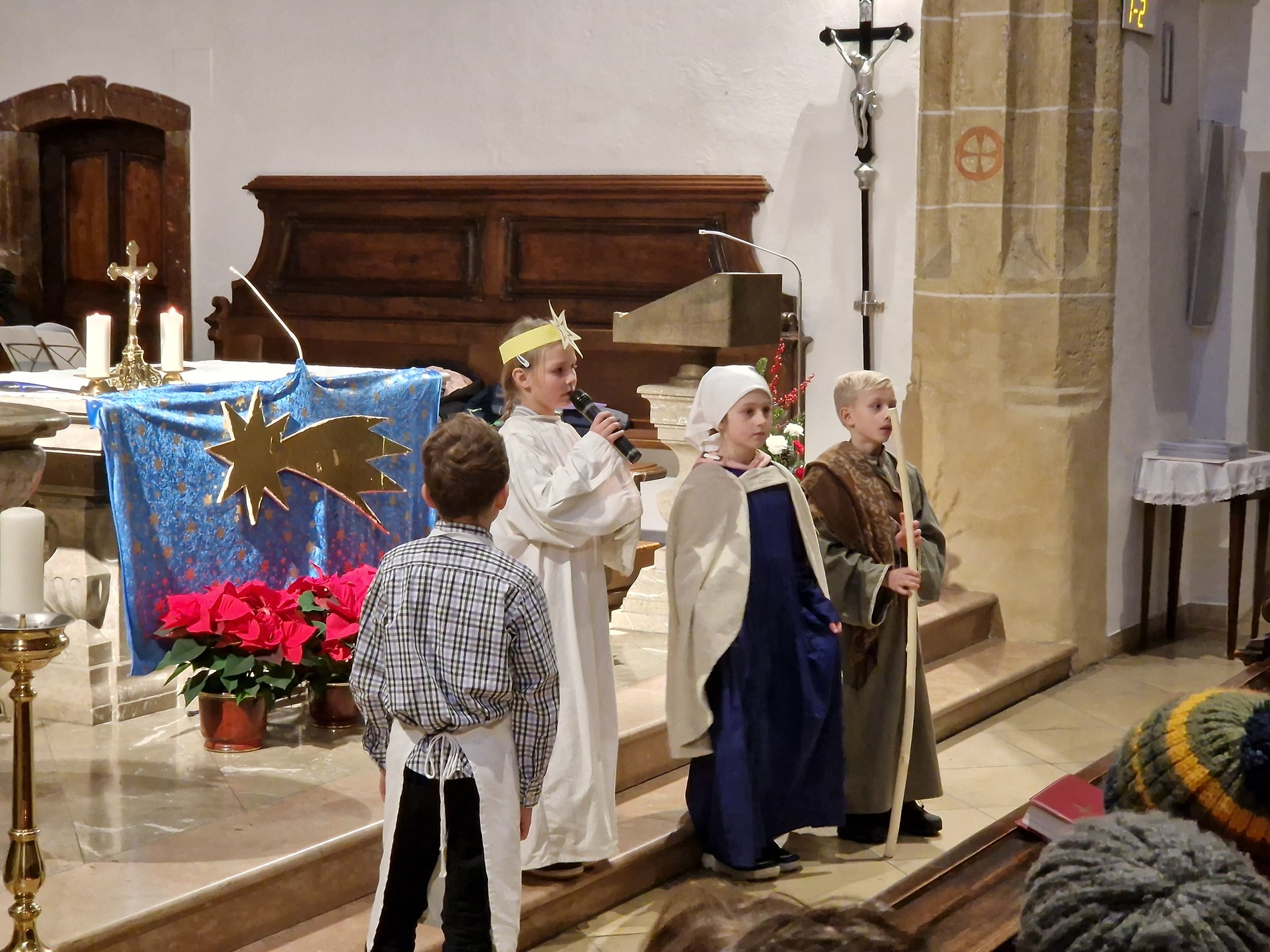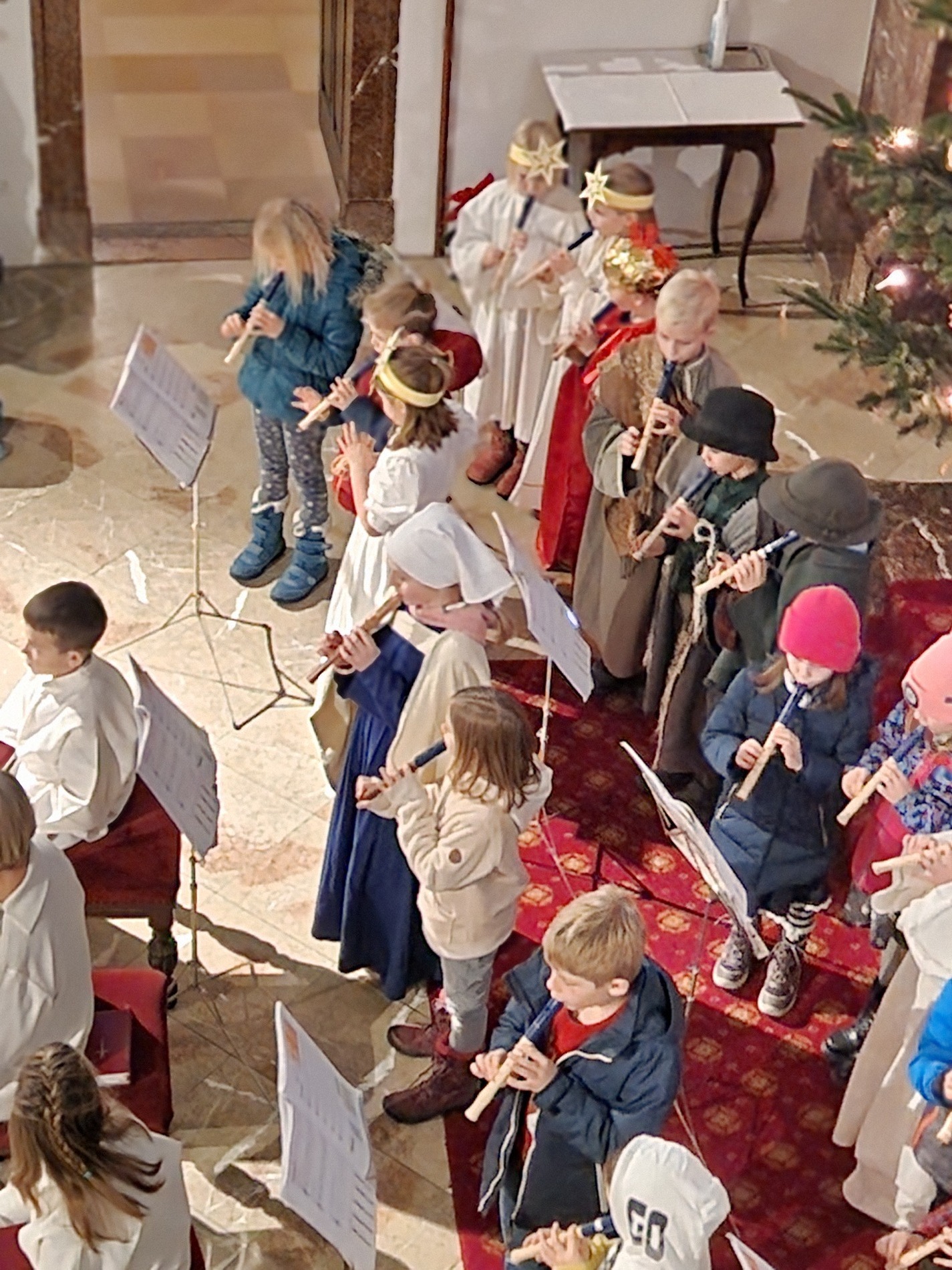 Am Nachmittag wurde in der zahlreich besuchten Kinderweihnacht das Krippenspiel „Licht der Welt“ dargestellt. Musikalisch gestalteten Kinder das Krippenspiel mit weihnachtlichen Melodien auf der Blockflöte. Mit folgenden Segenswünschen von Veronika Fuchslueger gingen die Kinder mit ihren Eltern und Großeltern in freudiger Erwartung nach Hause. „Ich wünsche uns, dass das Kind in der Krippe unsere Herzen berührt, dass der Stern unsere Gedanken führt, dass der Segen der Heiligen Nacht herabkommt und immer bei uns bleibt.“