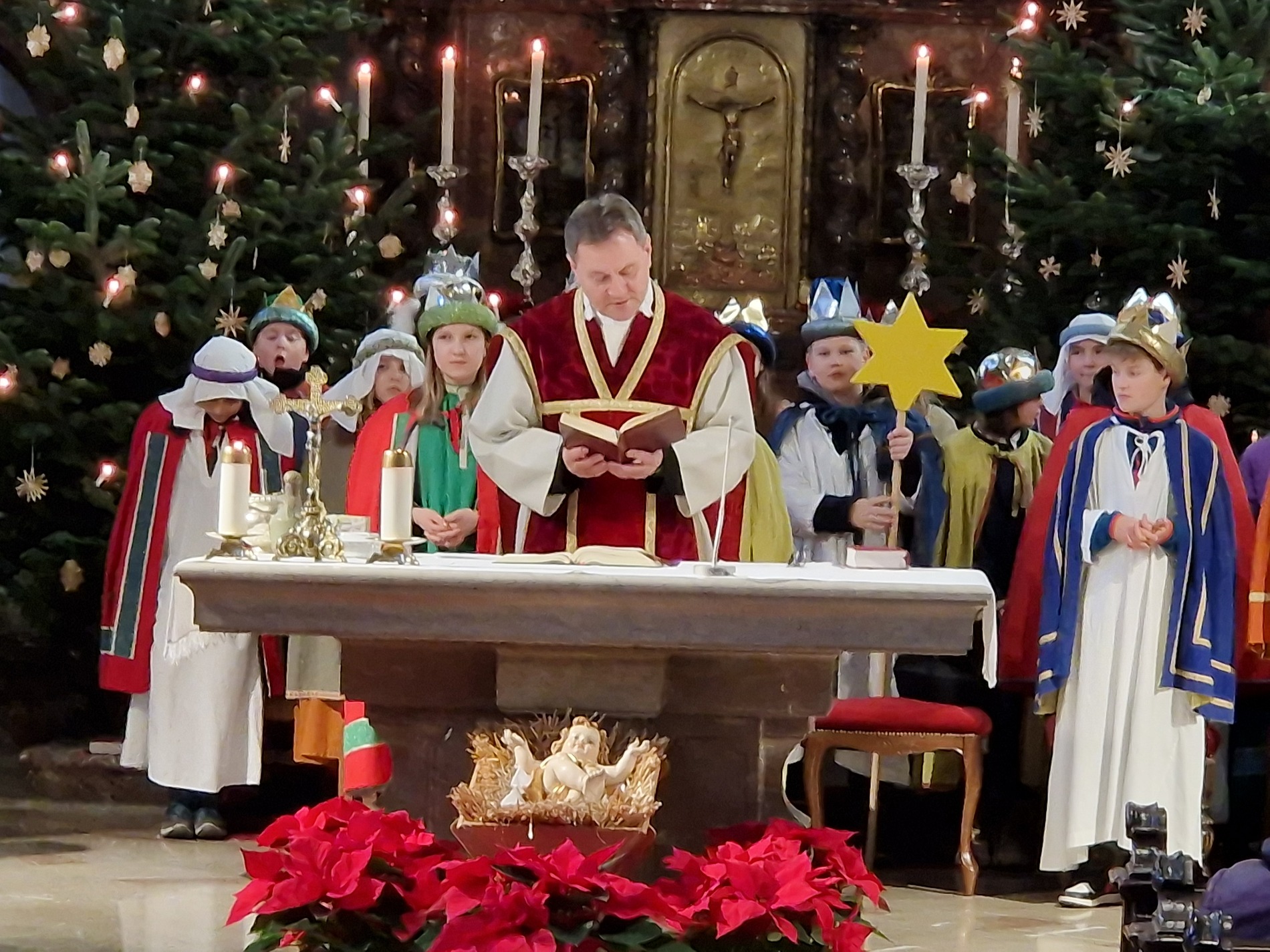 Am Stefanitag stellte sich die große Schar der Sternsinger mit ihren Liedern u. Sprüchen der Pfarre vor, und P. Jacobus entsandte sie mit Gottes Segen in die Häuser unserer Pfarre.