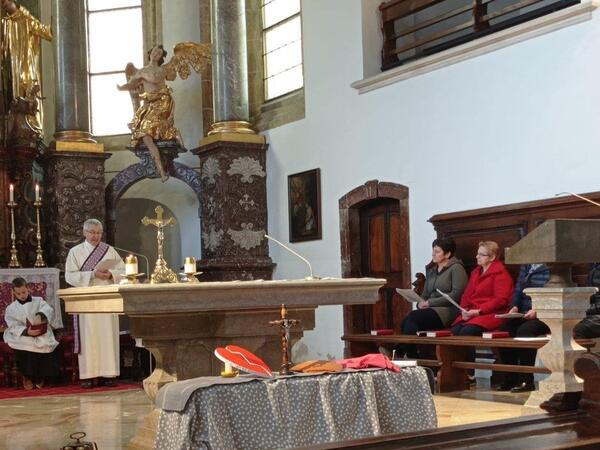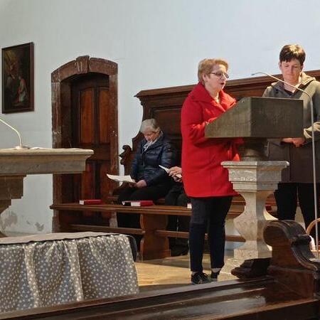Heuer stand die Kreuzwegandacht unter dem Thema „Frauen stärken mich auf meinem Lebensweg“: Biblische Frauengestalten, die Jesus auf seinem Leidensweg begleitet und gestärkt haben, sollen uns helfen, mutig und gestärkt unseren Weg zu gehen: die Frau des Pilatus, Veronika, die weinenden Frauen, die Frauen unter dem Kreuz, die Gottesmutter Maria und Maria Magdalena – sie alle wurden von Diakon Hermann und dem Führungsteam mit Worten und Symbolen dargestellt.