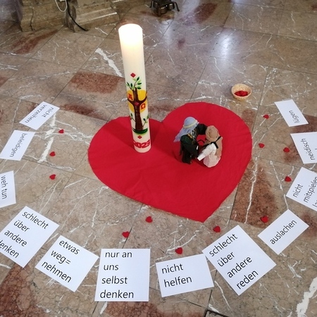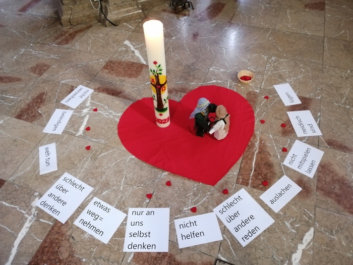 Nach einer intensiven Vorbereitungszeit in der Schule wurden sie im Rahmen eines Weggottesdienstes von Religionslehrerin Gertraud Handsteiner und Brigitta und Diakon Hermann Helm mit der bildlich dargestellten Geschichte des barmherzigen Vaters auf das Fest eingestimmt.