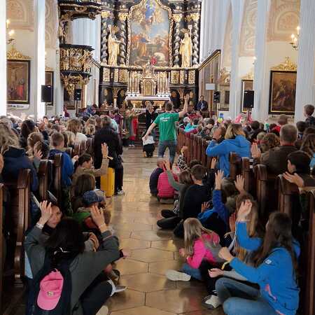 Dem Organisationsteam war die große Freude, dass ihre Idee so gut angenommen wurde, bei der Eröffnung in der bis auf den letzten Platz gefüllten Stiftskirche ins Gesicht geschrieben. Danach verteilten sich die Kinder auf die verschiedenen Stationen in den Stiftshöfen, auf dem Sportplatz, im Stiftsgymnasium und in der Grünen Klasse im alten Obstgarten des Klosters.