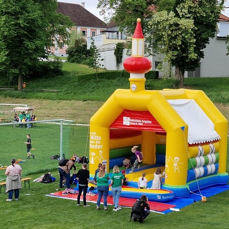 Viel gab es zu entdecken und zu erleben: Spiele, Basteleien, Tricks und Rätsel zu den verschiedensten Ländern der Erde wie Nepal, Indien, Guatemala, Philippinen, Brasilien und Tansania. Dazu noch Fußball und eine Hüpfburg. Im Organisationsteam halfen auch einige engagierte Jugendliche aus Ybbsitz und Waidhofen mit.