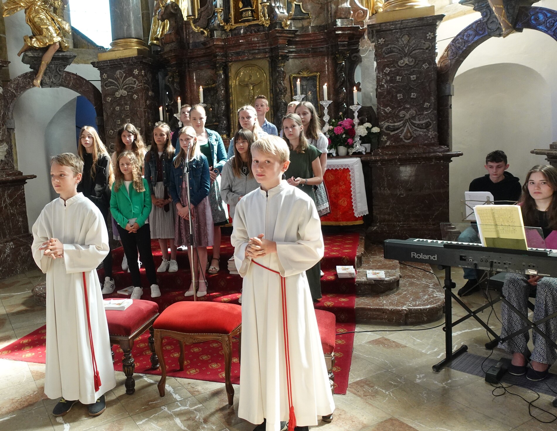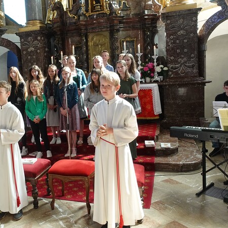 Mit schwungvollen Liedern gestalteten die Firmlinge den Gottesdienst am Fest des Heiligen Geistes. Der Heilige Geist lehrt uns einander zu verstehen, er schenkt uns die Sprache der Liebe, so P. Jacobus in seiner Predigt.