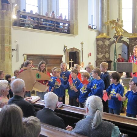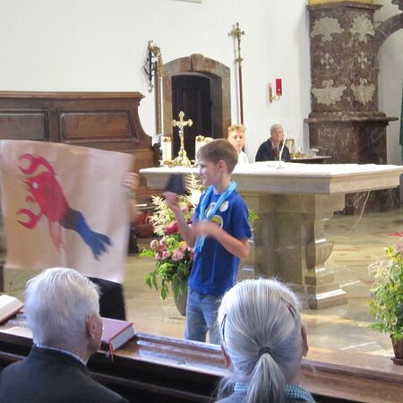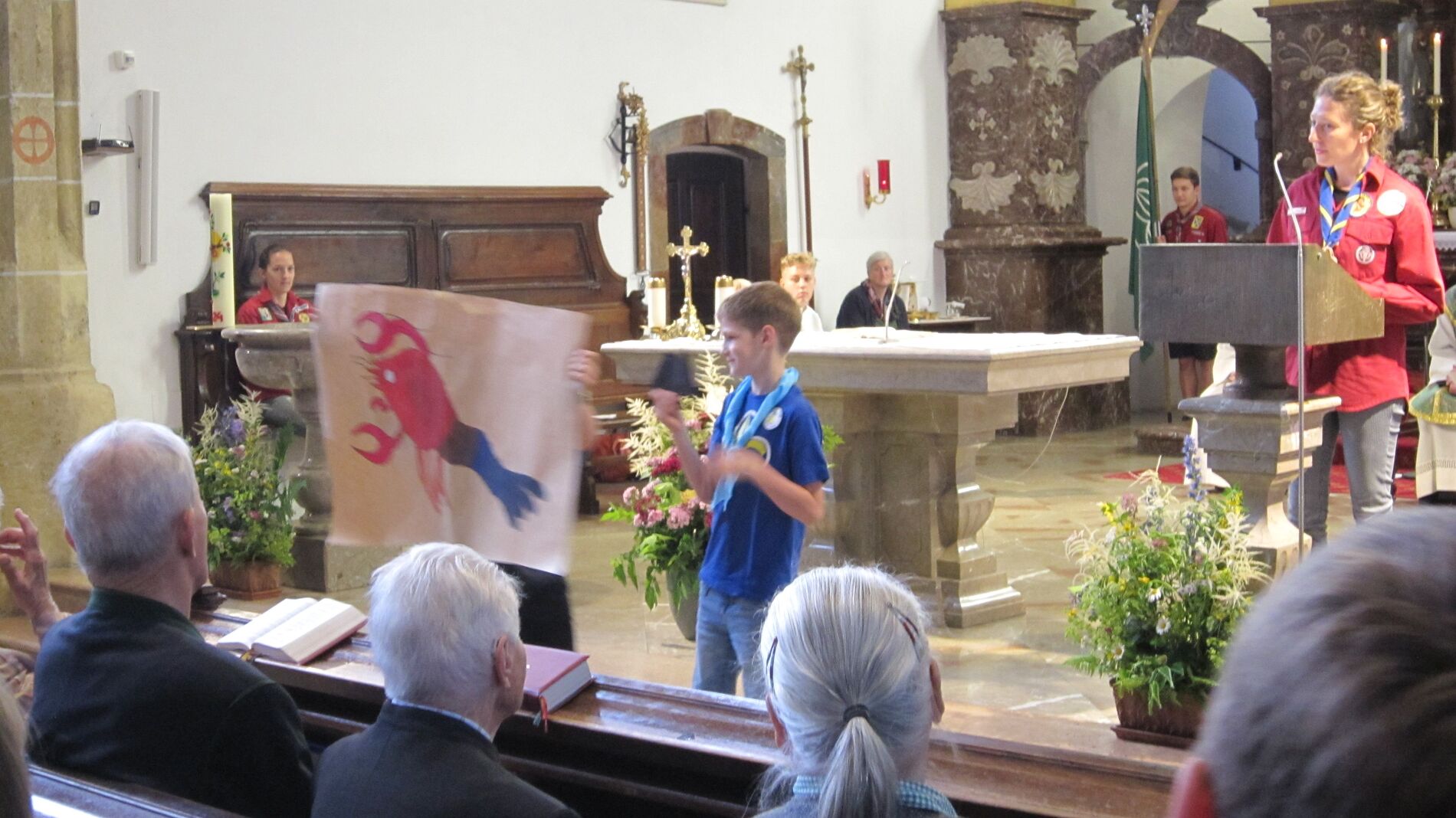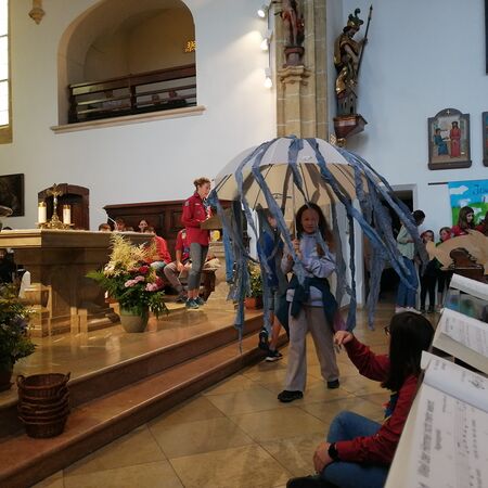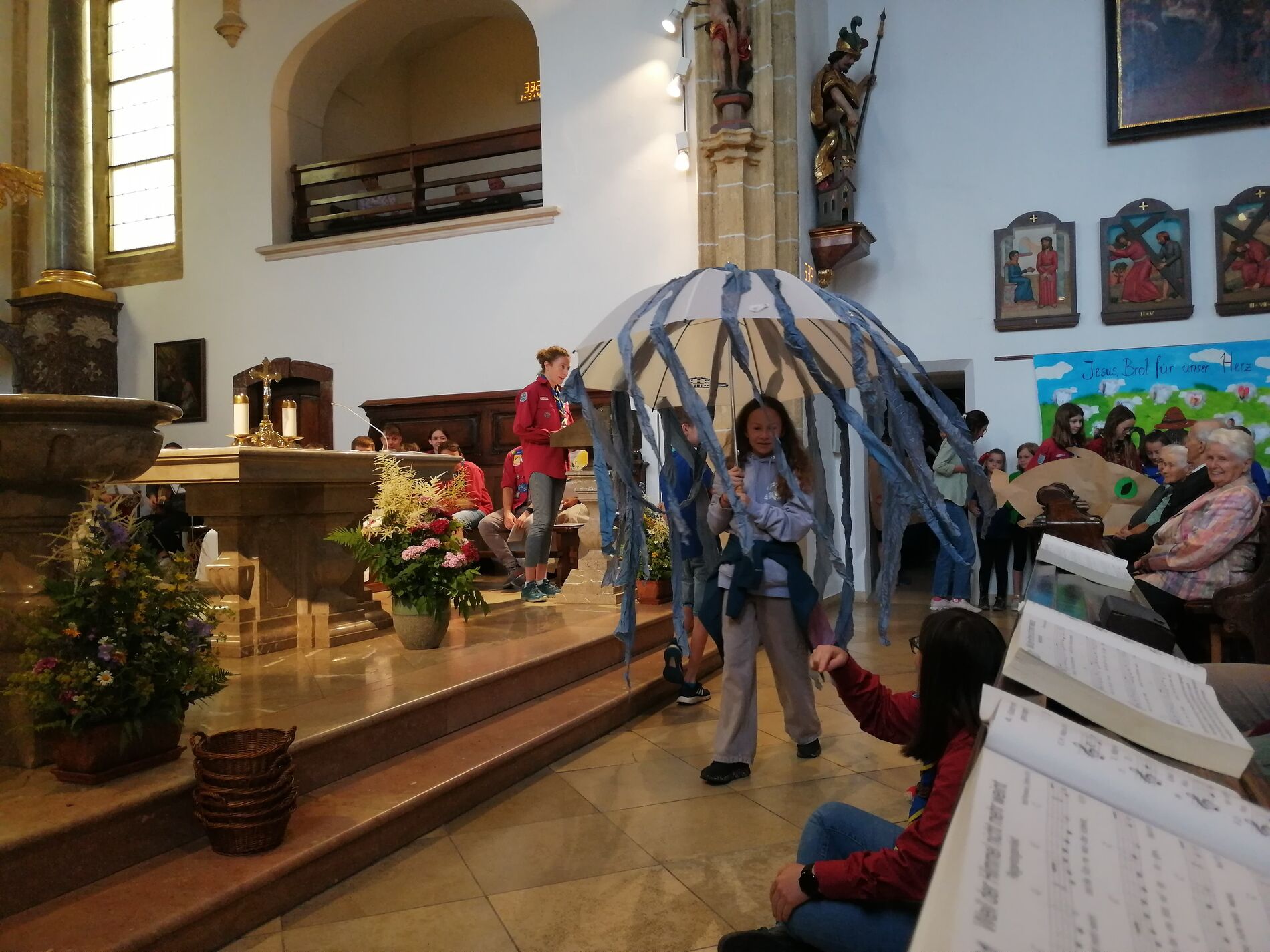 Dazu wurde die Geschichte vom Fisch Swimmy vorgelesen, in der es unter anderem darum geht, dass man gemeinsam mehr erreichen kann als alleine. Die Geschichte wurde von den Kindern aller Altersgruppen schauspielerisch dargestellt. Dafür bastelten sie in den Heimstunden Meeresbewohner, wie zahlreiche Fische, eine Qualle, einen Hummer, einen Aal oder Meeresalgen.