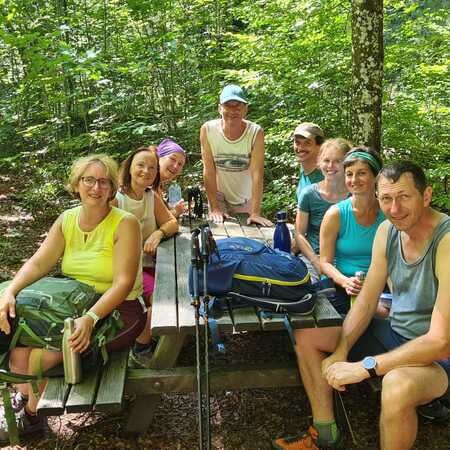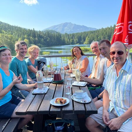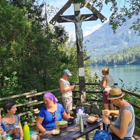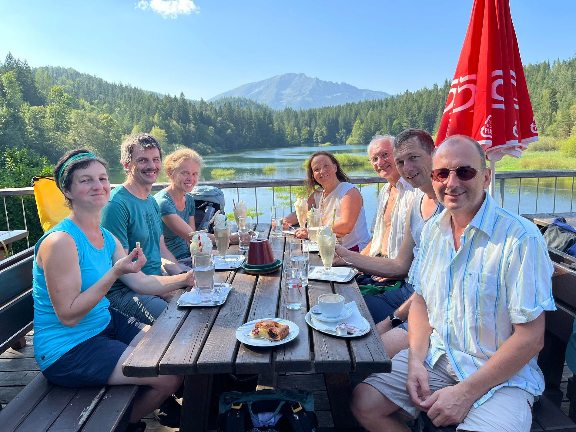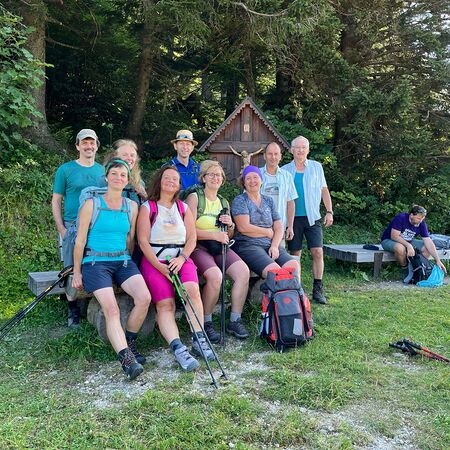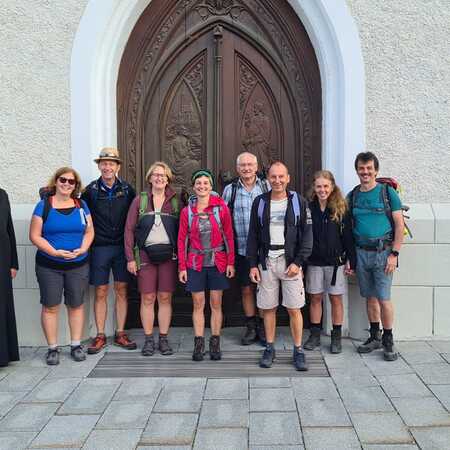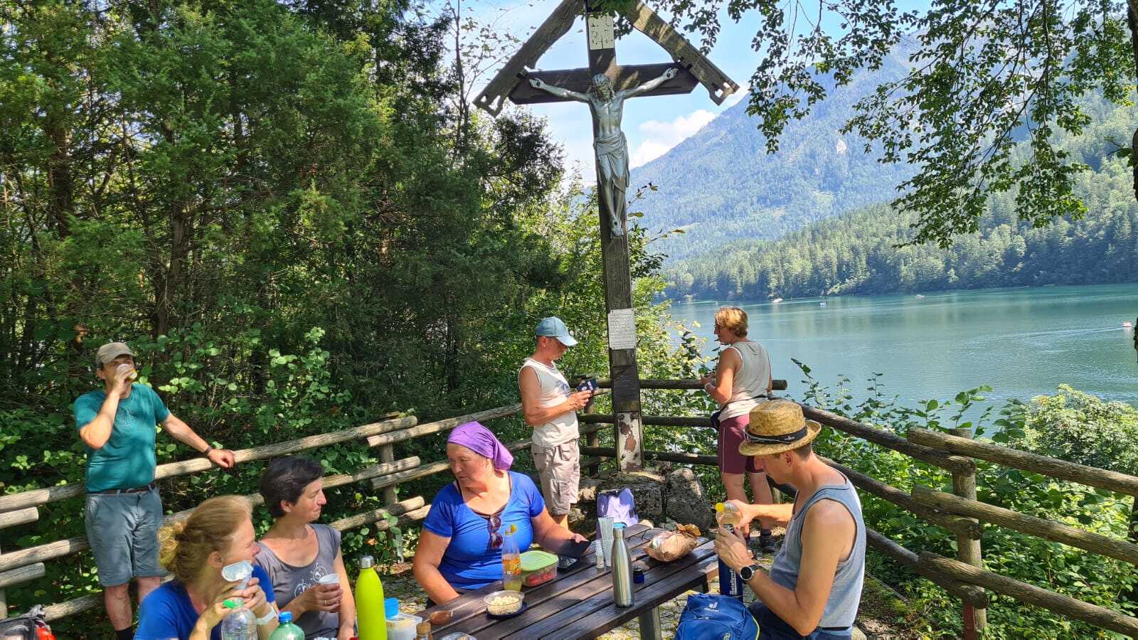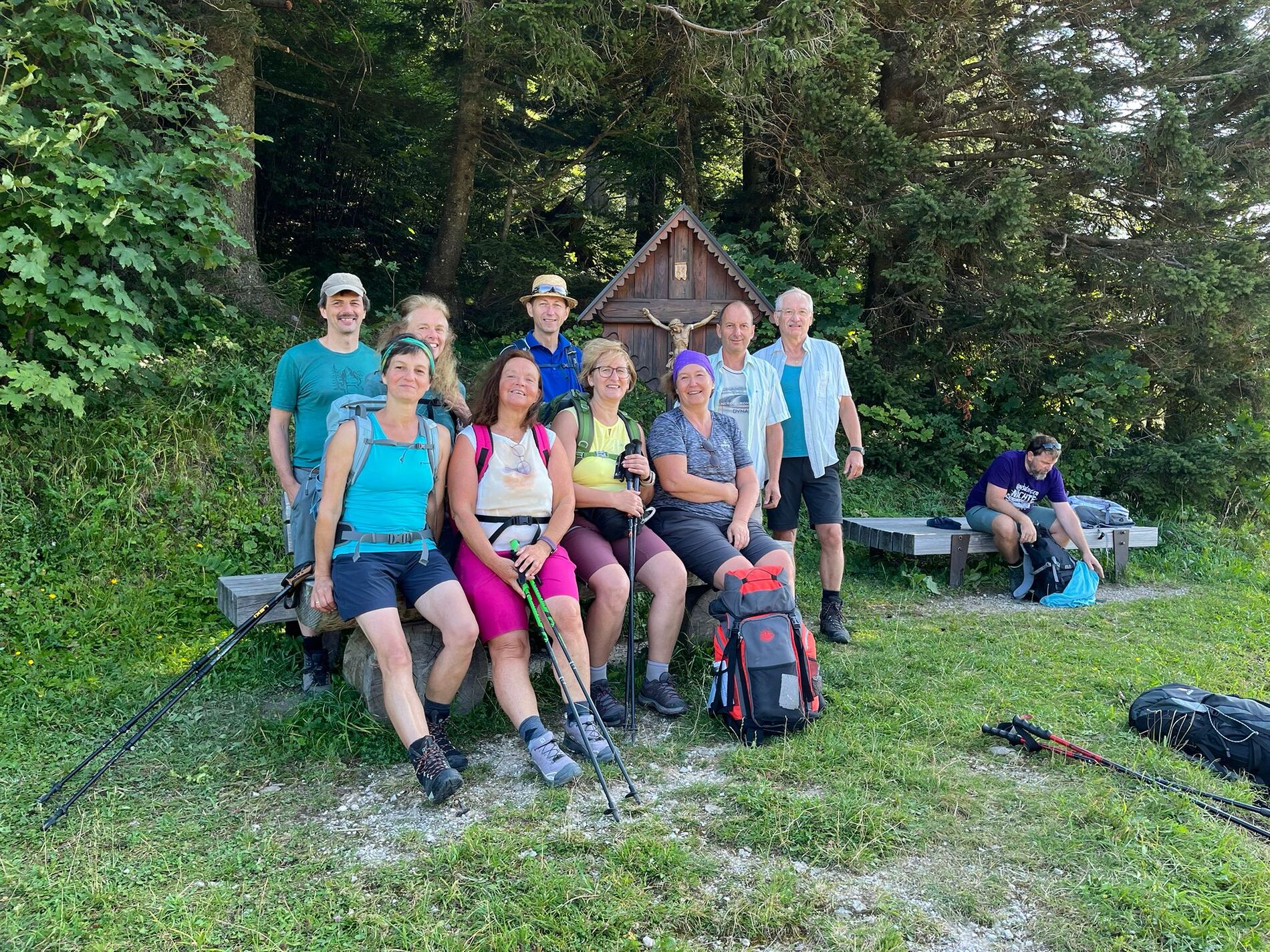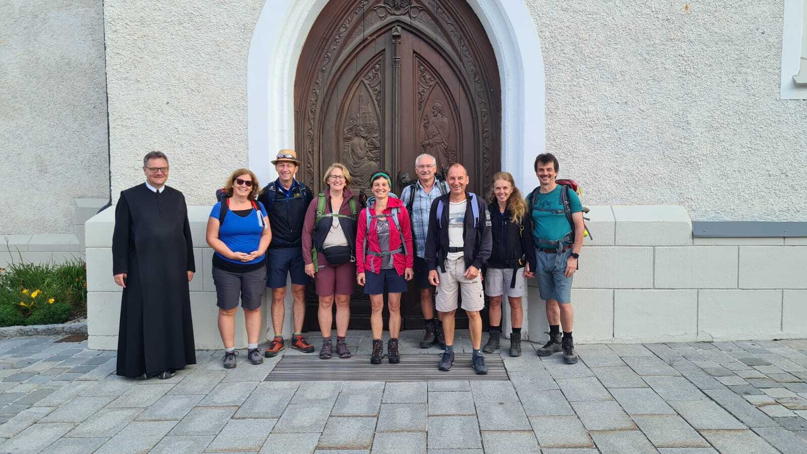 Nach einem Pilgersegen in der Pfarrkirche um 7 Uhr marschierte unsere, heuer etwas kleinere Gruppe, los. Bei herrlichstem Wetter kam beim Morgenlob bei der Mitterlehner Kapelle das „Lobe den Herrn meine Seele “aus vollem Herzen. Unser Weg führte an Maria Seesal vorbei auf die Hamodtalm, wo wir uns ausgiebig stärkten. Weiter ging es dann nach Lunz und einige von uns nützten den Lunzersee zum Abkühlen. Etwas nach 18 Uhr kamen wir im Sporthotel in Lackenhof an. Wir genossen den warmen Sommerabend auf der Terrasse und bedienten uns am reichhaltigen Abendbuffet, um unsere verlorenen Kalorien wieder aufzufüllen. Hatte doch eine smarte Uhr 47.000 Schritte gezählt!