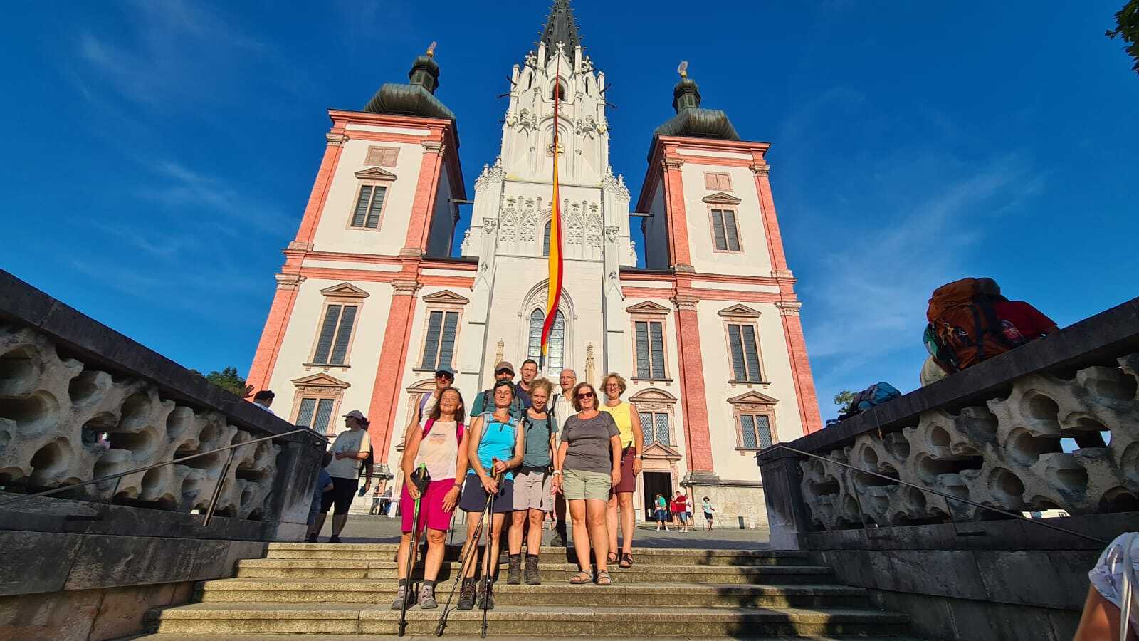 Nach vielen schönen Gesprächen, Liedern, Gebeten…kamen wir mit einigen Schmerzen und Blasen, doch überaus dankbar in Mariazell an, wo wir in einer vollbesetzten Basilika einen Wallfahrtsgottesdienst der burgenländischen Kroaten mitfeiern durften. Mit einem wohlverdienten Abendessen beim Ochsenwirt beschlossen wir wieder unsere Wallfahrt.