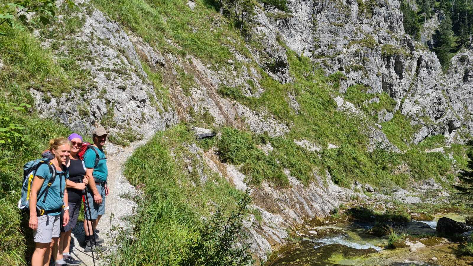 Am nächsten Morgen gesellte sich noch eine Ybbsitzer Pilgerin zu unserer Gruppe. Dass Glaube verbindet, erlebten wir am Riffelsattel, wo Reinsberger Wanderer mit Freude bei unserer Andacht mitsangen und beteten. Mittags in den Ötschergräben meinte es die Augustsonne noch sehr gut mit uns, was die männlichen Wallfahrer dazu bewegte, im kühlen Wasser nochmals einzutauchen.