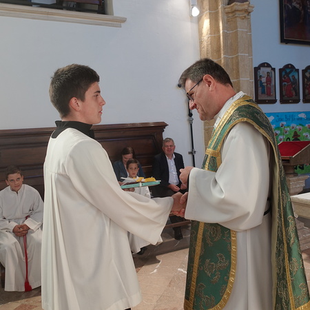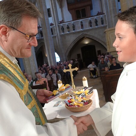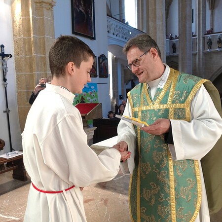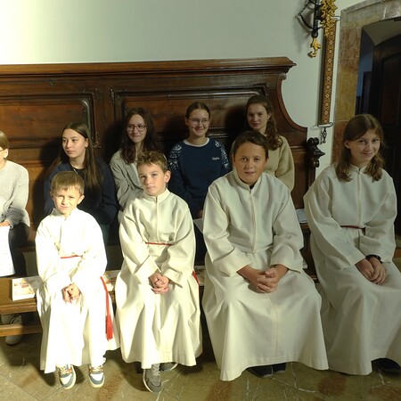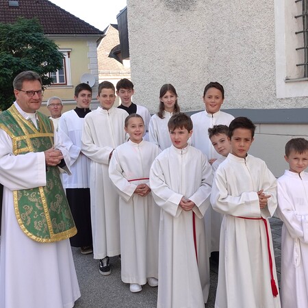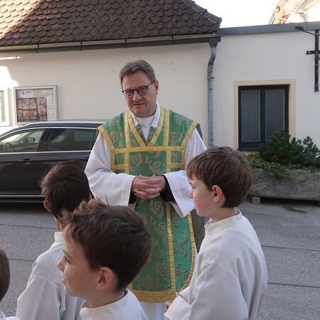 Das lateinische Wort „ministrieren“ bedeutet "dienen". Auch das Wort "Minister" kommt davon und hat ebenfalls diese Bedeutung. Der Pfarrer dankte den Minis für ihren Eifer und ihre Treue und ganz besonders auch den Eltern und Großeltern dafür, dass sie die Ministranten dabei unterstützen.
