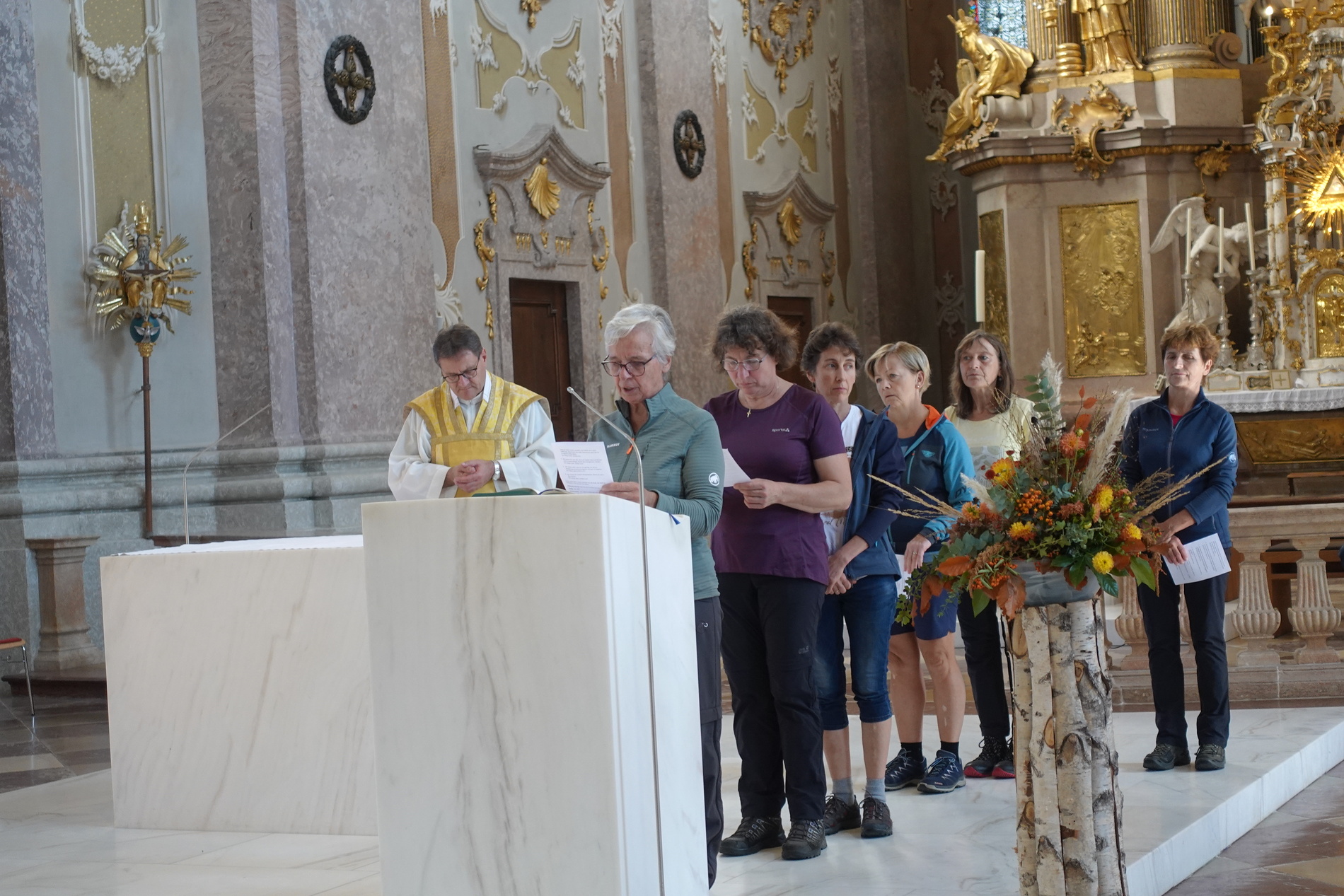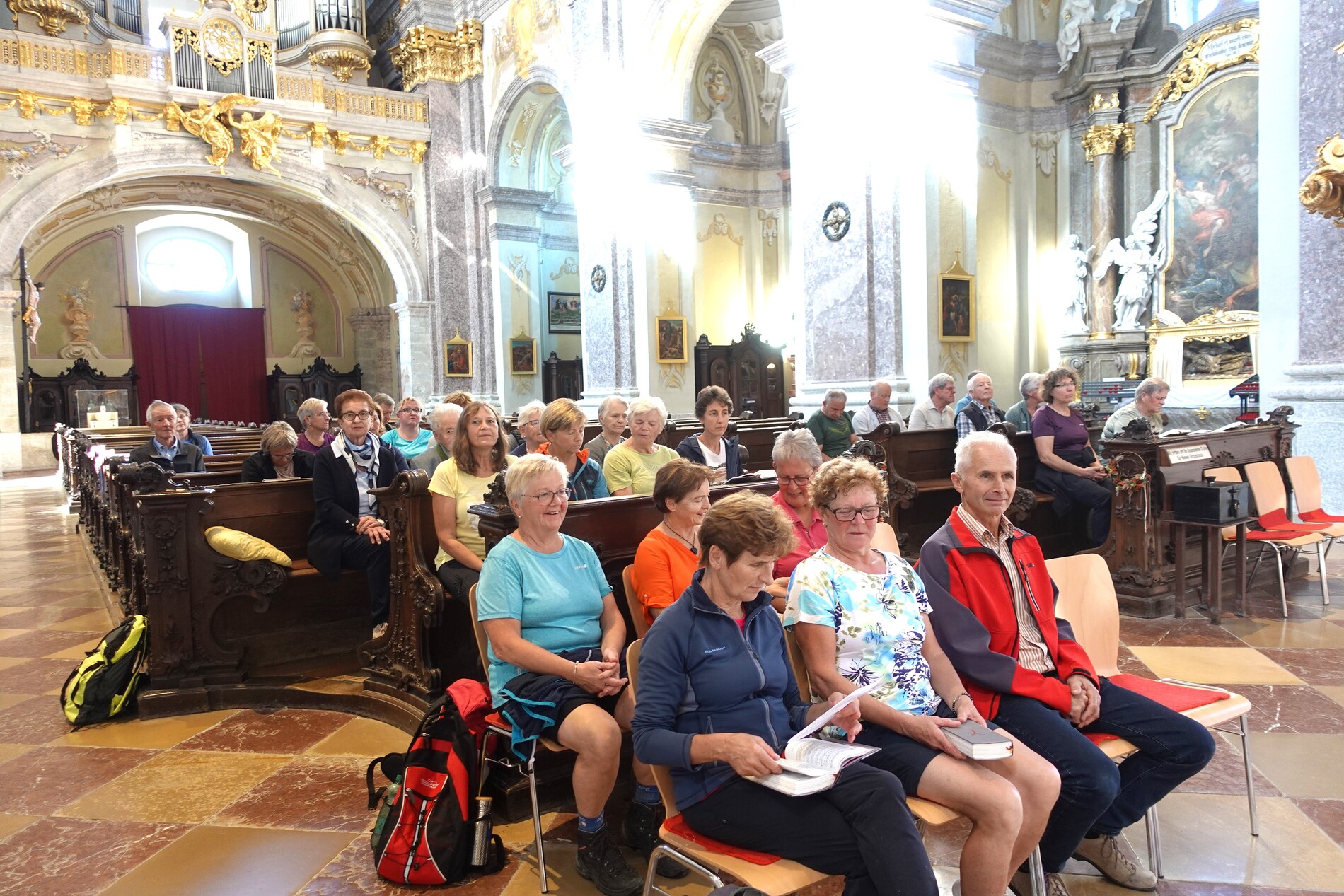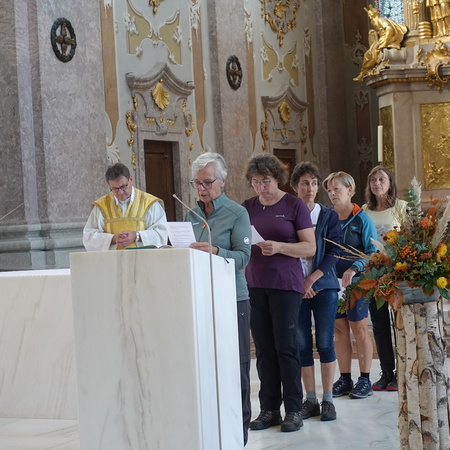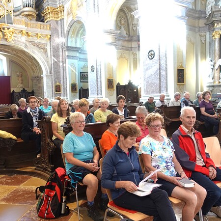 Einige waren auch mit dem Auto bzw. Rad auf den Sonntagberg gekommen, und so feierte P. Jacobus mit etwa 40 Wallfahrern in der prächtigen Basilika zur Heiligsten Dreifaltigkeit Gottesdienst. Der Tagesheilige Bruder Klaus, ein großer Mystiker des ausgehenden Mittelalters, den die Kraft des Gebetes, die Gottverbundenheit und theologische Klarheit zu einem gesuchten Seelsorger, Berater und Friedensstifter machten, kann auch für uns Wegweiser und Fürsprecher sein.