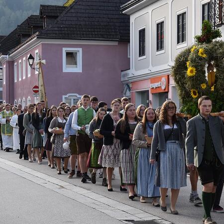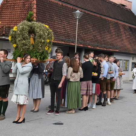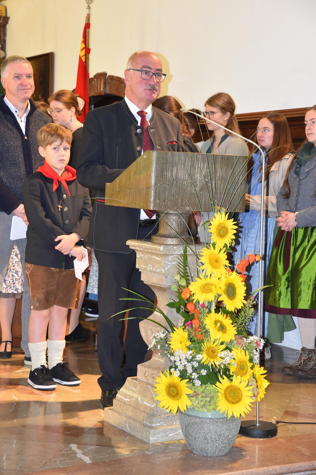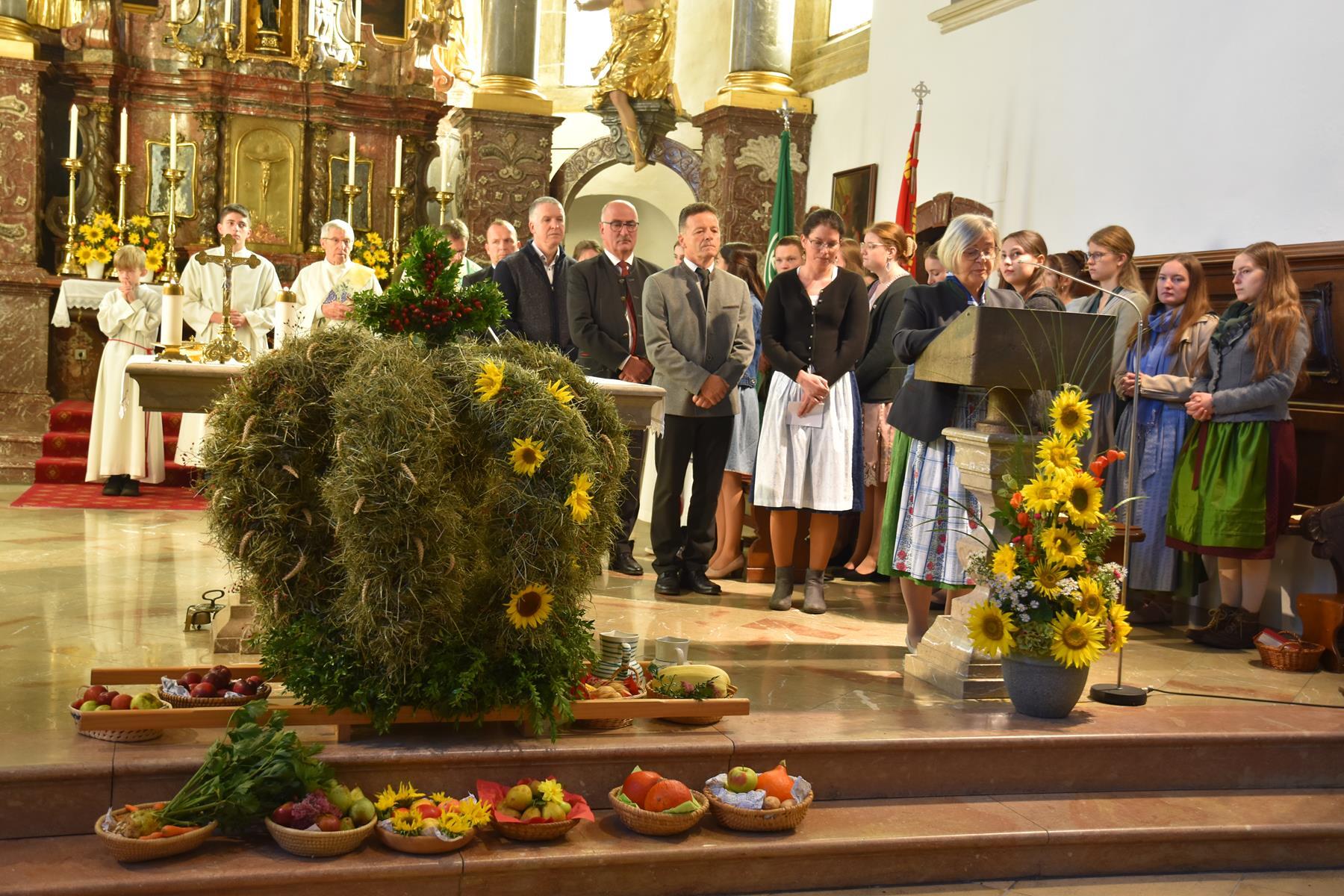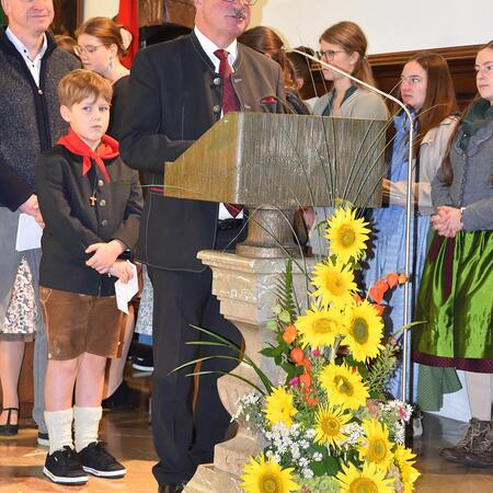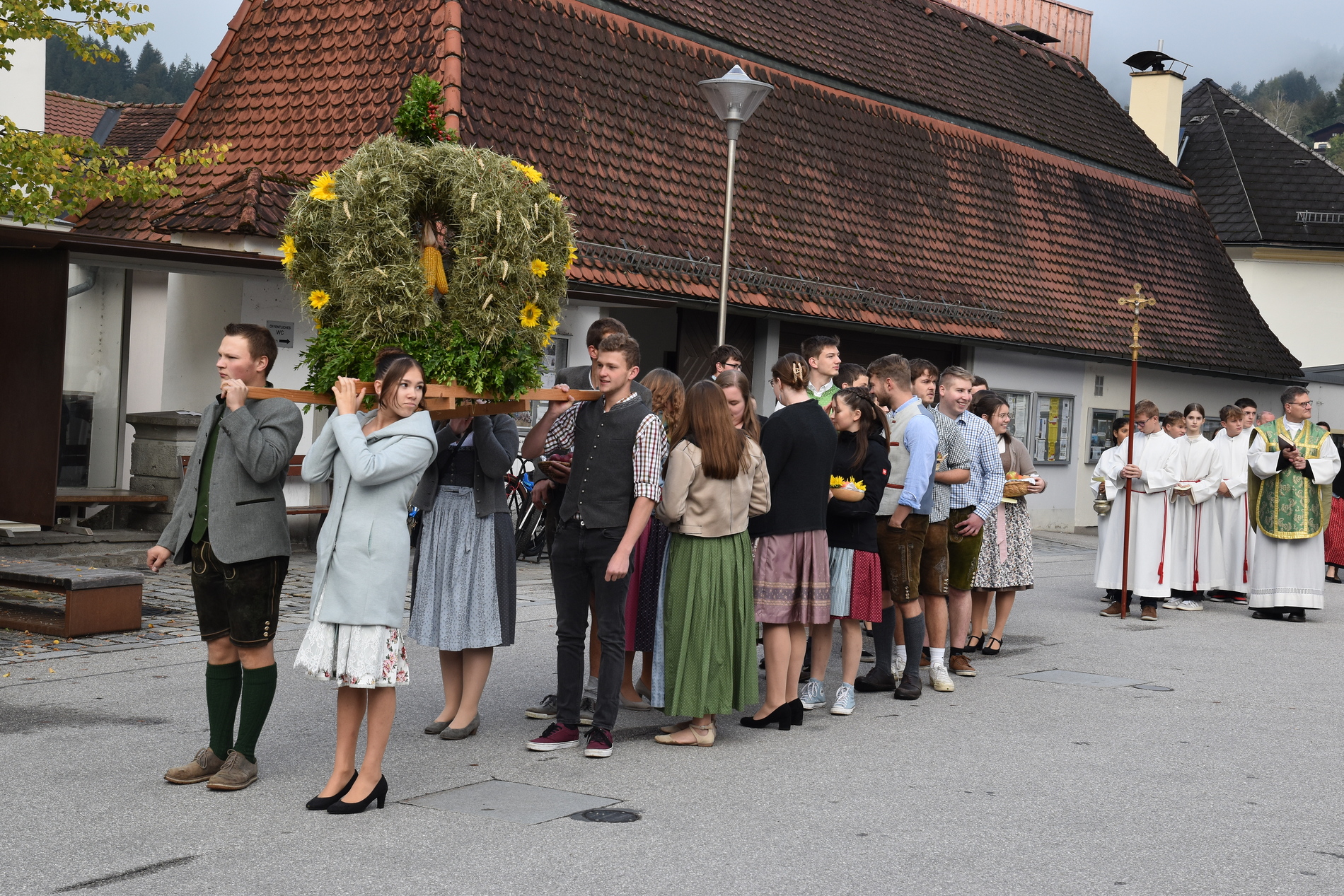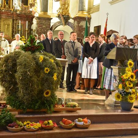 Am Schluss dankte P. Jacobus der KJ und Landjugend für das gemeinsame Binden der Erntekrone, dem Musikverein und Organisten für die musikalische Gestaltung, der Feuerwehr für den Ordnerdienst, dem Pfarrgemeinderat für die Agape und dem Hause Reisner für den Süßmost.