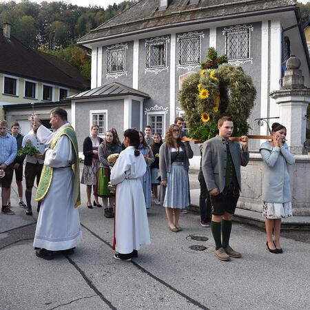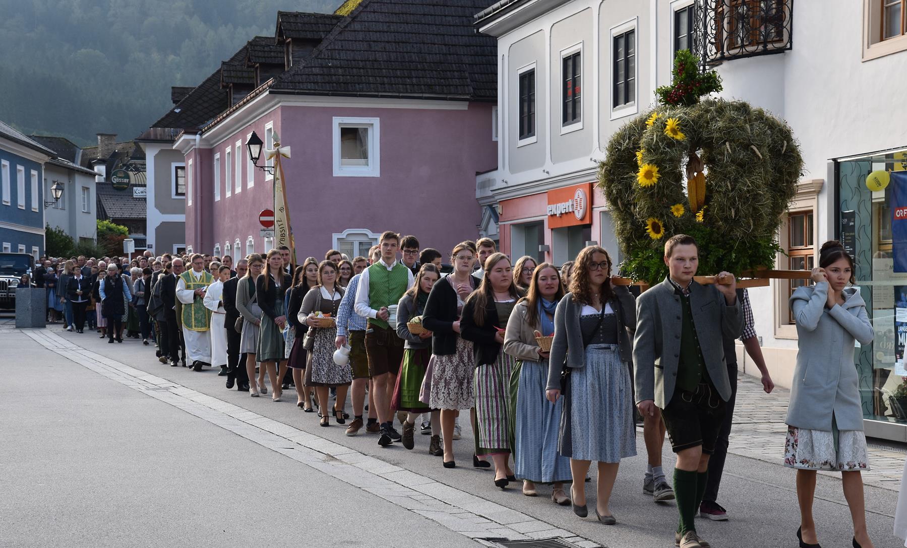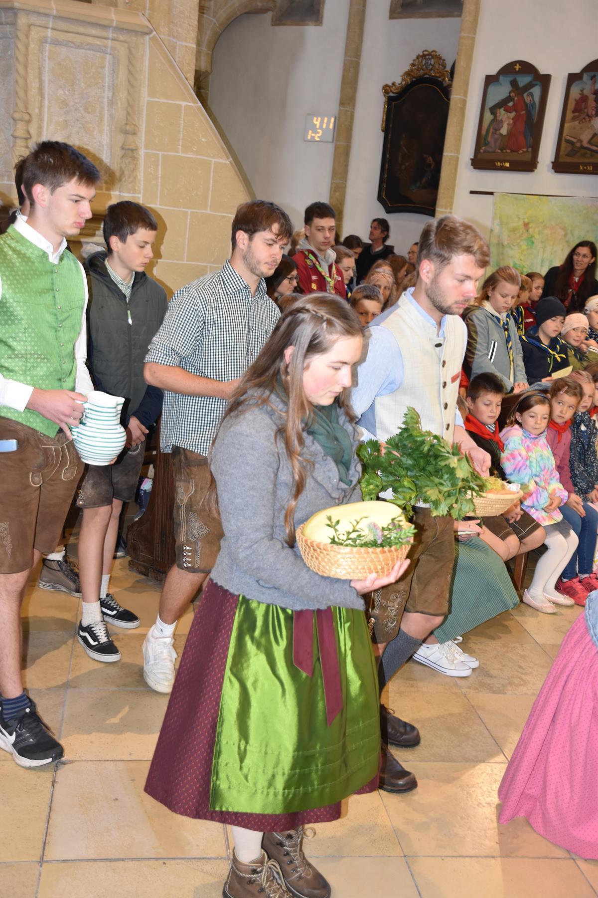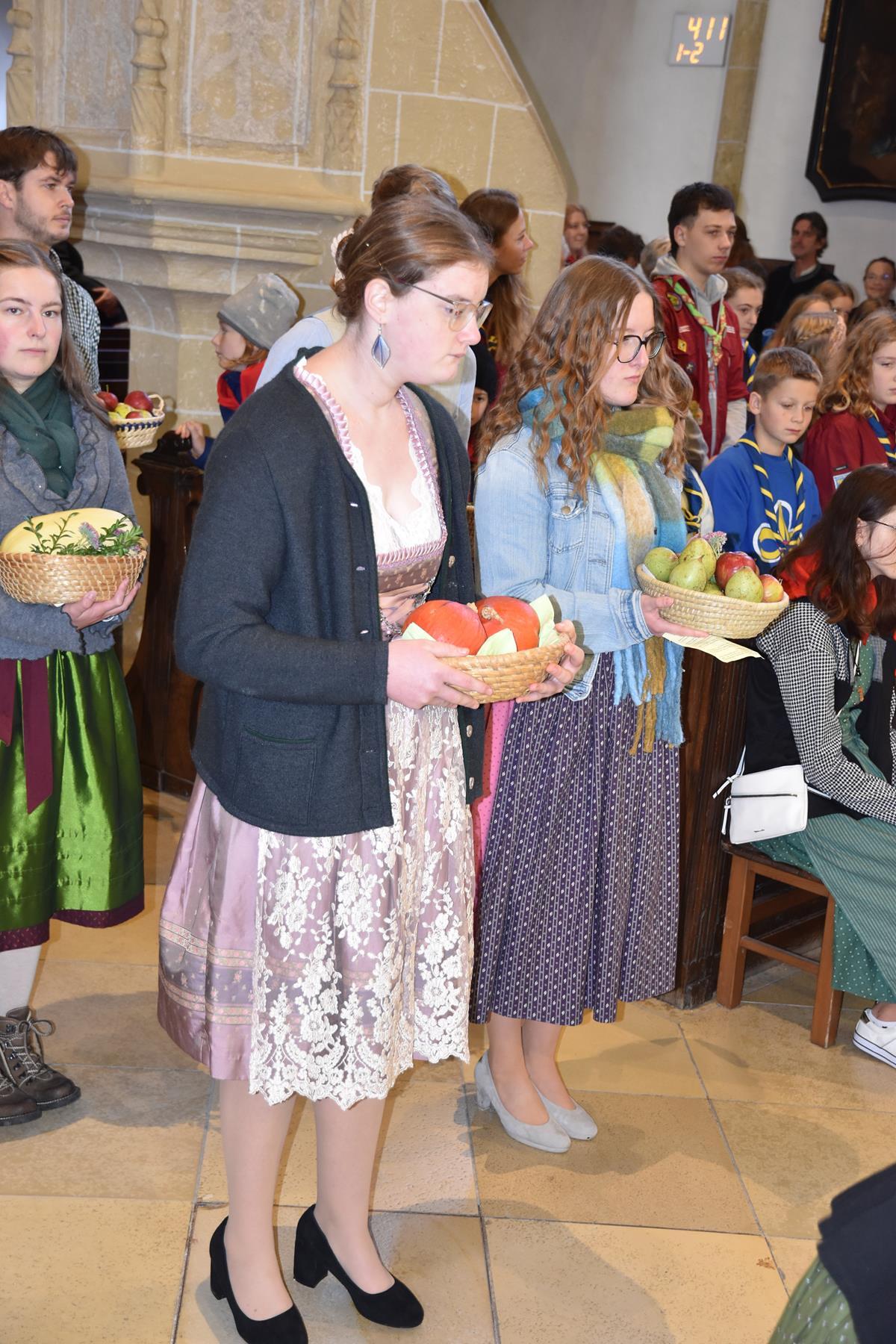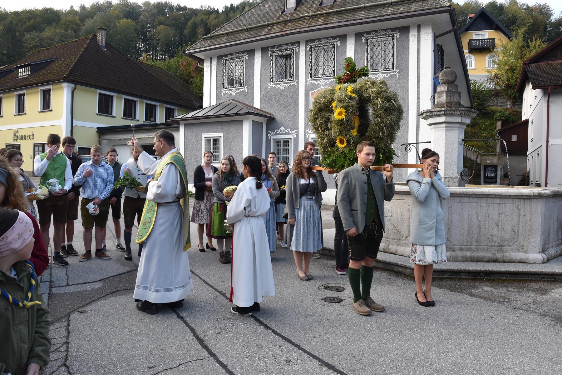 Am Schluss dankte P. Jacobus der KJ und Landjugend für das gemeinsame Binden der Erntekrone, dem Musikverein und Organisten für die musikalische Gestaltung, der Feuerwehr für den Ordnerdienst, dem Pfarrgemeinderat für die Agape und dem Hause Reisner für den Süßmost.