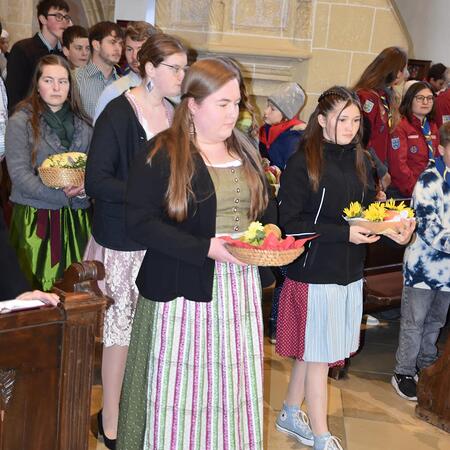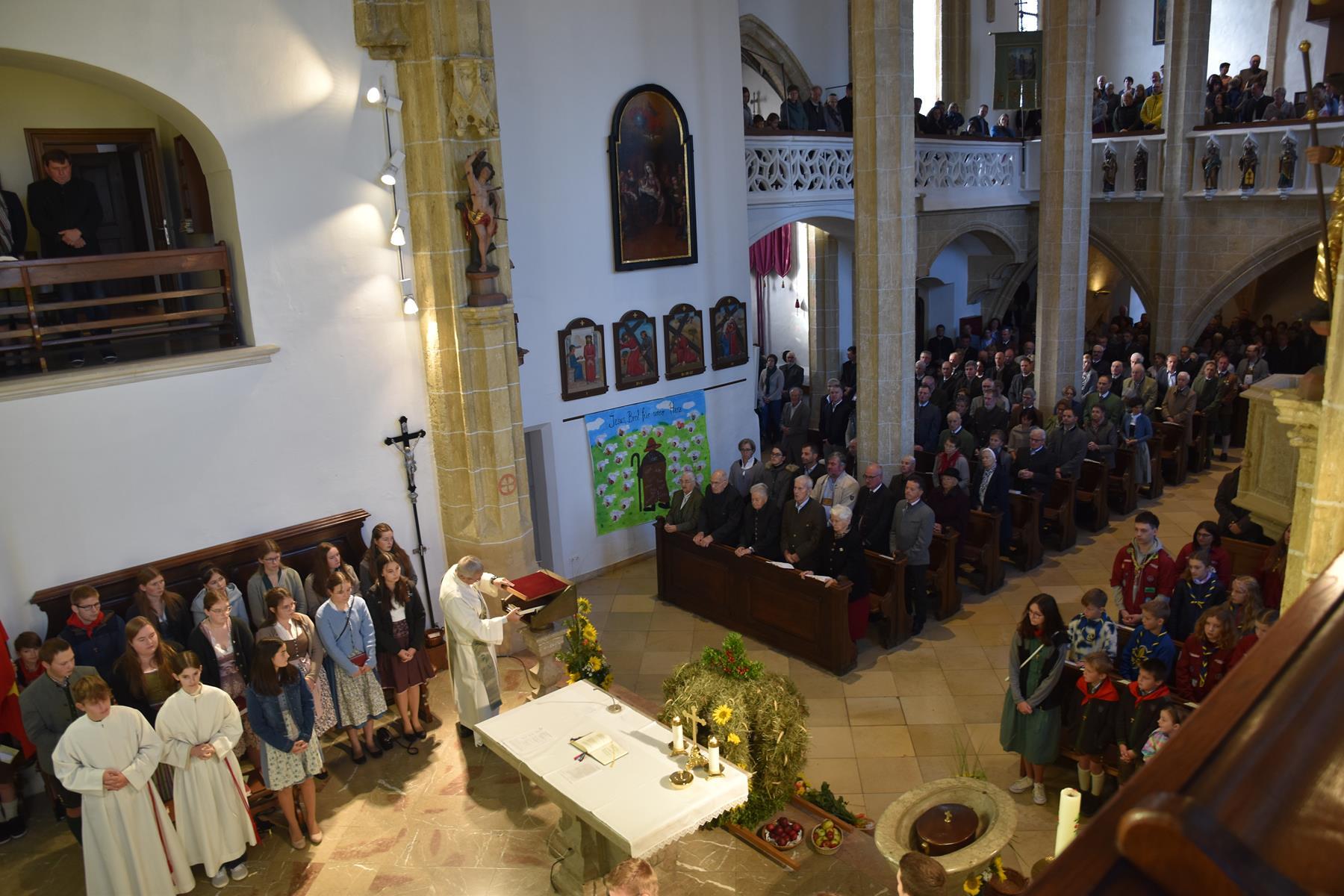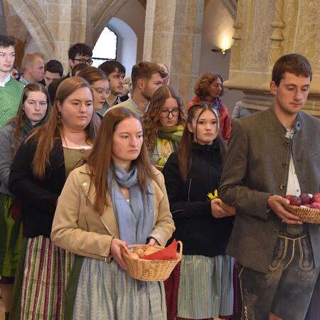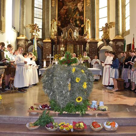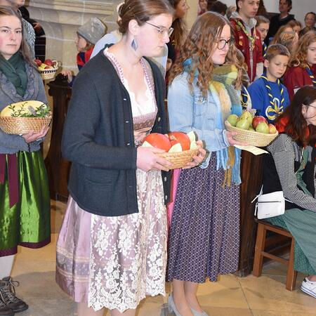 Dieses Fest ist längst nicht mehr nur ein Fest für die Bauernschaft. P. Jacobus ging in seiner Predigt vom Begriff der Lebensernte aus. "Wenn ich zurückblicke und frage, was mir bis heute gelungen ist, wo ich einen bleibenden Wert schaffen konnte, dann wird mir bewusst werden, dass ich vieles und manchmal das wichtigste einem gütigen Geschick verdanke. Es ist etwa nicht selbstverständlich, dass ich gesund bin, in einer freien Gesellschaft lebe, meine elementaren Bedürfnisse befriedigt sind, ich Arbeit habe, meine Begabungen entfalten und das Leben genießen kann. Unter diesen Vorzeichen bedeutet Erntedank dann, dass ich mir heute all das vor Augen stelle, was mir im Leben geglückt und nicht selbstverständlich ist."