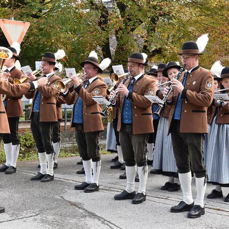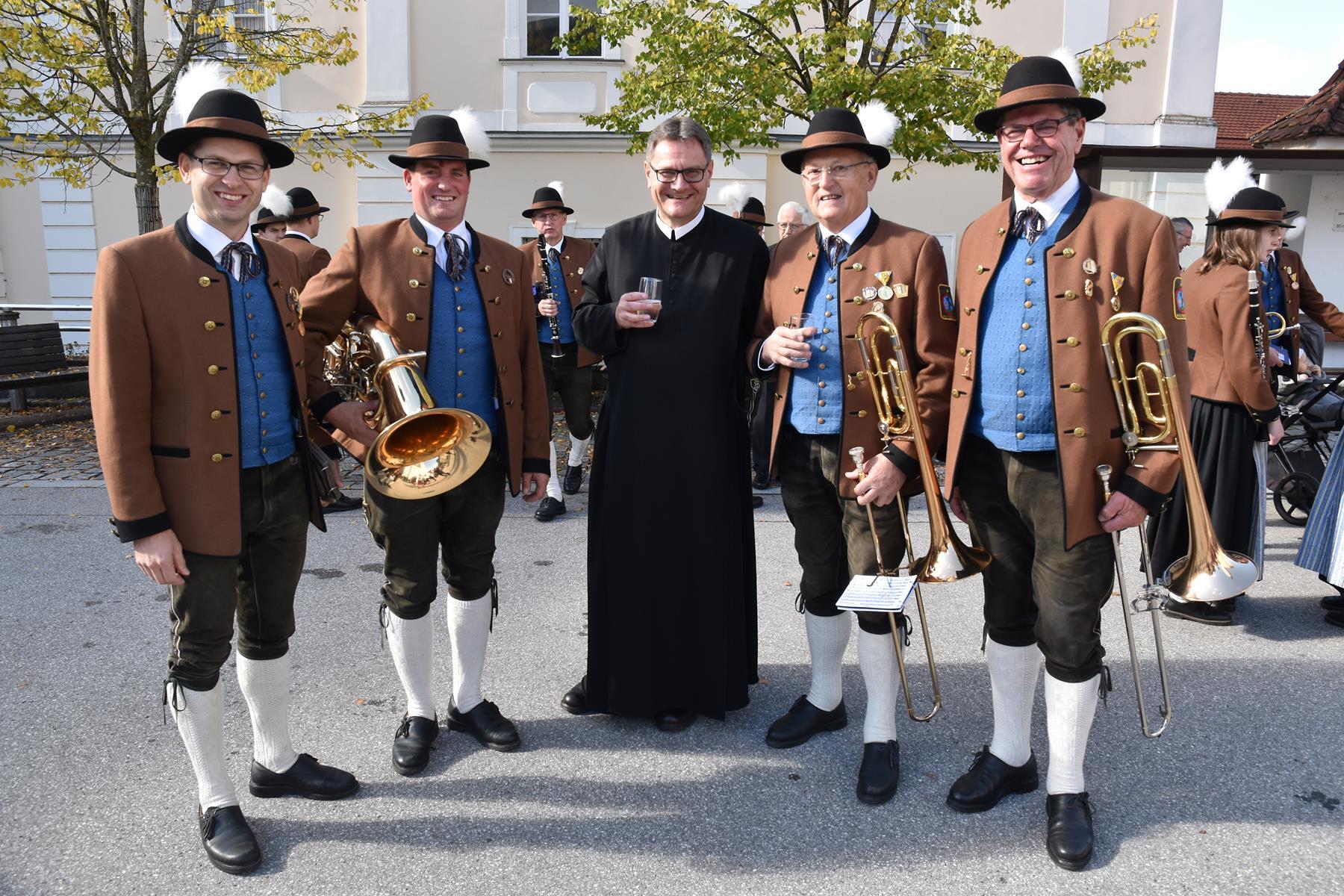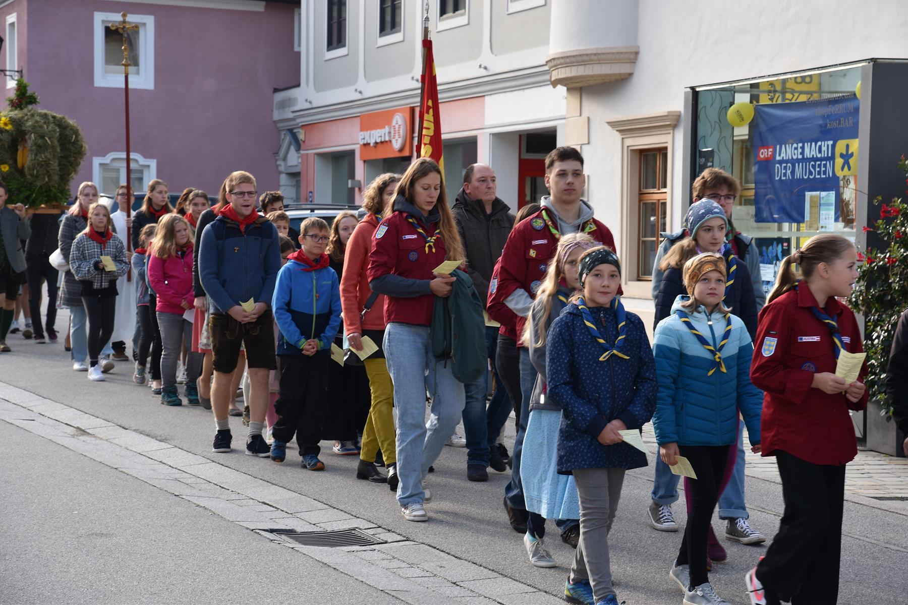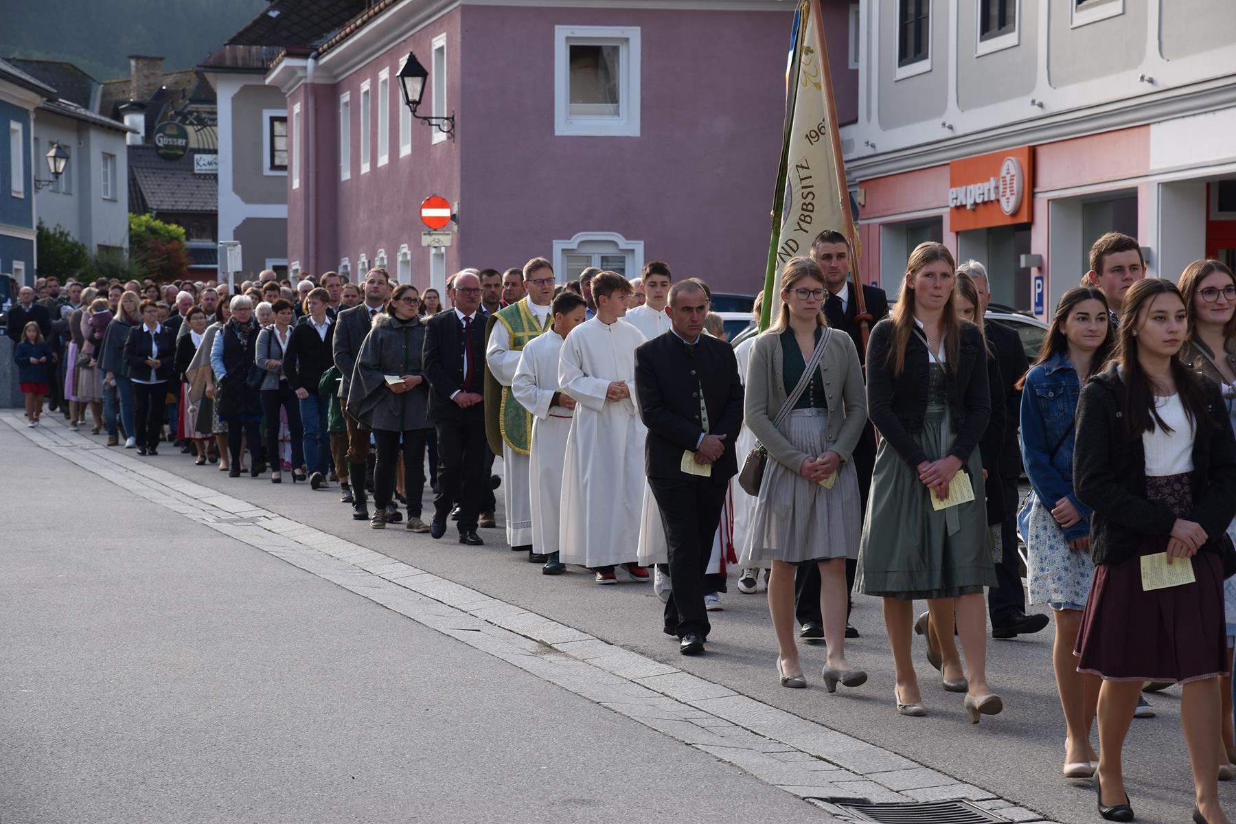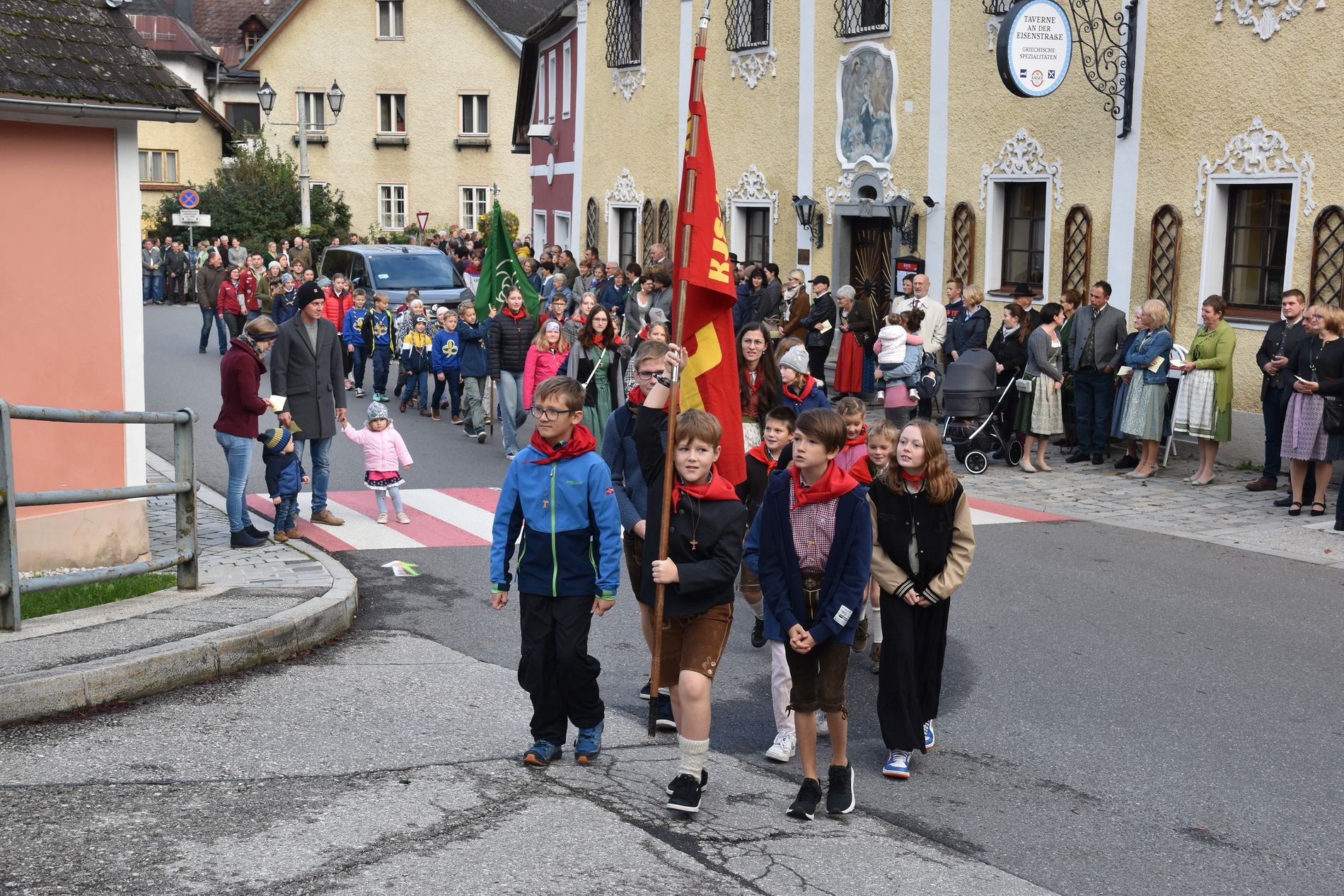Nach der Segnung der Erntegaben zog die Prozession unter den festlichen Klängen unserer Musikkapelle zur Kirche, um den Dankgottesdienst zu feiern.