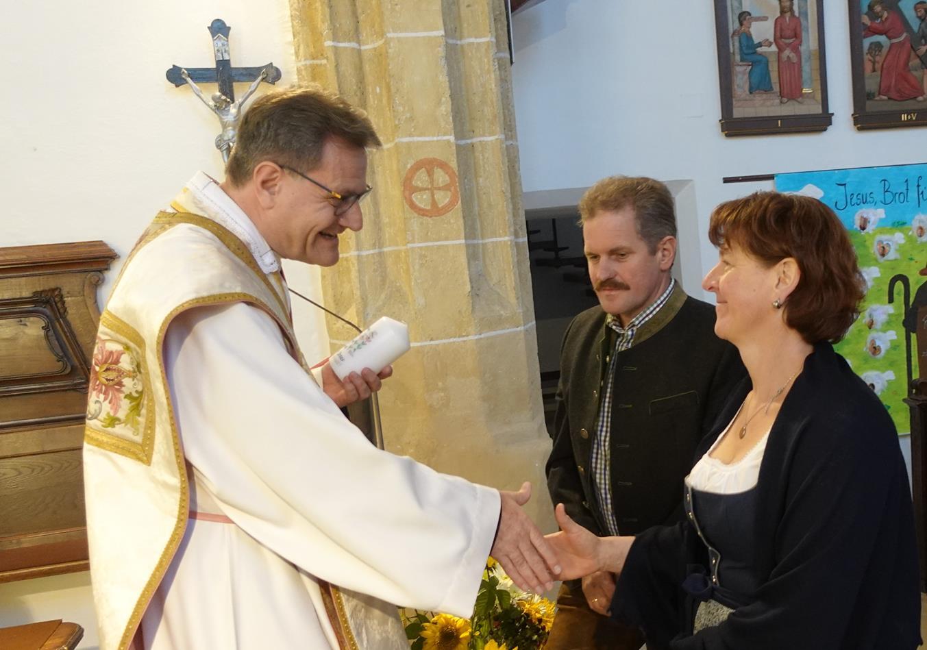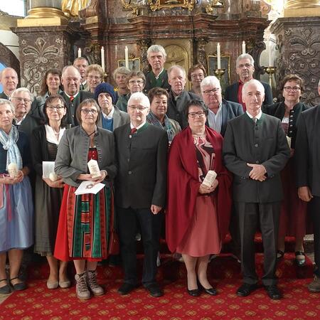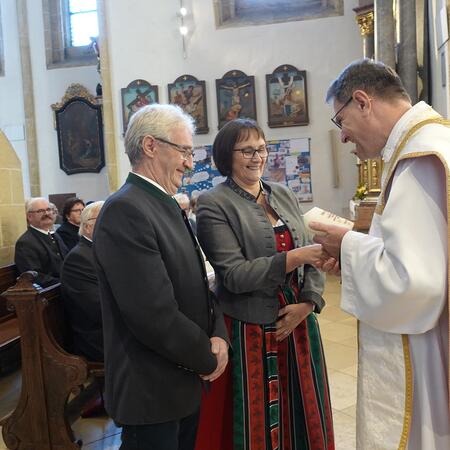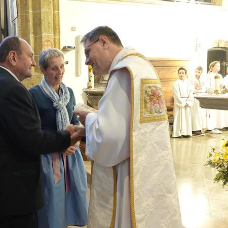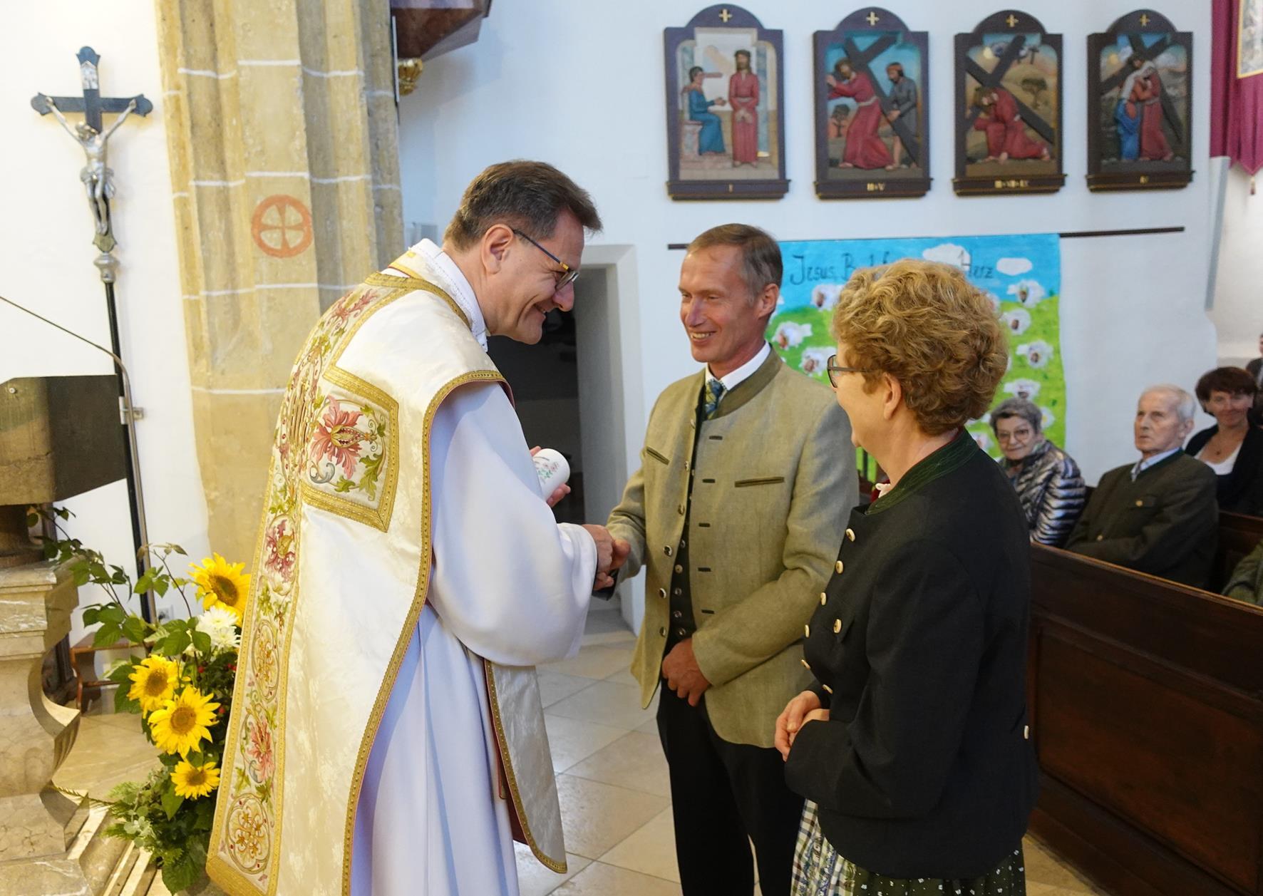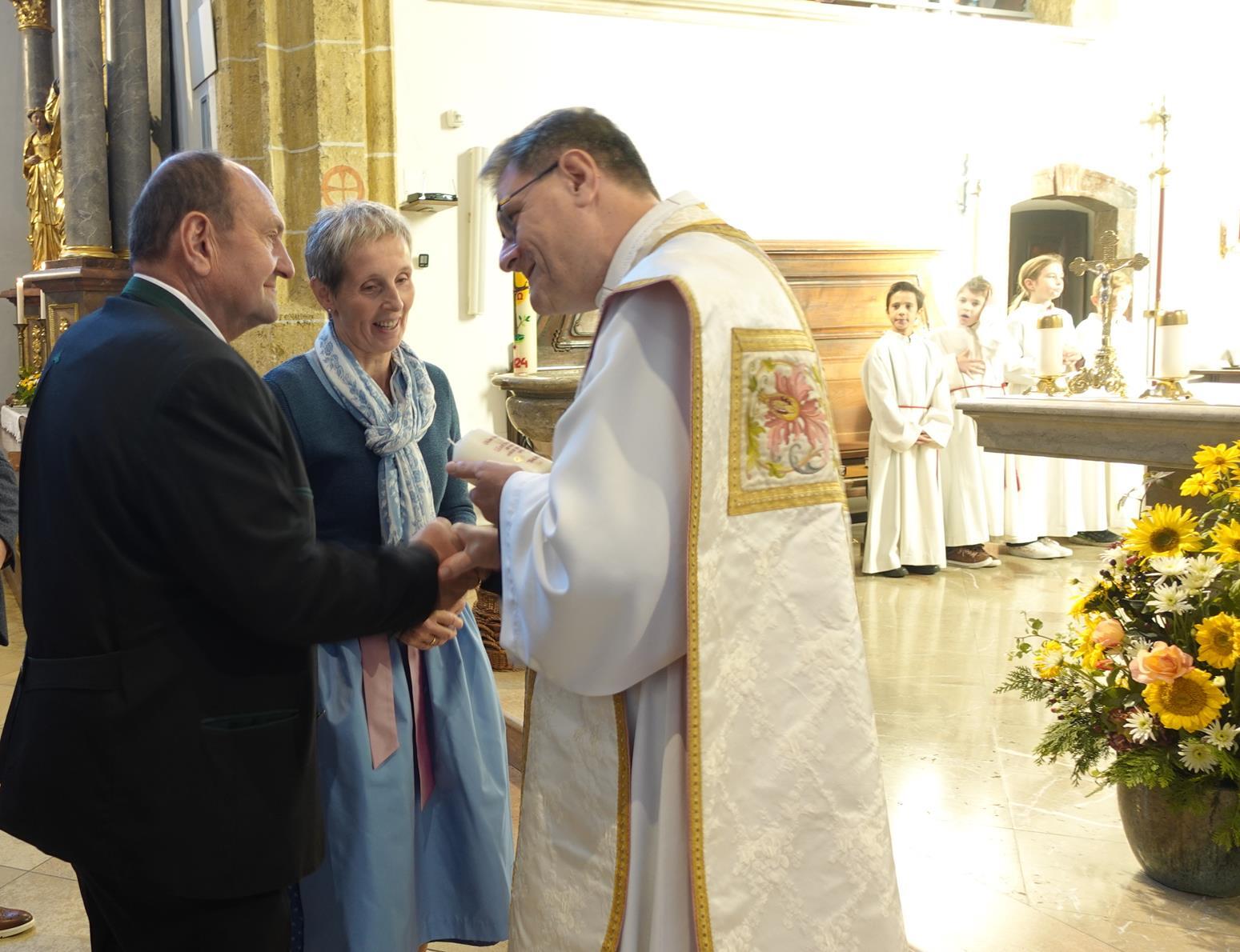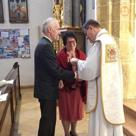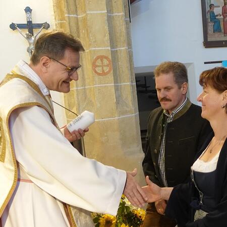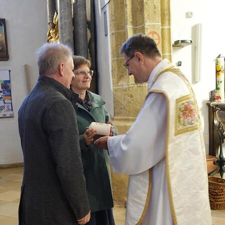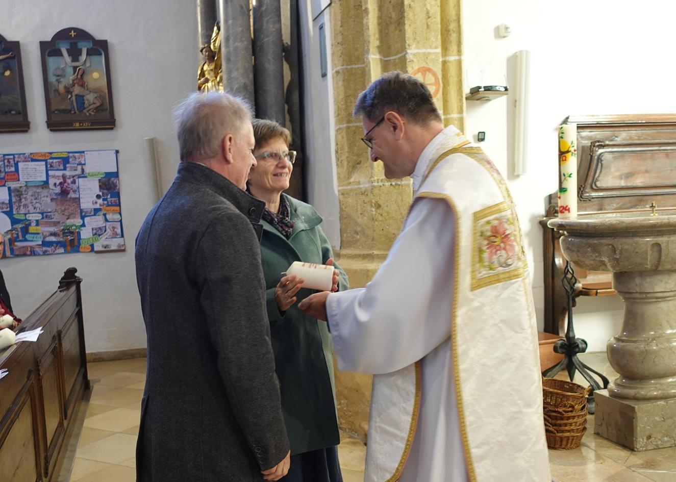 Der Pfarrer dankte für die wunderbare musikalische Gestaltung durch Angehörige der Jubelpaare, den Paaren selber für das Zeugnis einer christlichen Ehe und erbat Kraft und Ausdauer für deren Weg. Als Geschenk der Pfarre überreichte er zum Schluss eine Kerze.