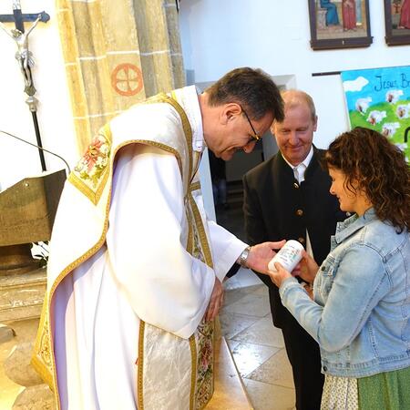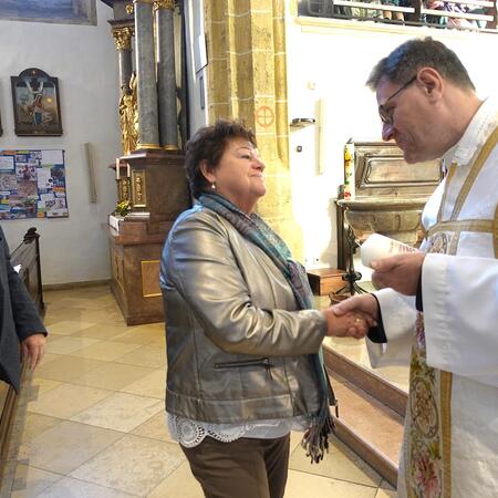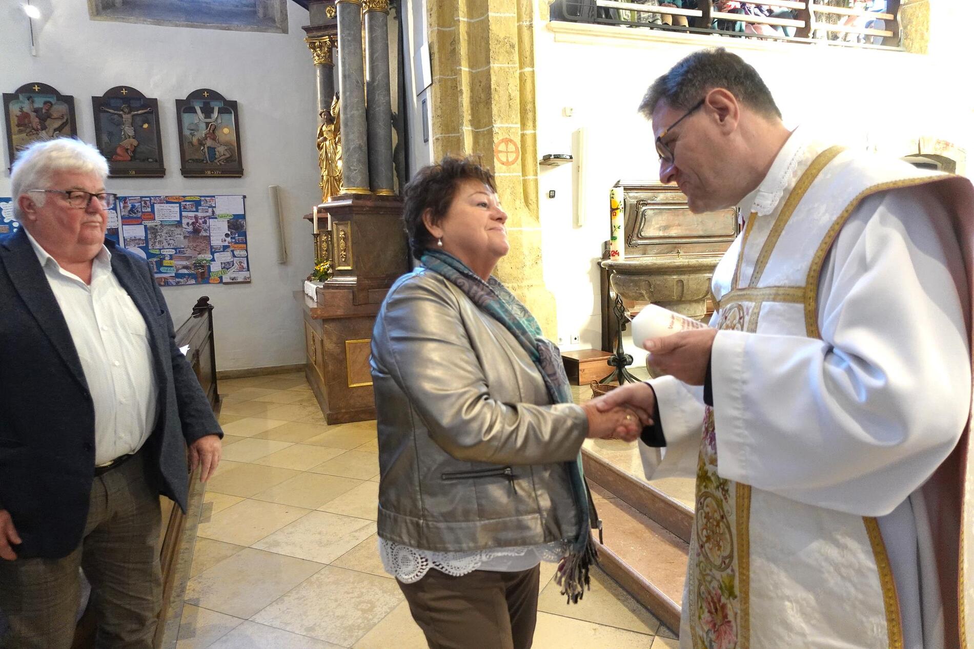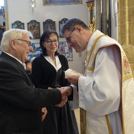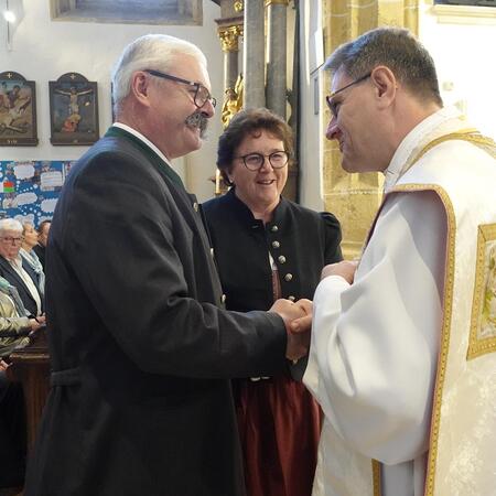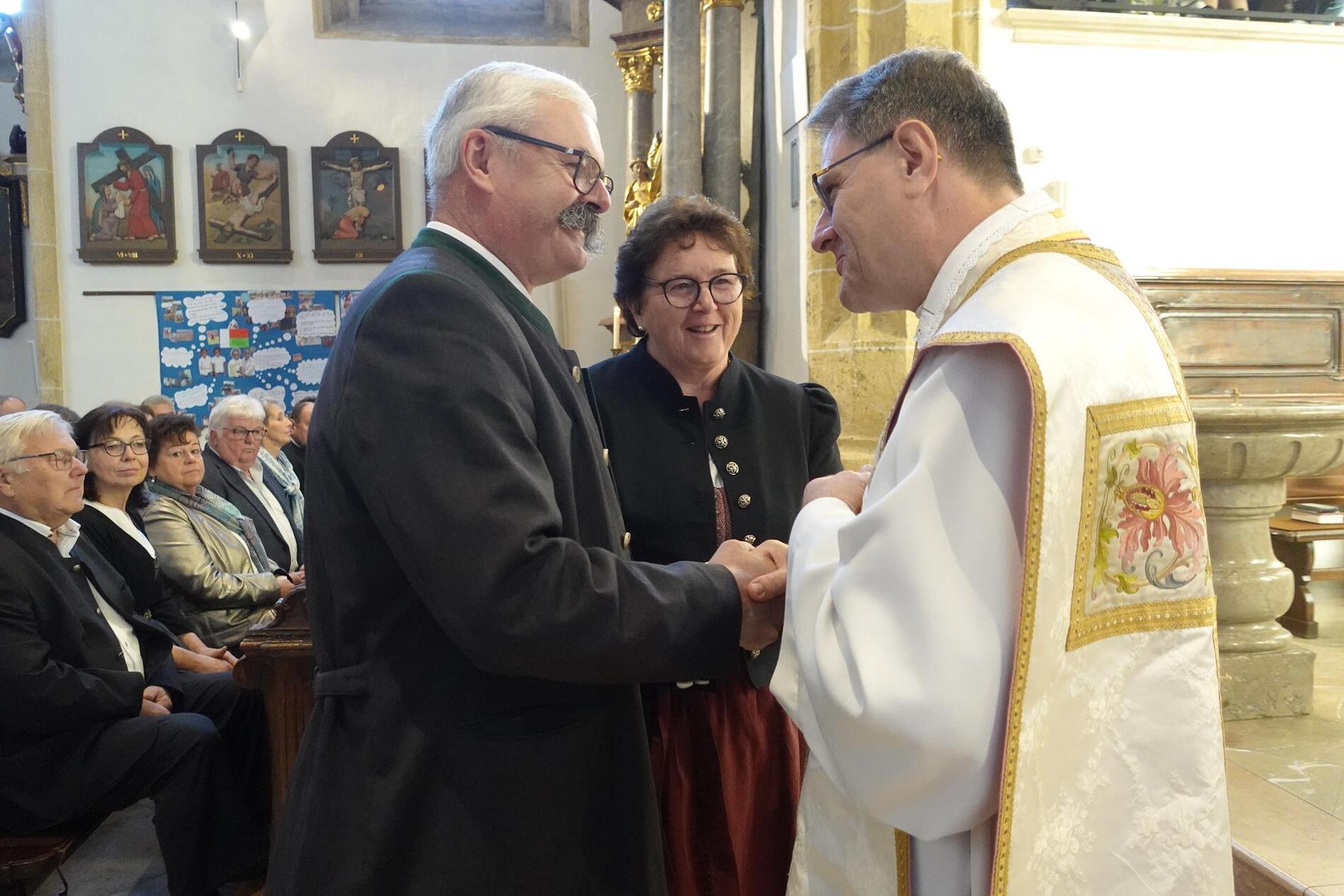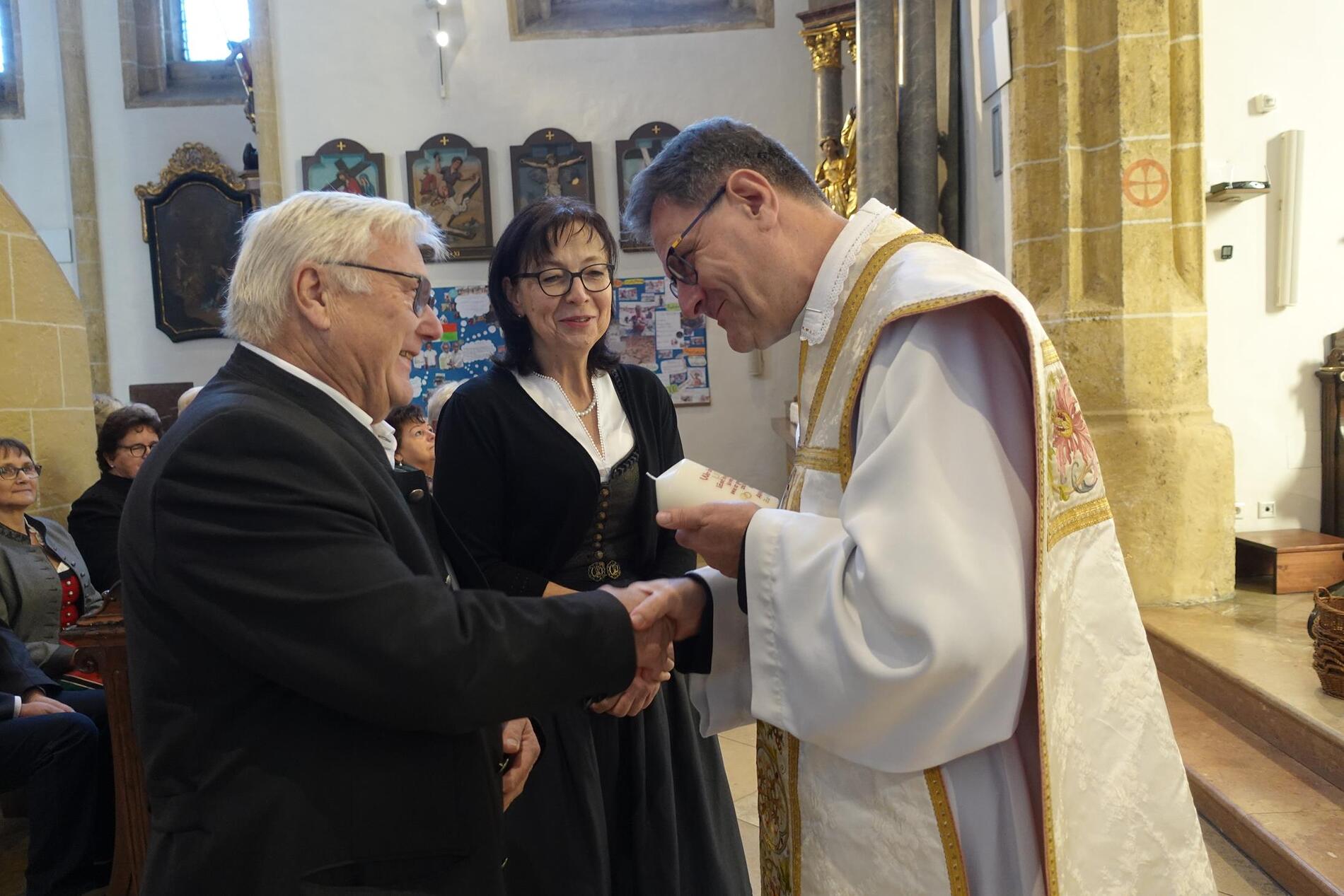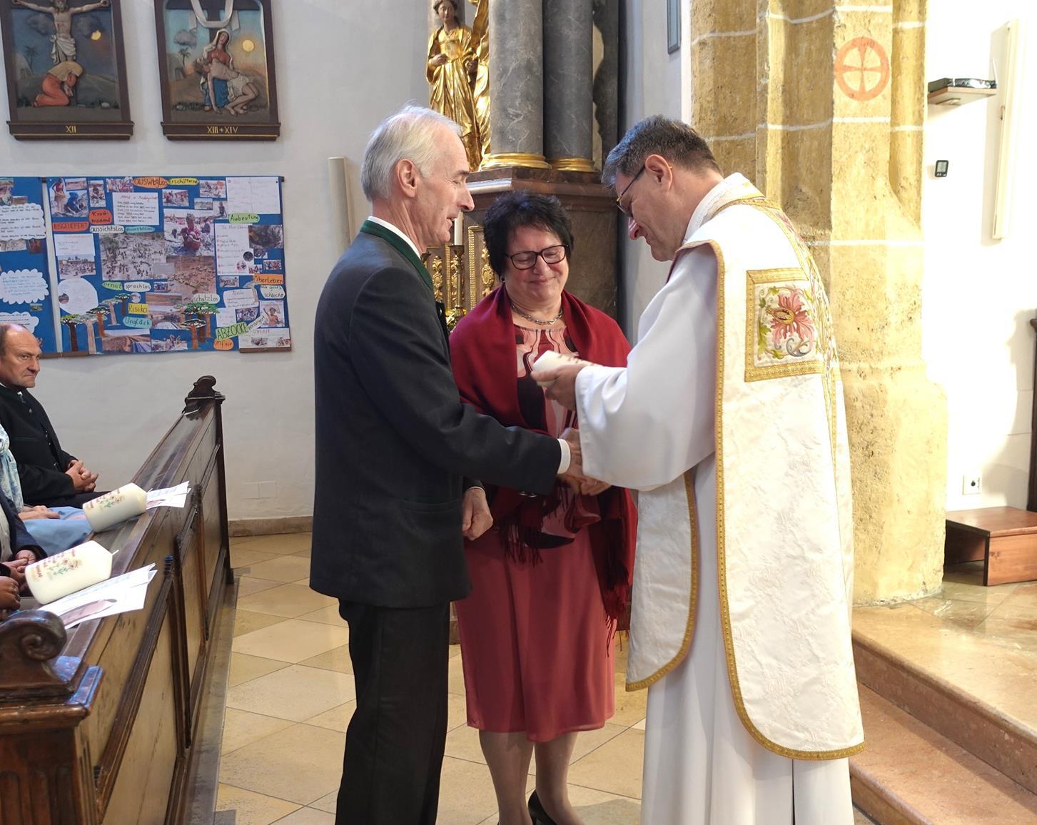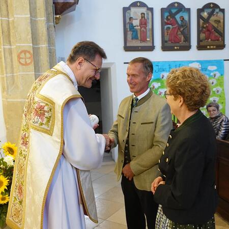 Der Pfarrer dankte für die wunderbare musikalische Gestaltung durch Angehörige der Jubelpaare, den Paaren selber für das Zeugnis einer christlichen Ehe und erbat Kraft und Ausdauer für deren Weg. Als Geschenk der Pfarre überreichte er zum Schluss eine Kerze.