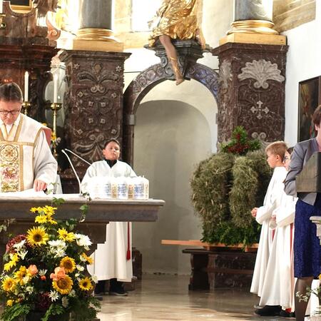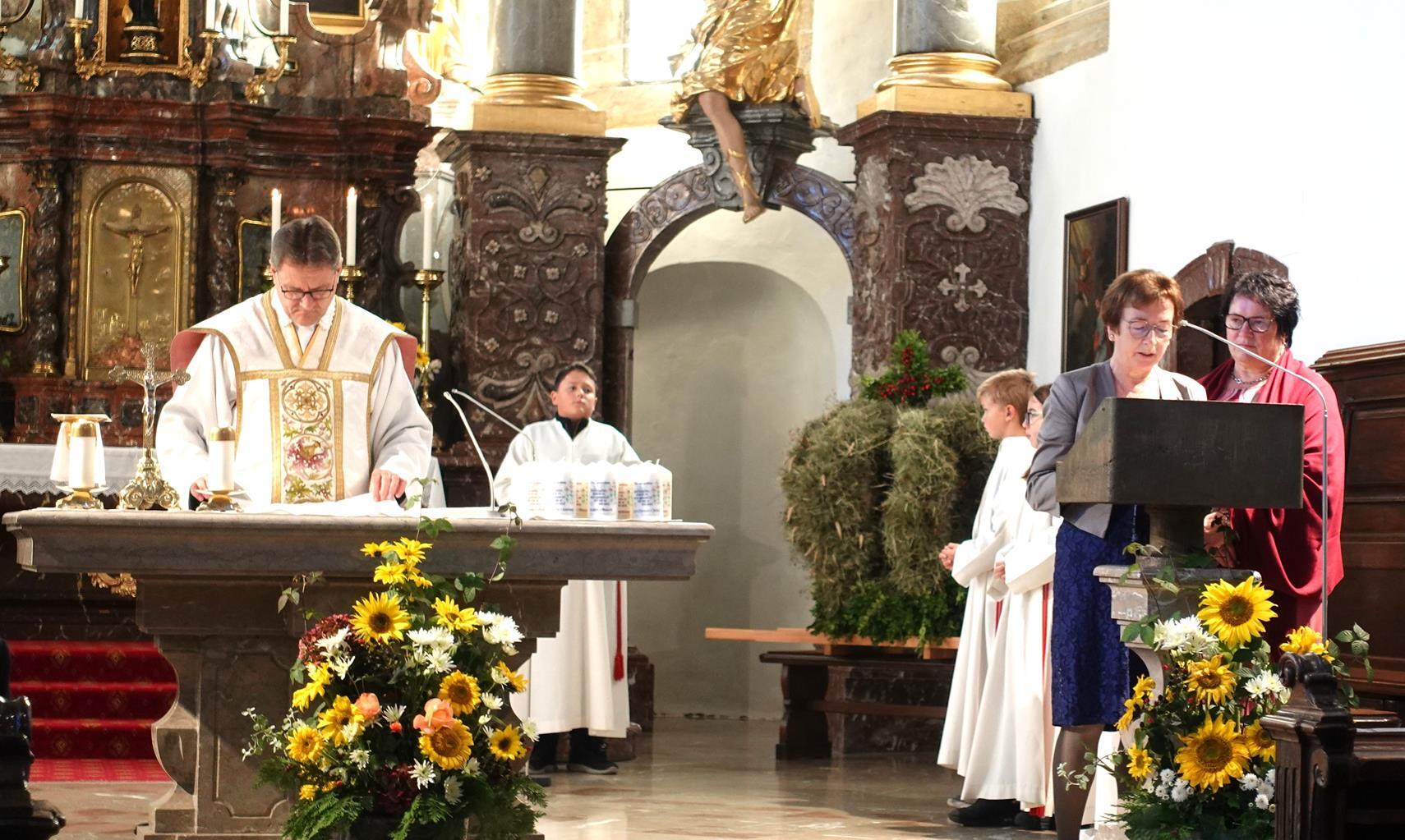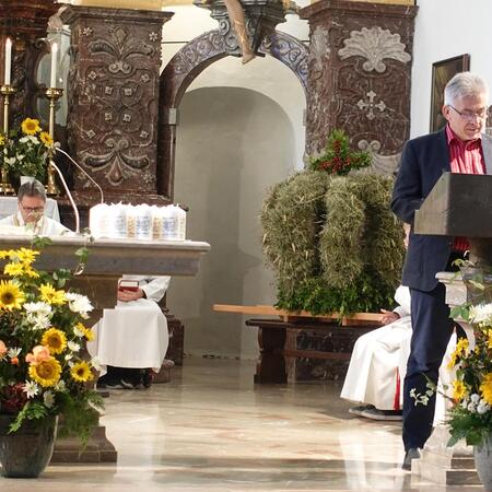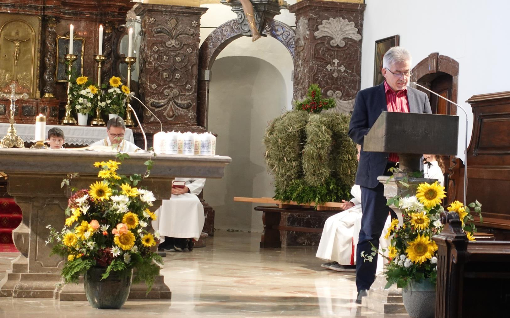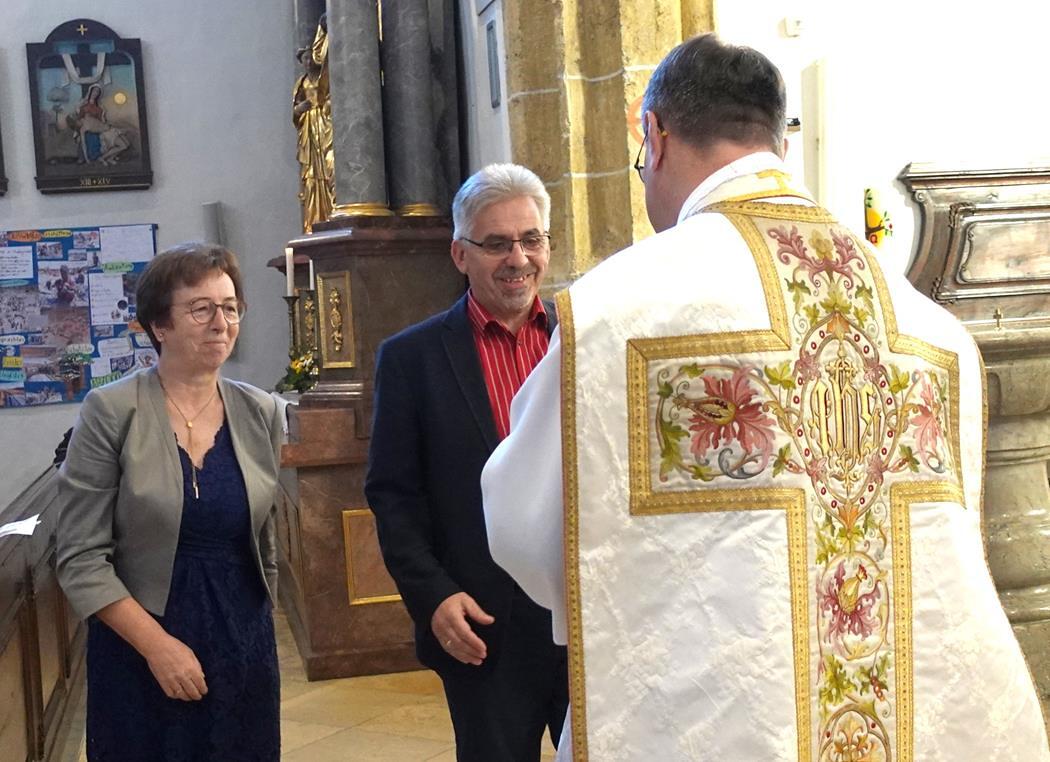 Das Evangelium erzählte vom Sämann und von der Saat. Wir neigen dazu, gleich alles aufgehen sehen zu wollen. Aber nicht alles, was man sät, geht auf. Was aber aufgeht, bringt reiche Frucht – dafür braucht es aber Geduld. Ein Ehejubiläum ist wie ein Erntedankfest, wo man auf Höhen u. Tiefen zurückschaut und sich bewusst wird, was einem im Leben geschenkt worden ist. Vieles verdanken wir dem Segen des Herrn, der uns durch Freude und Leid trägt.