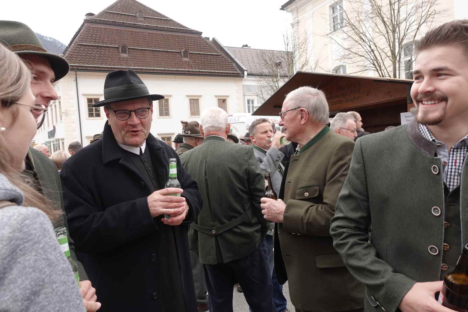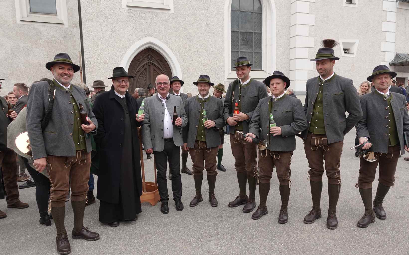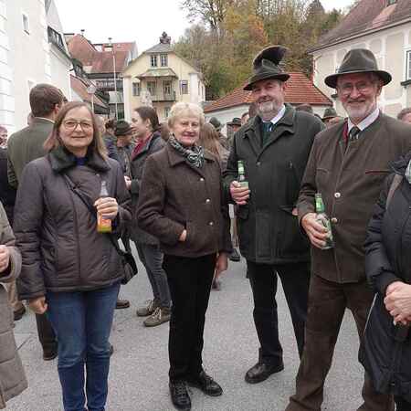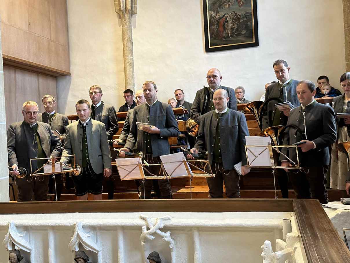 Der Gottesdienst wurde von den Jagdhornbläsern mit Hornstücken aber auch solchen zum Mitsingen musikalisch gestaltet - vielen Dank für die wohlklingenden Weisen. Am Ende der Heiligen Messe leitete der Pfarrer mit einem Jägerwitz zum gemütlichen Beisammensein am Kirchenplatz über.