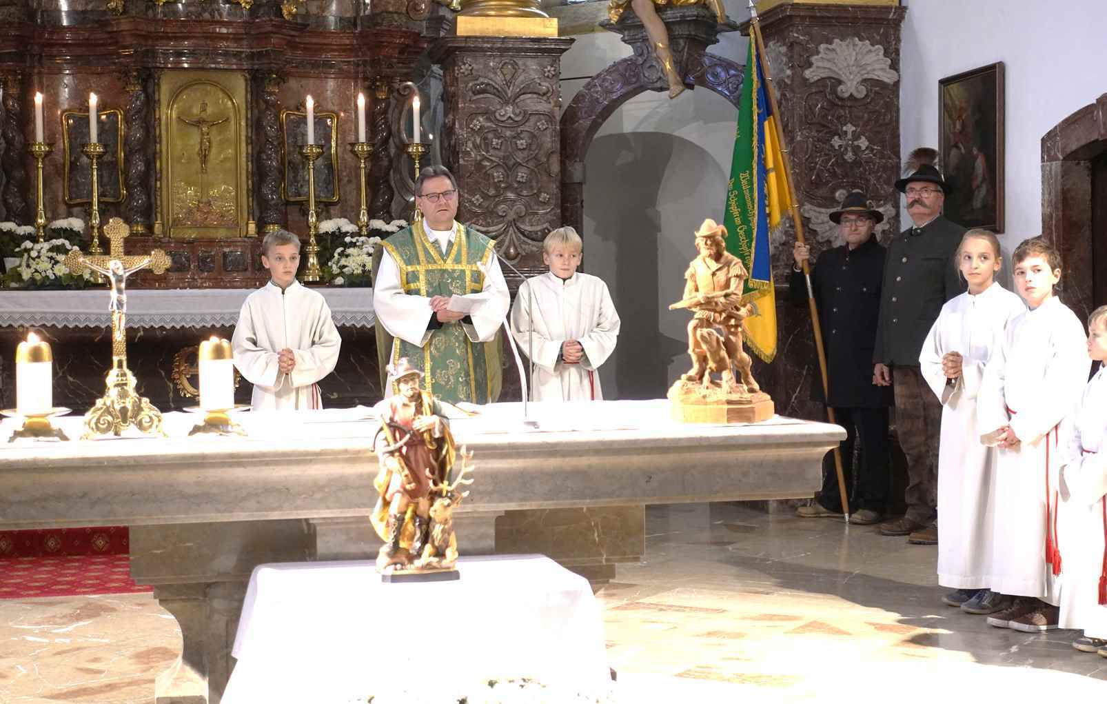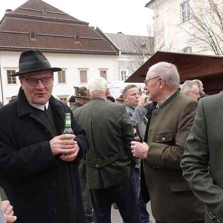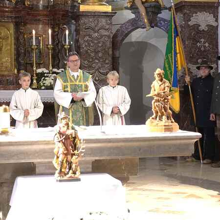 Viele waren der Einladung gefolgt - P. Jacobus freute sich und betonte in seiner Einführung, dass auch die Jägerschaft den Segen Gottes und die Fürsprache ihres Schutzpatrons braucht, damit sie mit ihrem Wirken zum Gleichgewicht in der Natur beitragen kann und vor Unheil bewahrt bleibe.