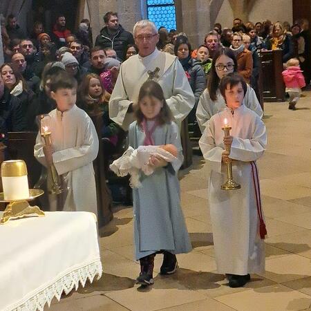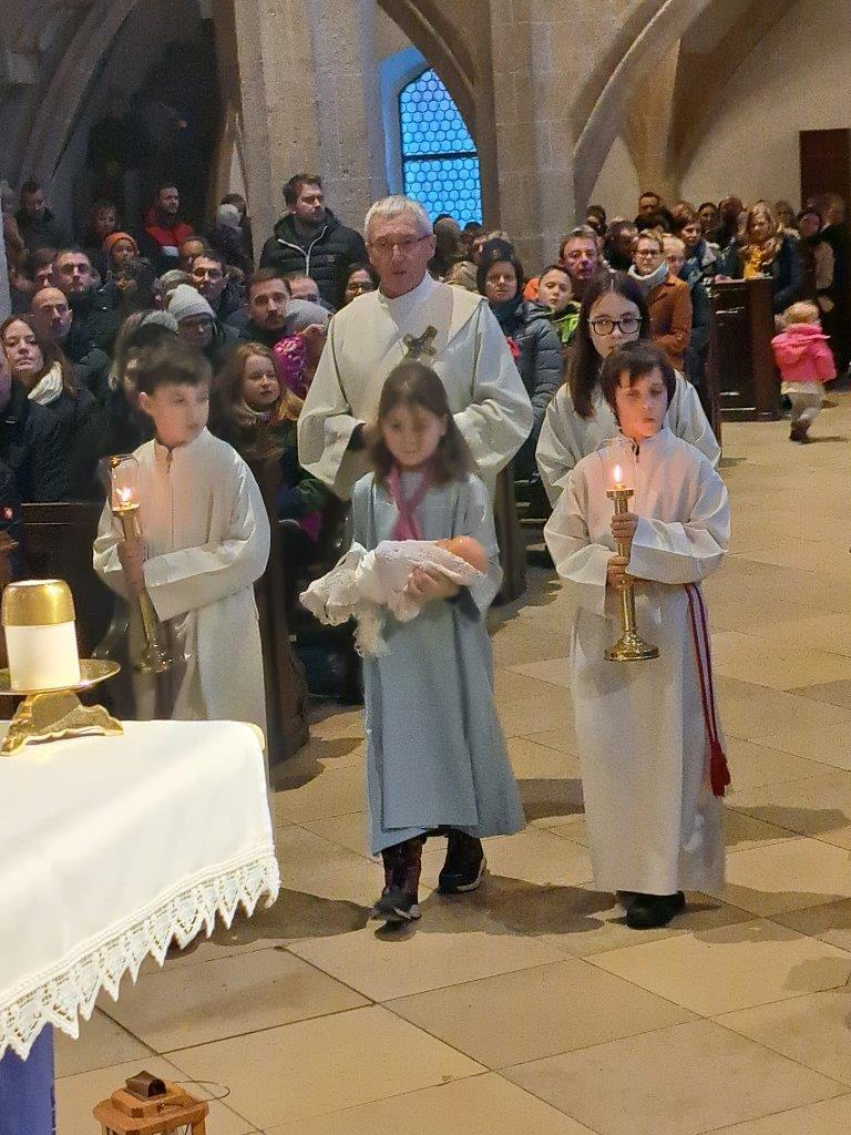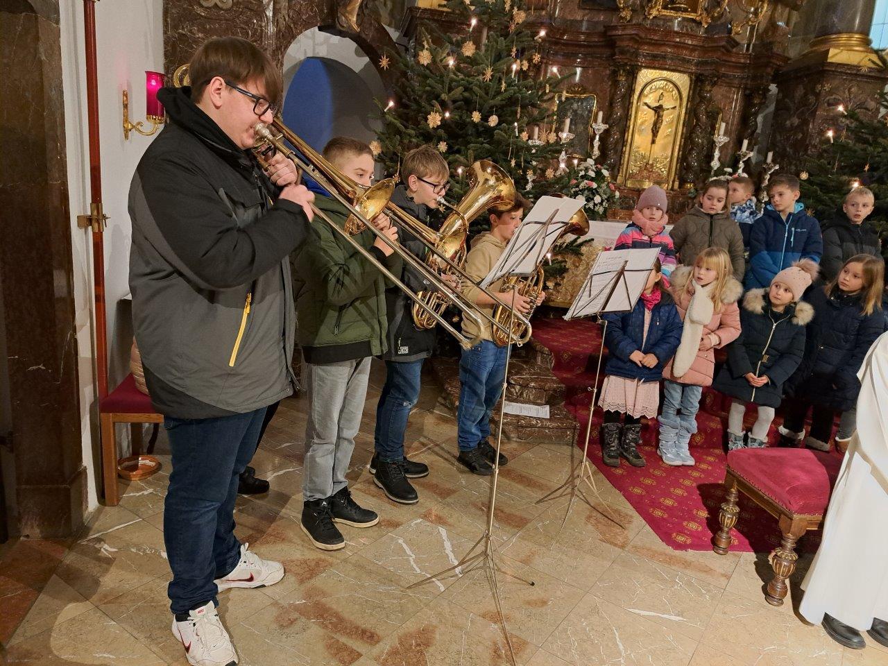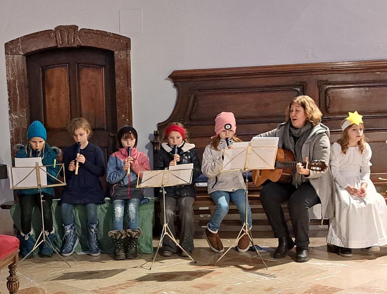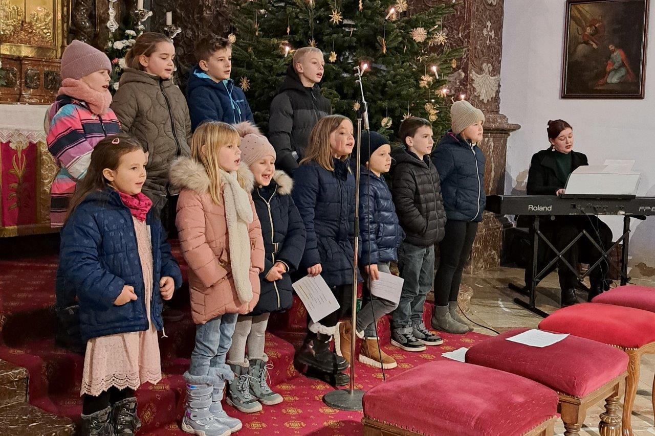 Jesus, das Kind in der Krippe, ist das große Geschenk, das uns der liebende Gott macht. Die Kinder der 2b-Klasse der VS (mit ihrer Lehrerin Christine Hinterleitner) begeisterten mit ihrem Weihnachts-Theaterstück die Gottesdienstbesucher; die schwungvollen Lieder der Volksschüler, begleitet von Gertraud und Sarah Handsteiner, und das junge Bläserquartett gaben der Feier einen weihnachtlich würdigen Rahmen.