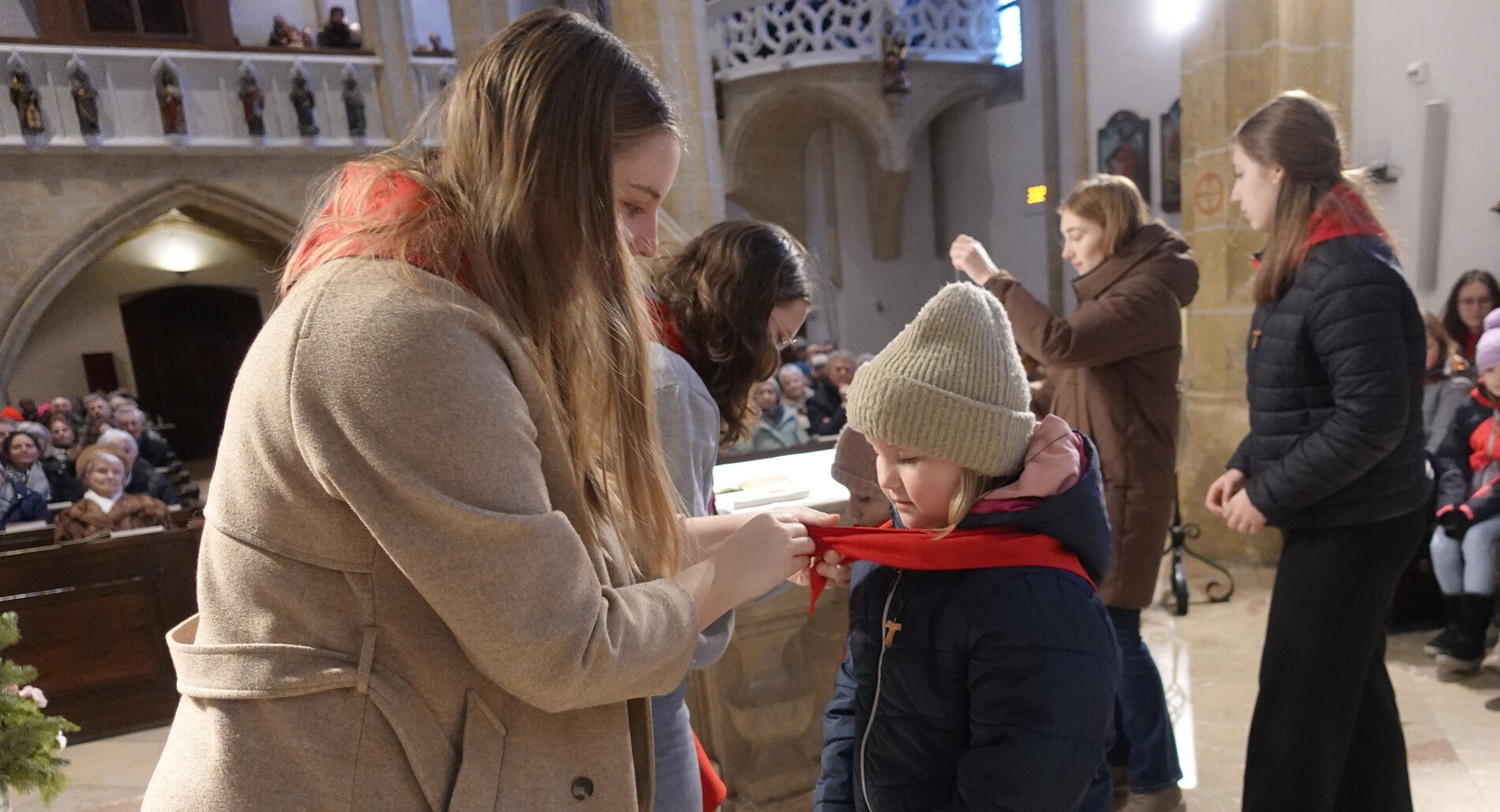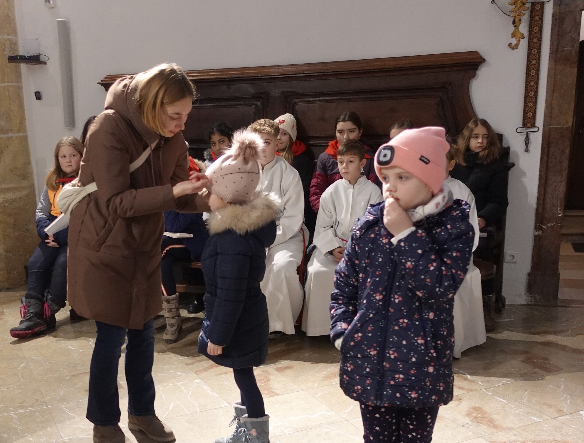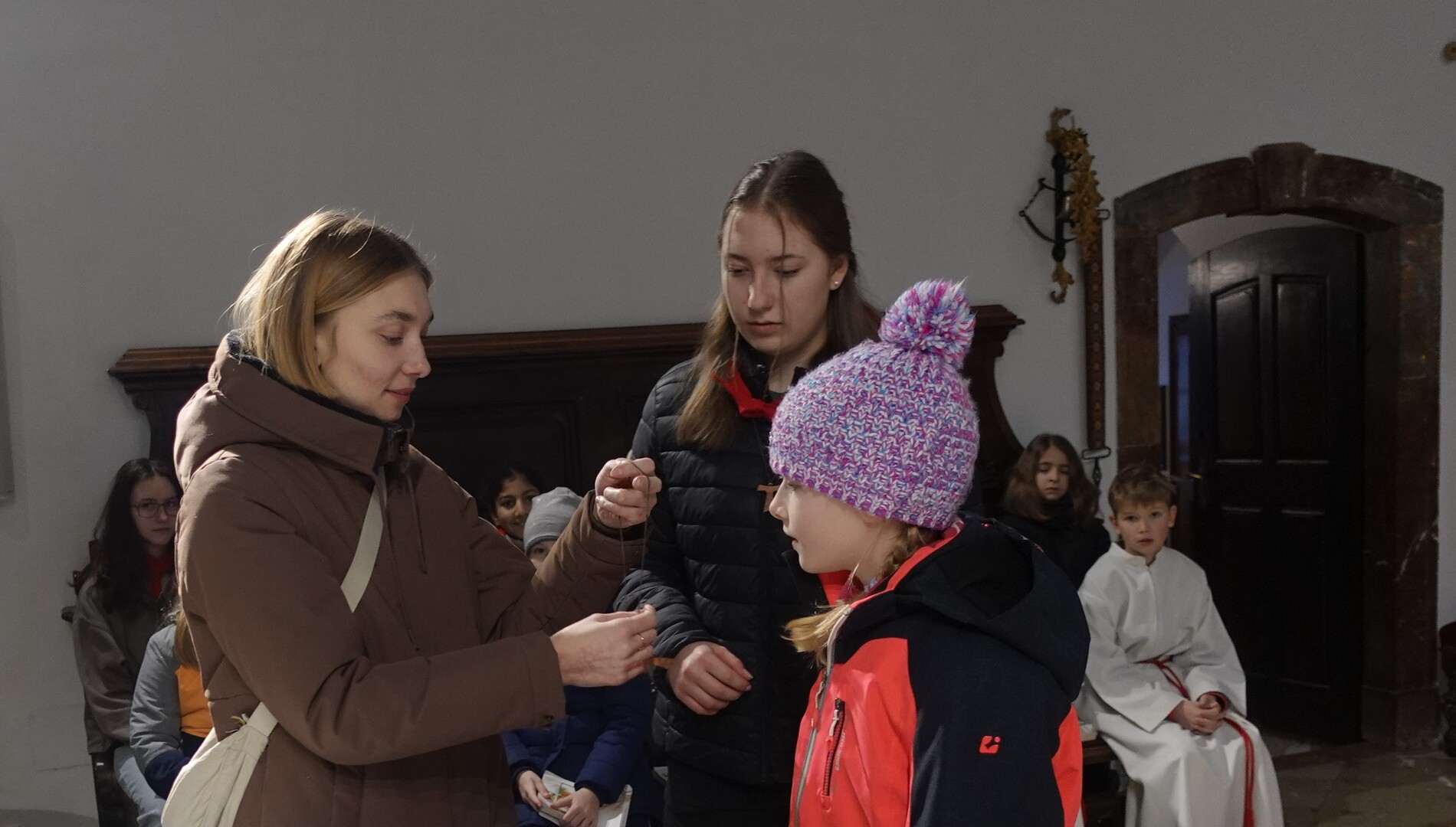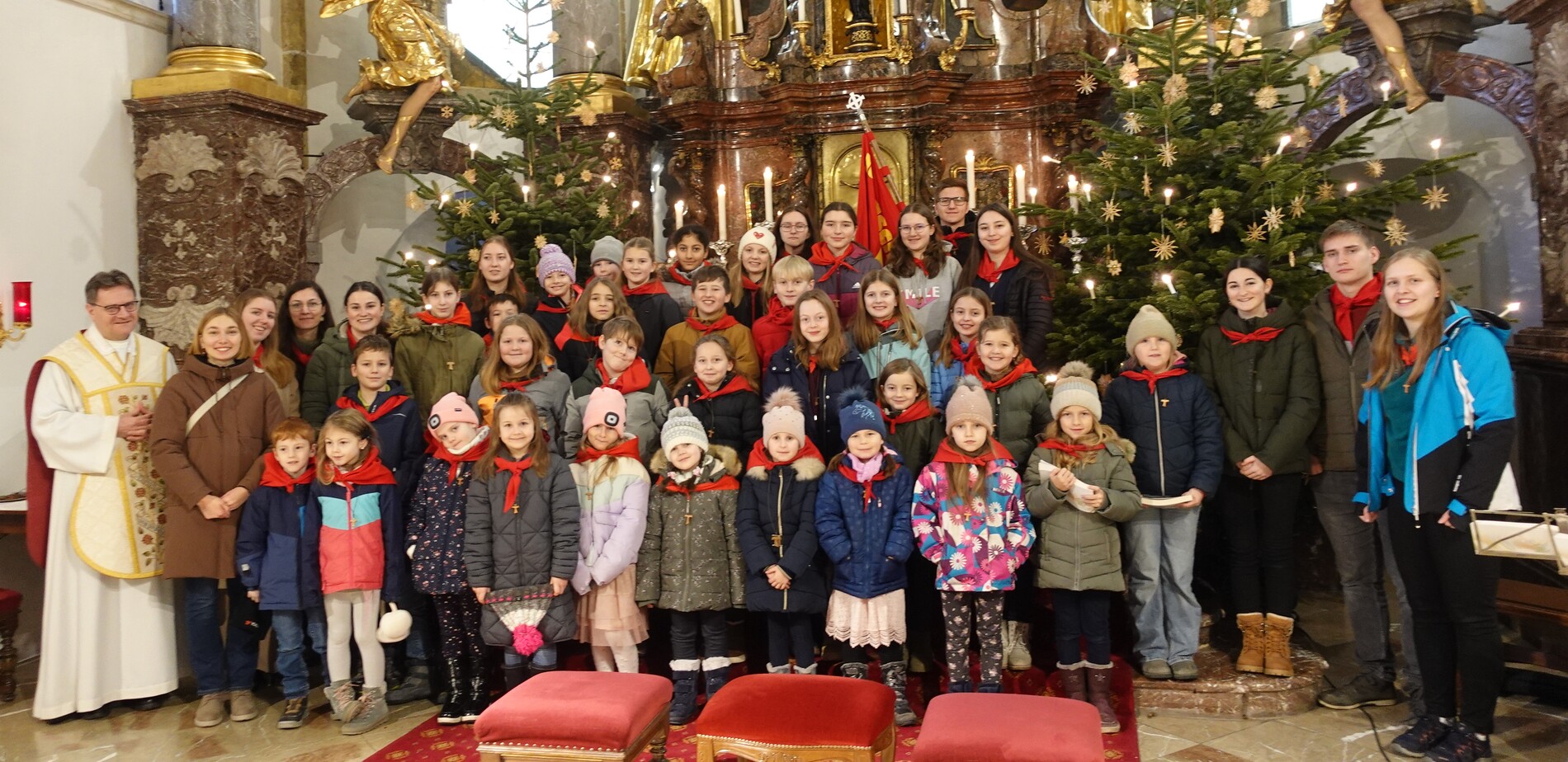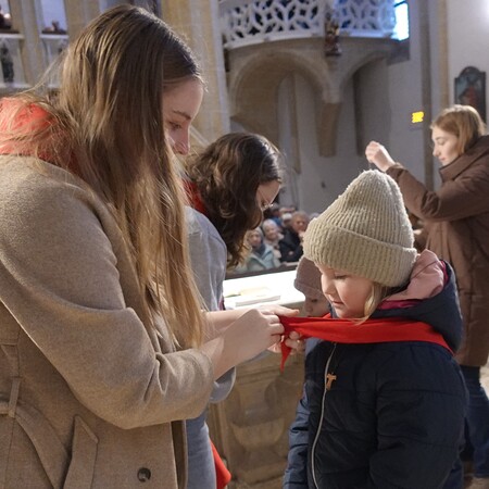 Nach der Predigt bekamen die "neuen" Jungscharkinder ein gesegnetes Kreuz und das Jungschartuch überreicht.