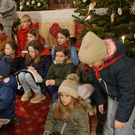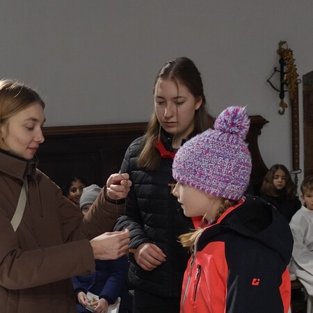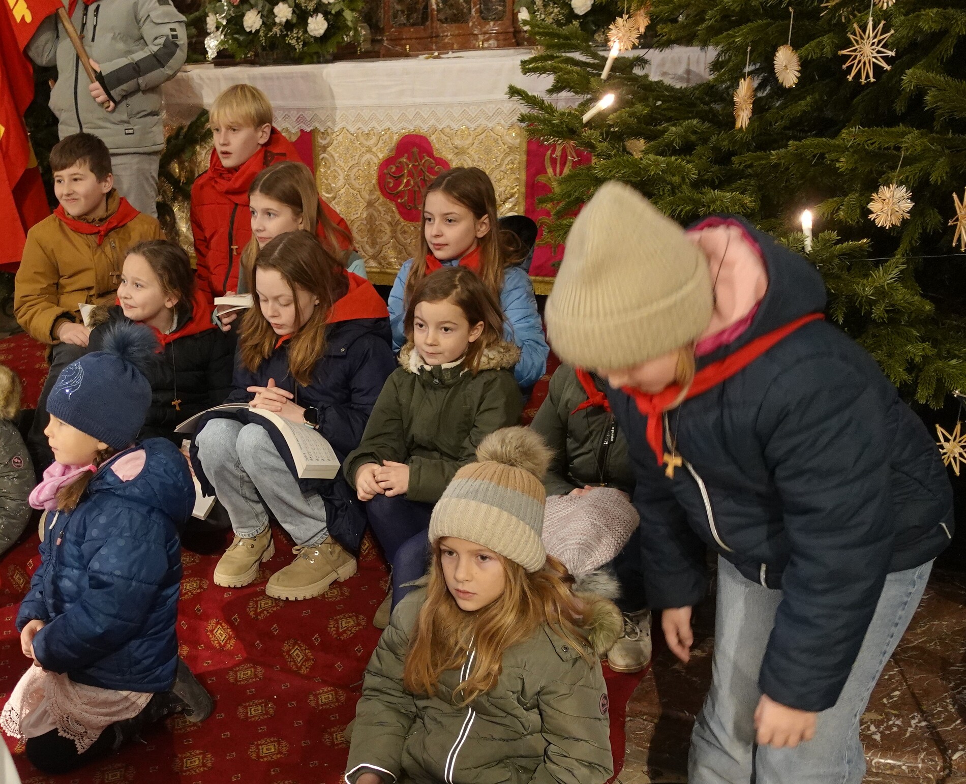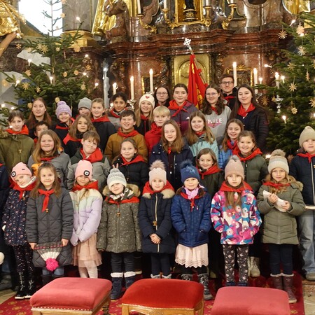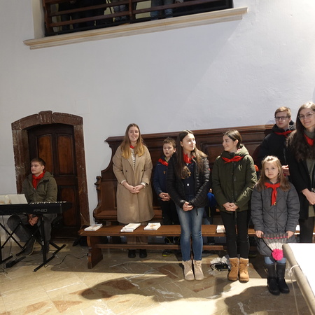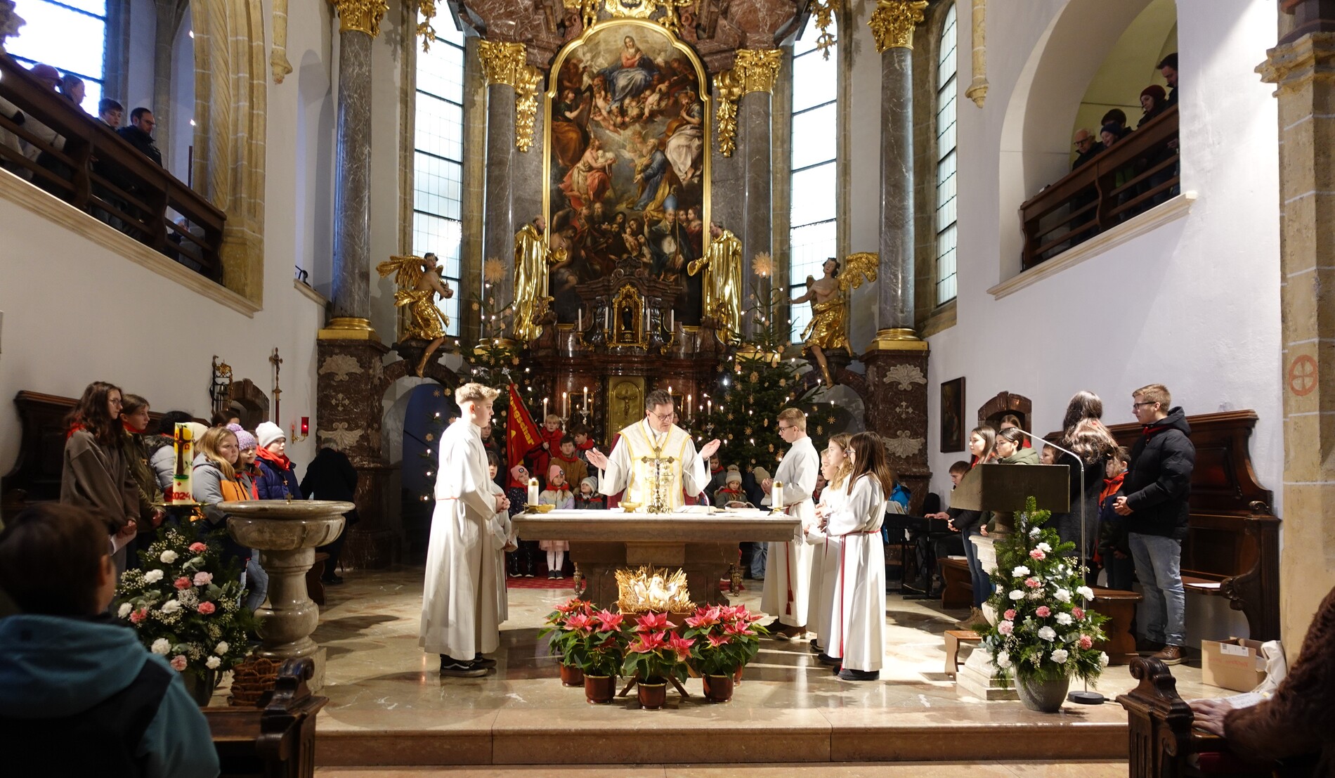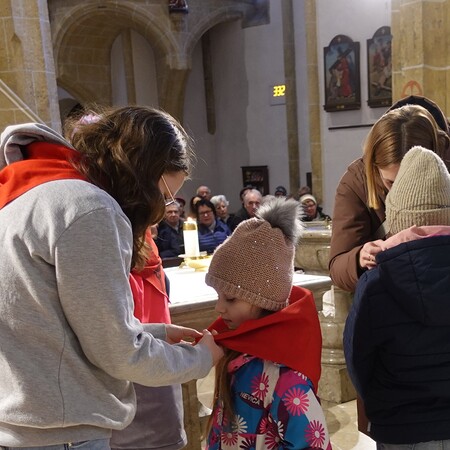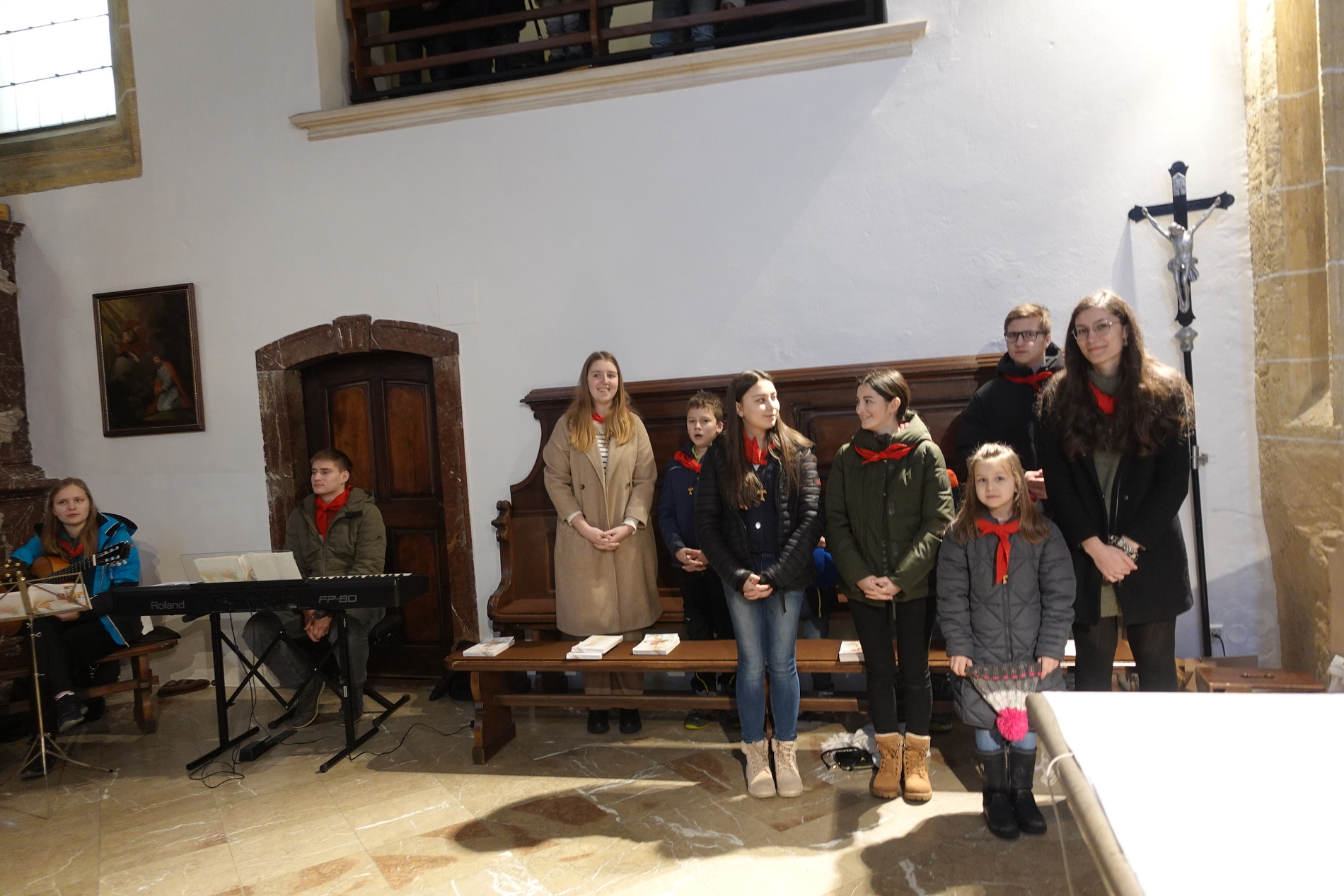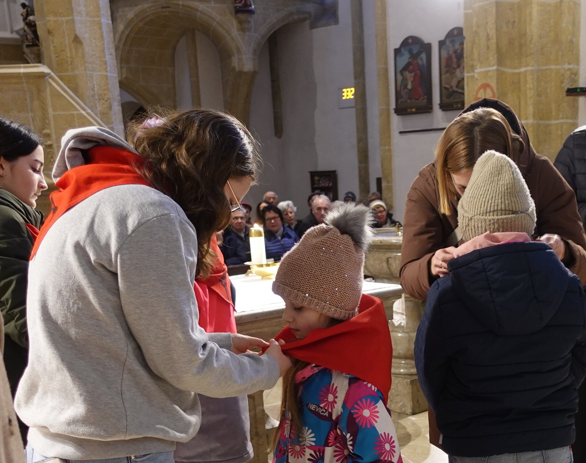 Nach der Predigt bekamen die "neuen" Jungscharkinder ein gesegnetes Kreuz und das Jungschartuch überreicht.