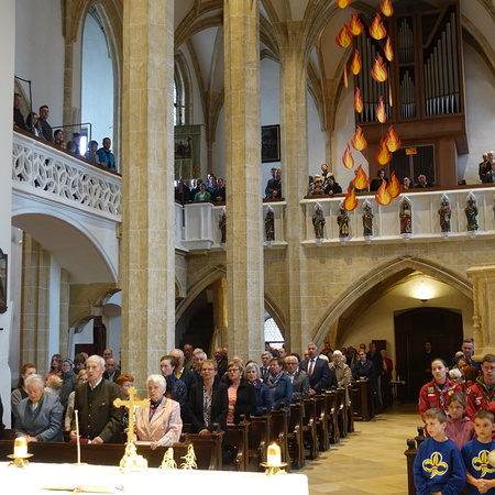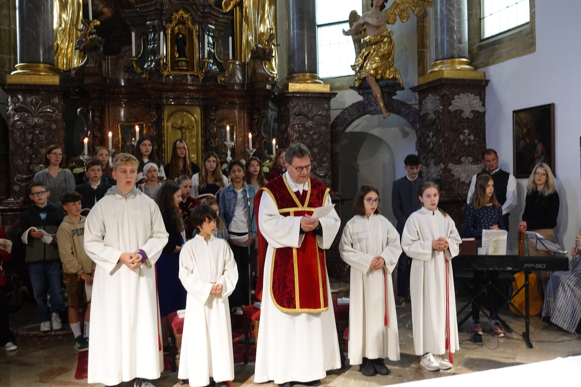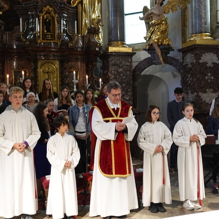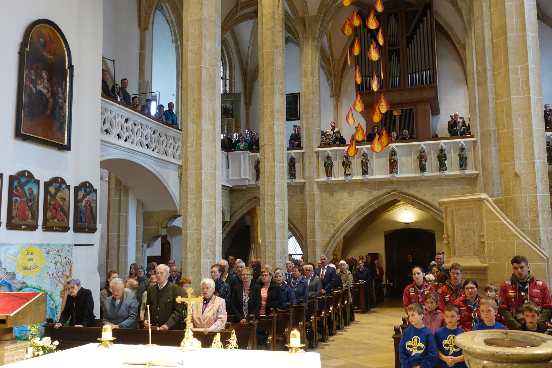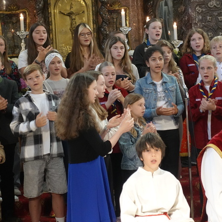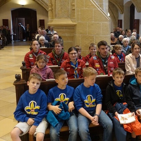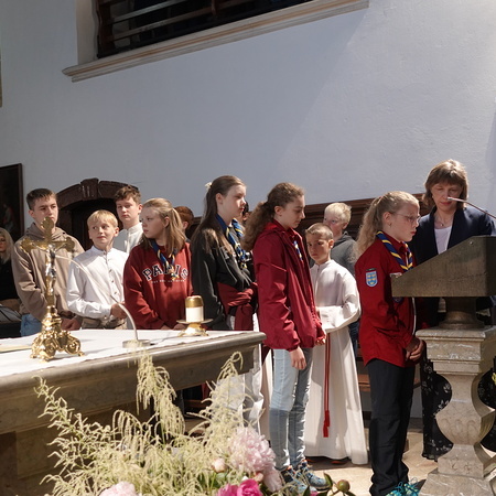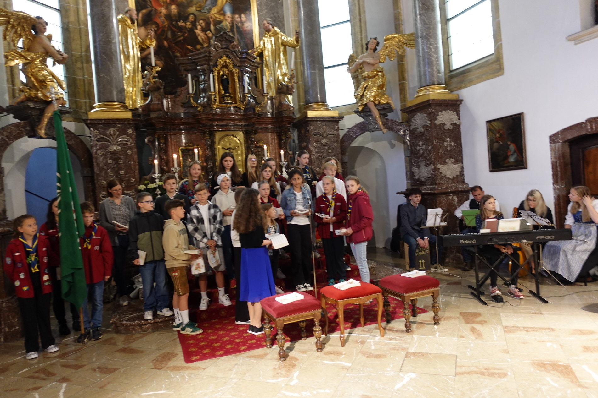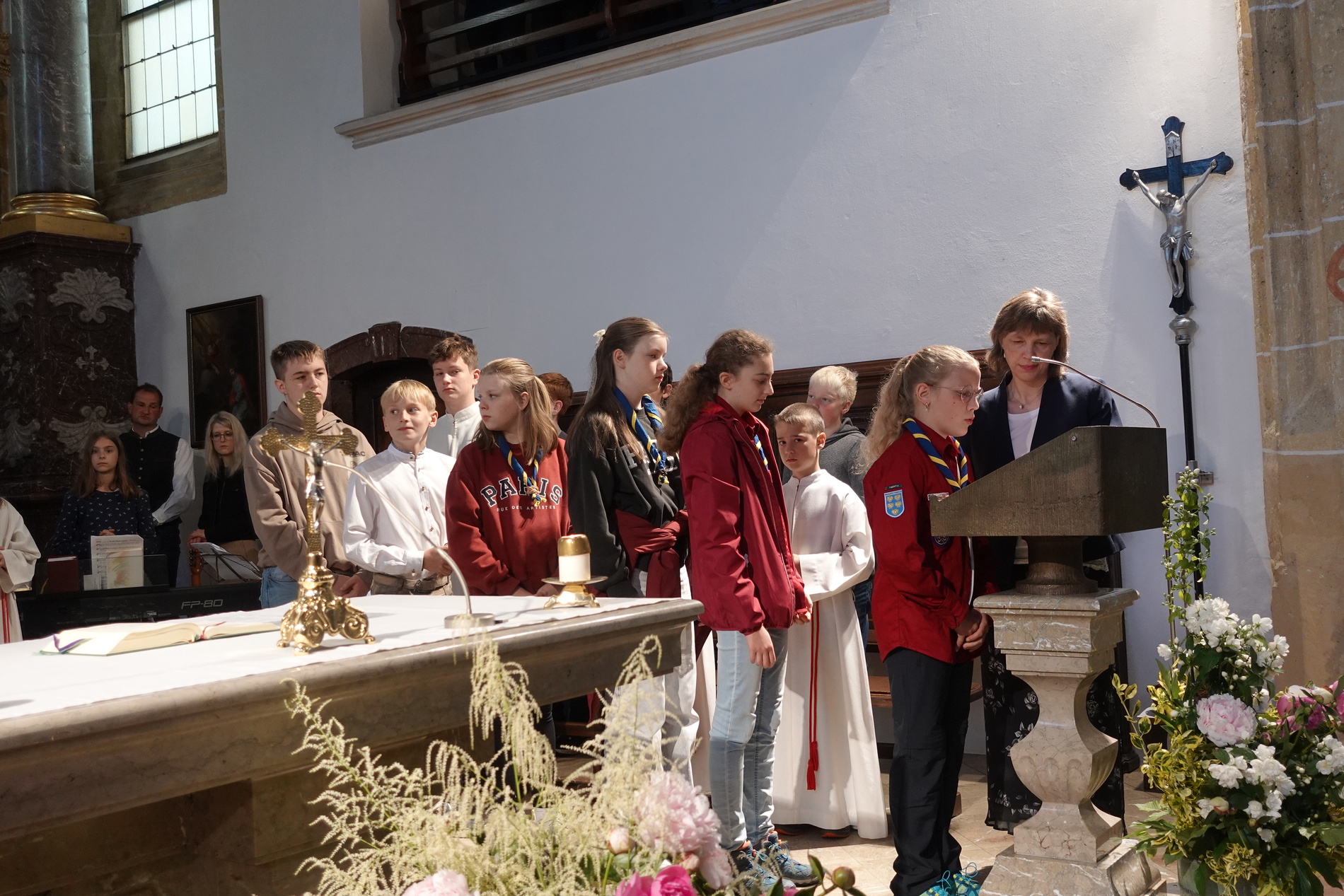 P. Jacobus freute sich, dass Pfadfinder und die neu gefirmten Jugendlichen gemeinsam diesen Gottesdienst mitgestalteten und lud ein, in der Feier der Heiligen Messe auf Gott zu hören und ihm zu begegnen. Er zitierte das Leitbild der Pfadfinder, das die Förderung der persönlichen Religiosität der Jugendlichen als wichtigen Bestandteil der Jugendarbeit vorsieht.