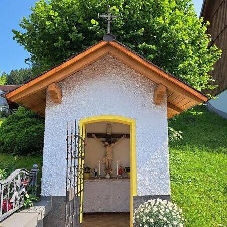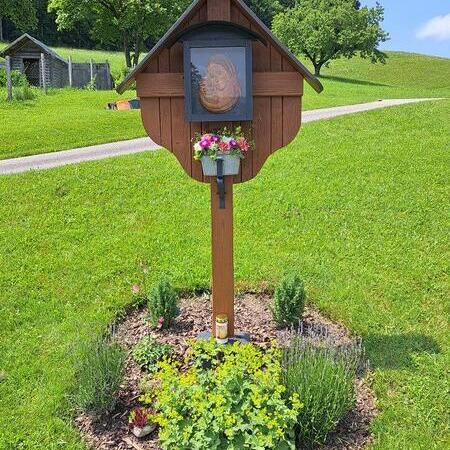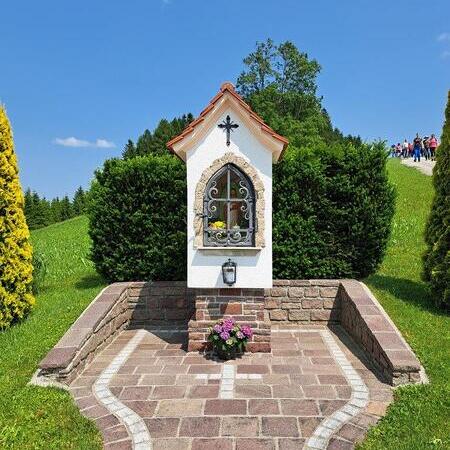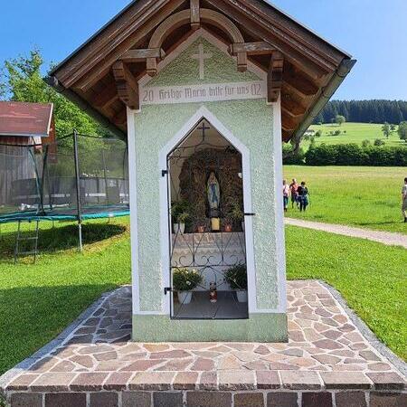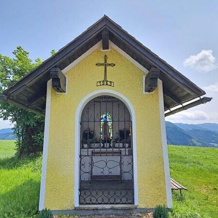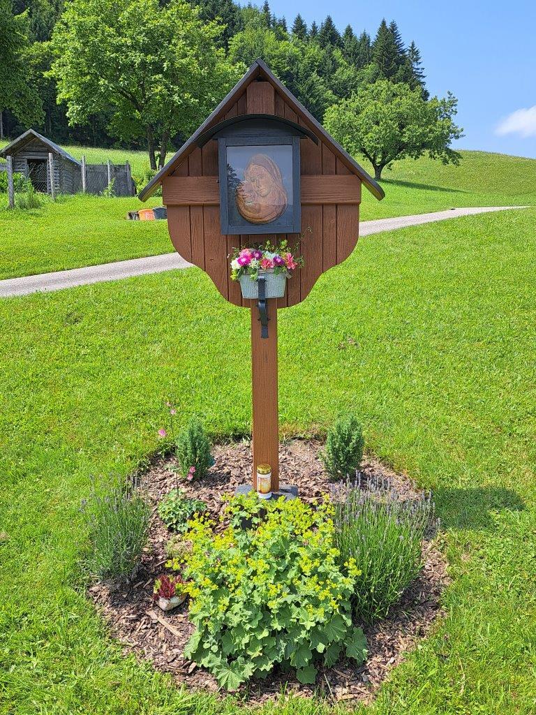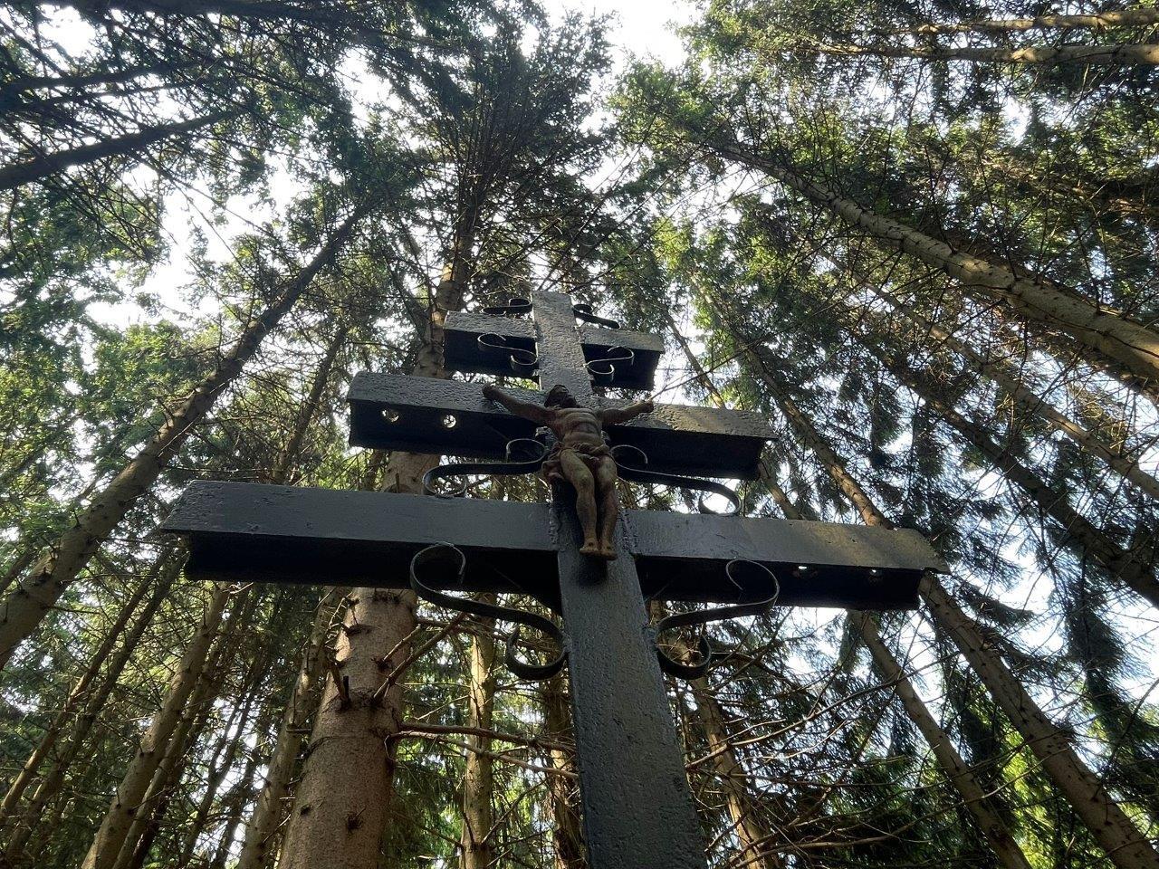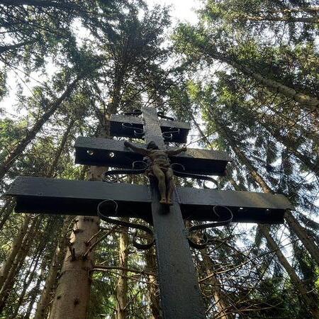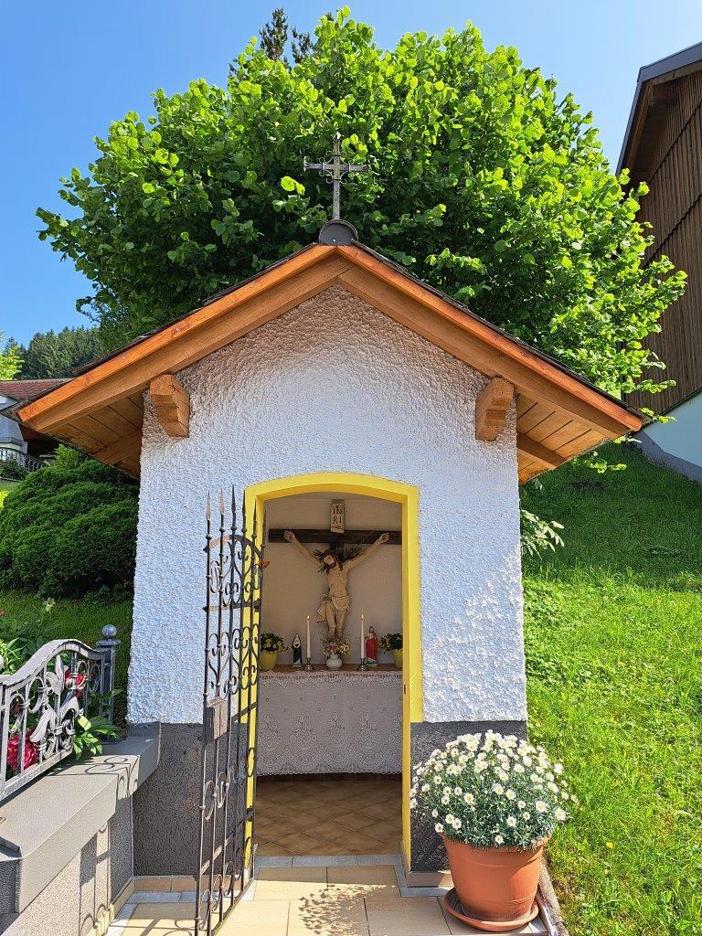 Beim Reitbauern segnete Diakon Hermann das 2018 errichtete und jetzt wieder neu gestaltete Wegkreuz, und nach dem Pilgersegen ging es in insgesamt 7 Stationen über den Hubberggipfel bis zum Haus Niederbach-Hofstatt. Bei jeder der 4 Kapellen und bei jedem der 3 Kreuze gab es einen kurzen Halt mit Liedern, Bibeltexten und Gebeten, die inhaltlich auf das jeweilige religiöse Denkmal abgestimmt waren: Beim Wegkreuz der Familie Staritzbüchler beteten wir um das Feuer der Liebe, bei der Hub-Kapelle um Trost und Hilfe in den Sorgen der Menschen. Vor dem Hubberg-Gipfelkreuz beteten wir gemeinsam um den Hl. Geist, und bei der Kapelle im Ober-Hubegg vertrauten wir uns dem guten Hirten Jesus an. Nach einer Stärkung ging es über Wiesen und einen Waldweg hinunter zur Kreuzkapelle im Flachreith, wo der Dank an Gott, der uns seinen Sohn Jesus geschenkt hat, im Mittelpunkt stand. Bei der Marienkapelle in der Hofstatt erfolgte der Abschluss mit der Bitte um Gottes Segen.