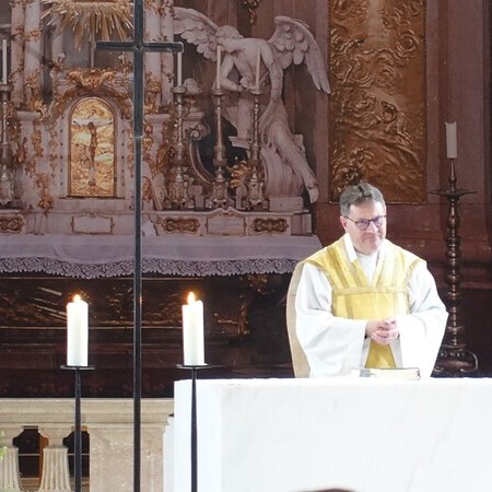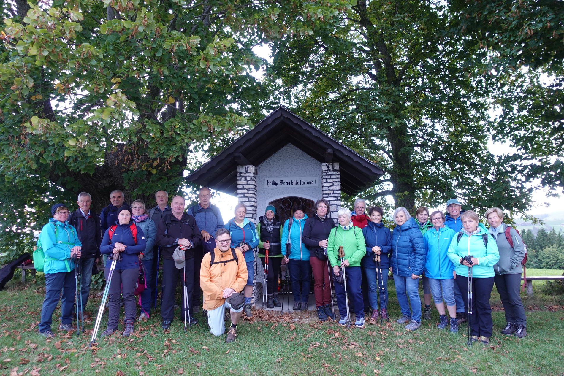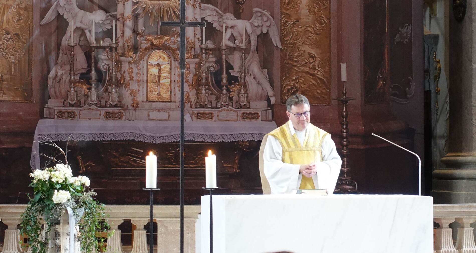 Viele waren auch mit dem Auto oder Rad nachgkommen, sodass sich die Gruppe zur anschließenden Feier der Heiligen Messe verdoppelt hatte, was P. Jacobus sehr freute. Er stellte beim Gottesdienst den dreifaltigen Gott in den Mittelpunkt, das wunderbare Geheimnis der Liebe und Einheit Gottes.