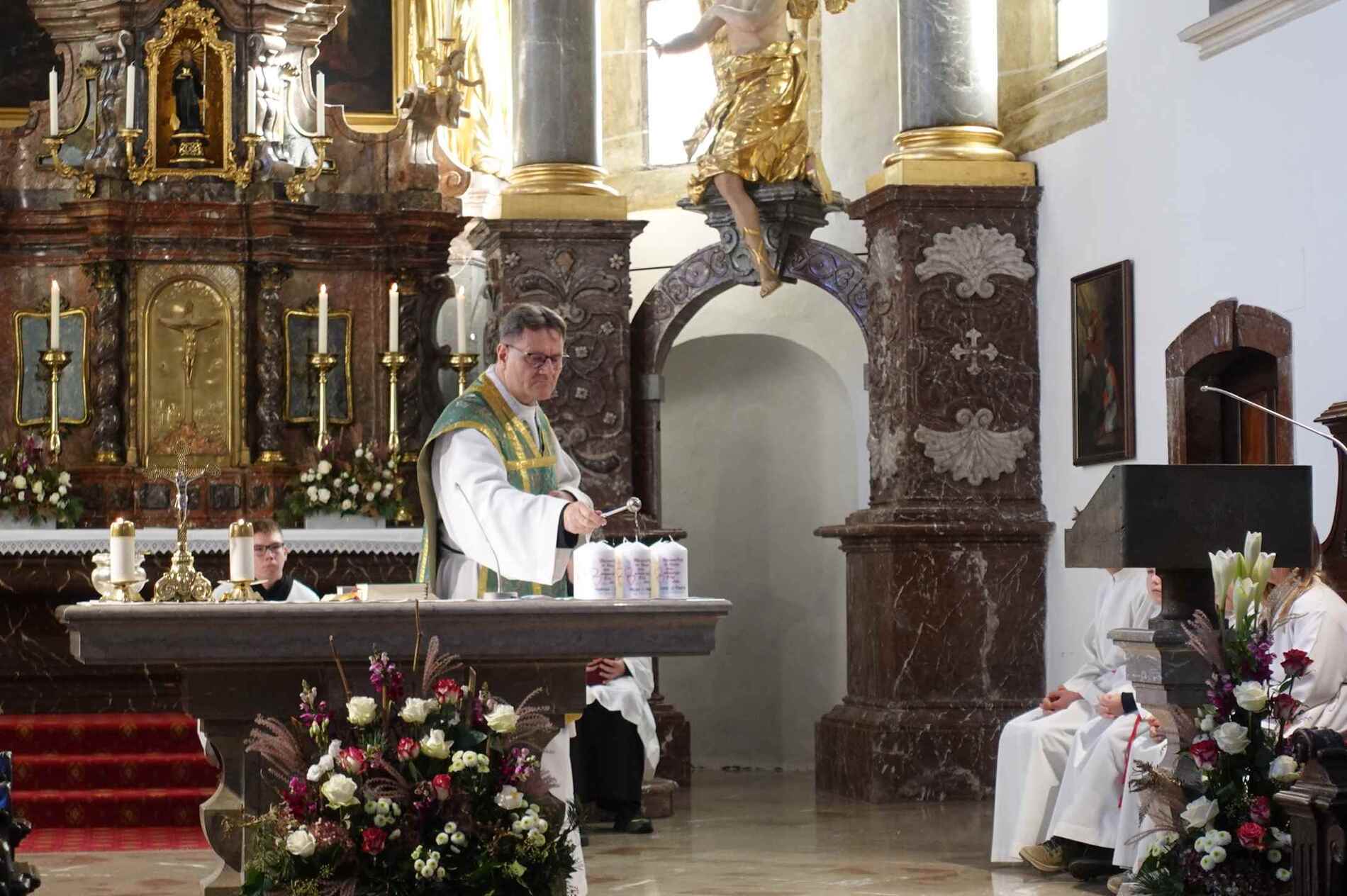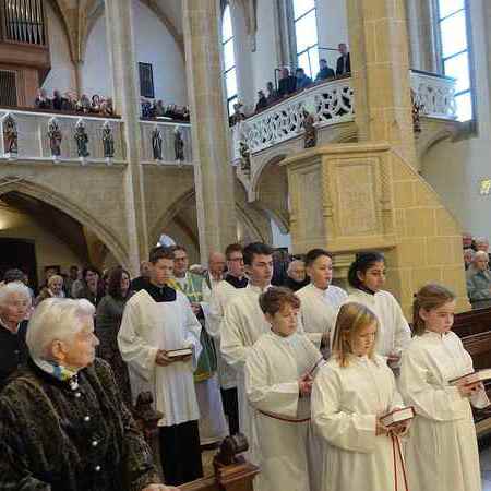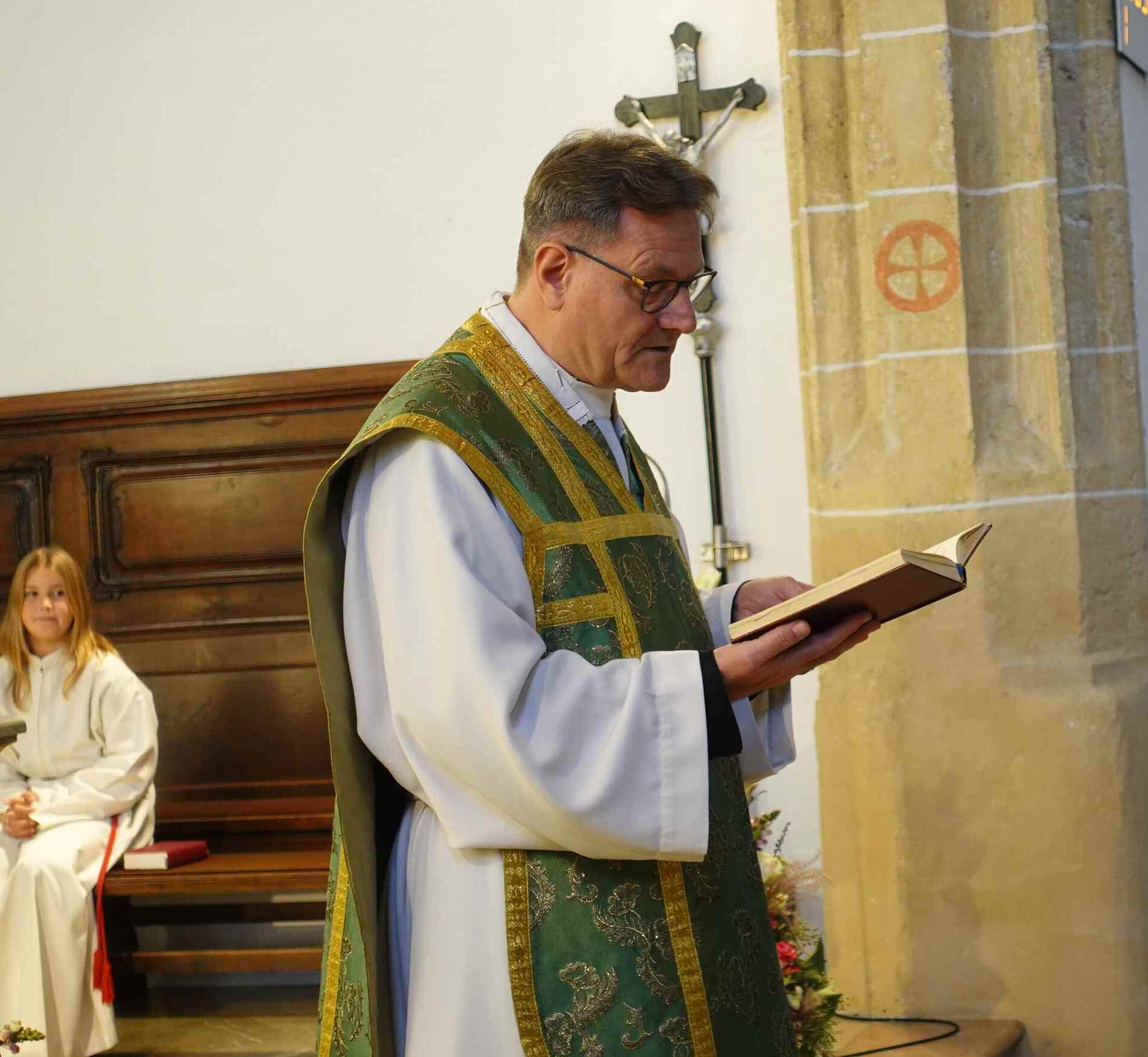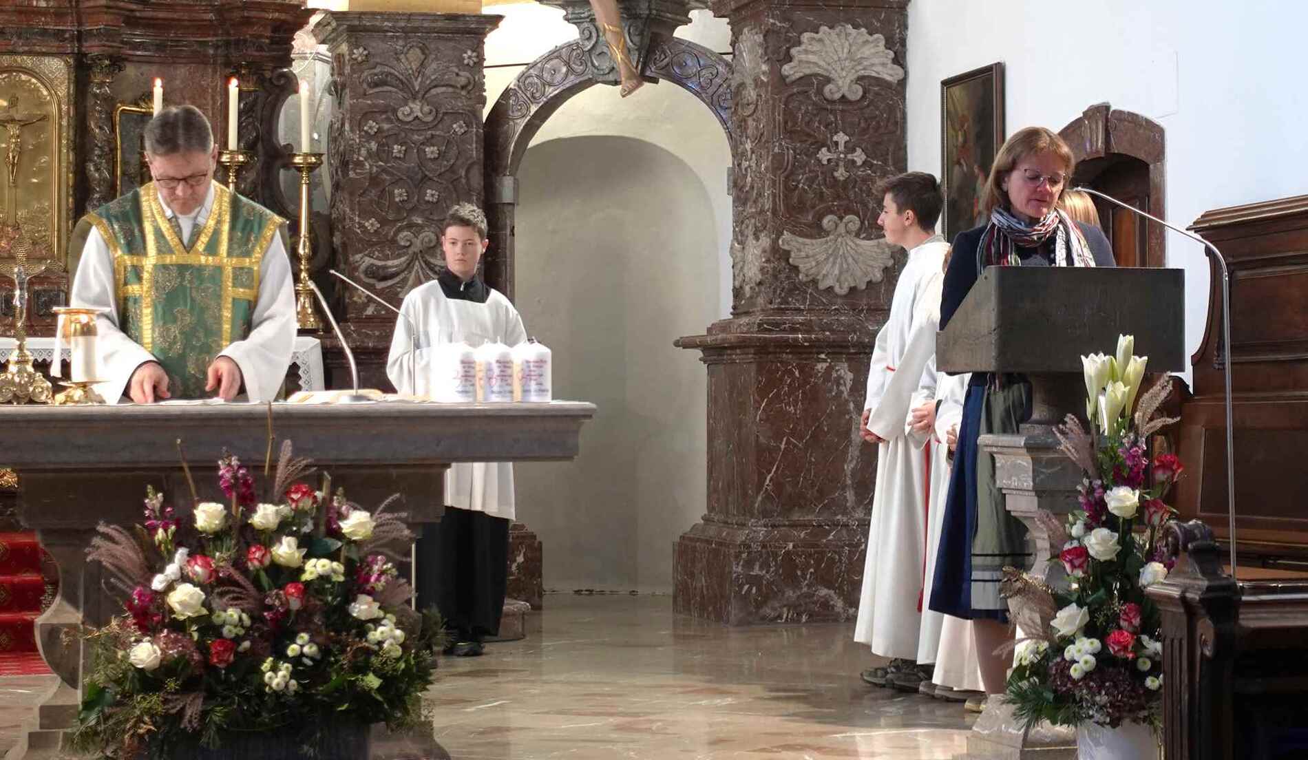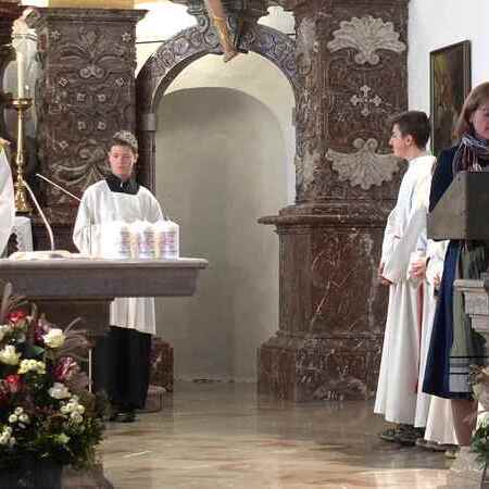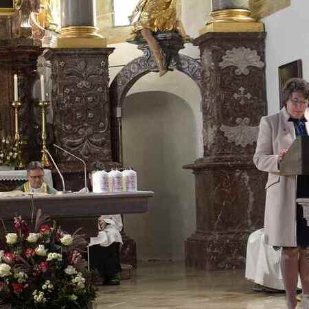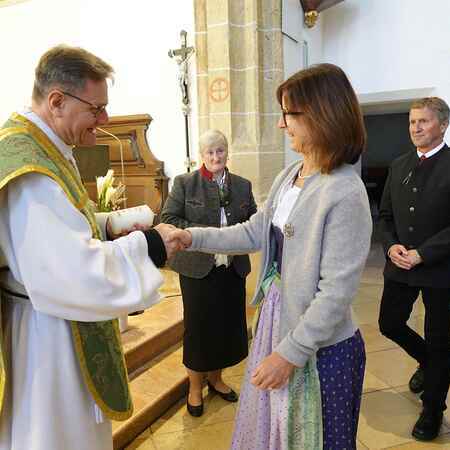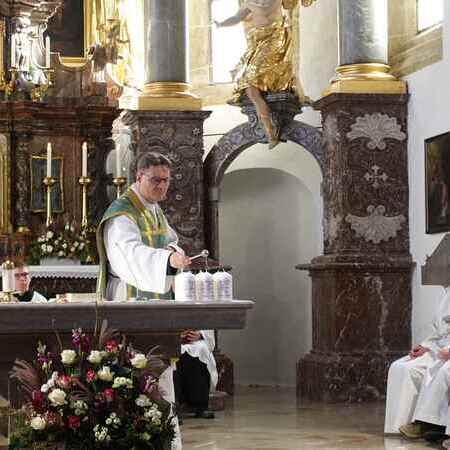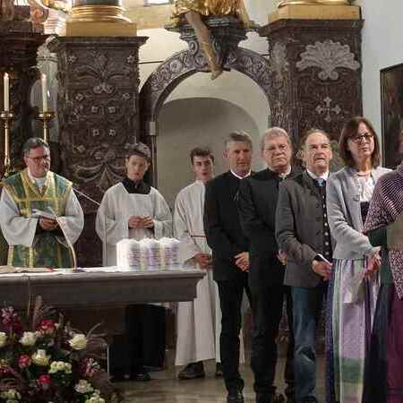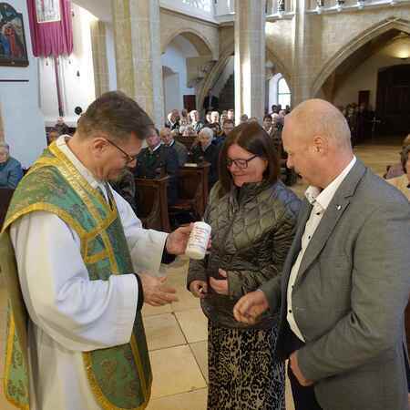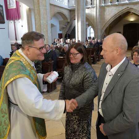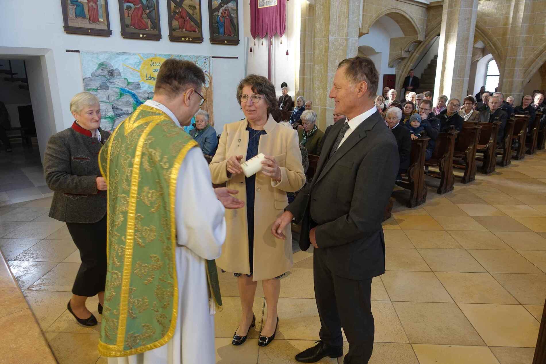 Gott und einander für 25 bzw. 40 Ehejahre danken und um seinen weiteren Segen bitten - in seiner Predigt verglich P. Jacobus diese Feier mit einem Erntedankfest. Man schaut zurück, auf all die Jahre, auf Höhen und Tiefen, auf Freud und Leid, auf Familie, Kinder und Kindeskinder und wird sich bewusst, was einem im Leben geglückt und geschenkt ist. Vieles - manchmal das Wichtigste - verdanken wir einem gütigen Geschick, dem Segen des Herrn.