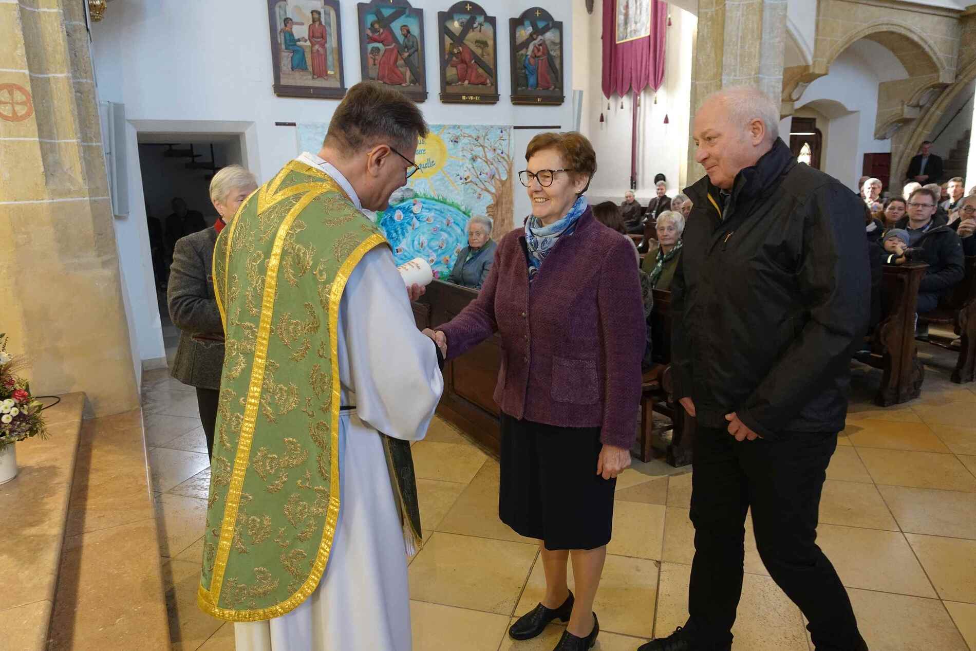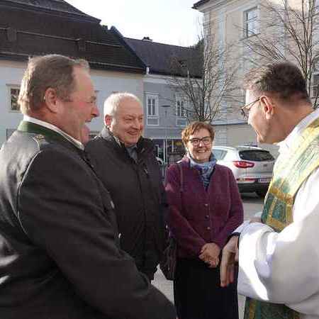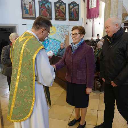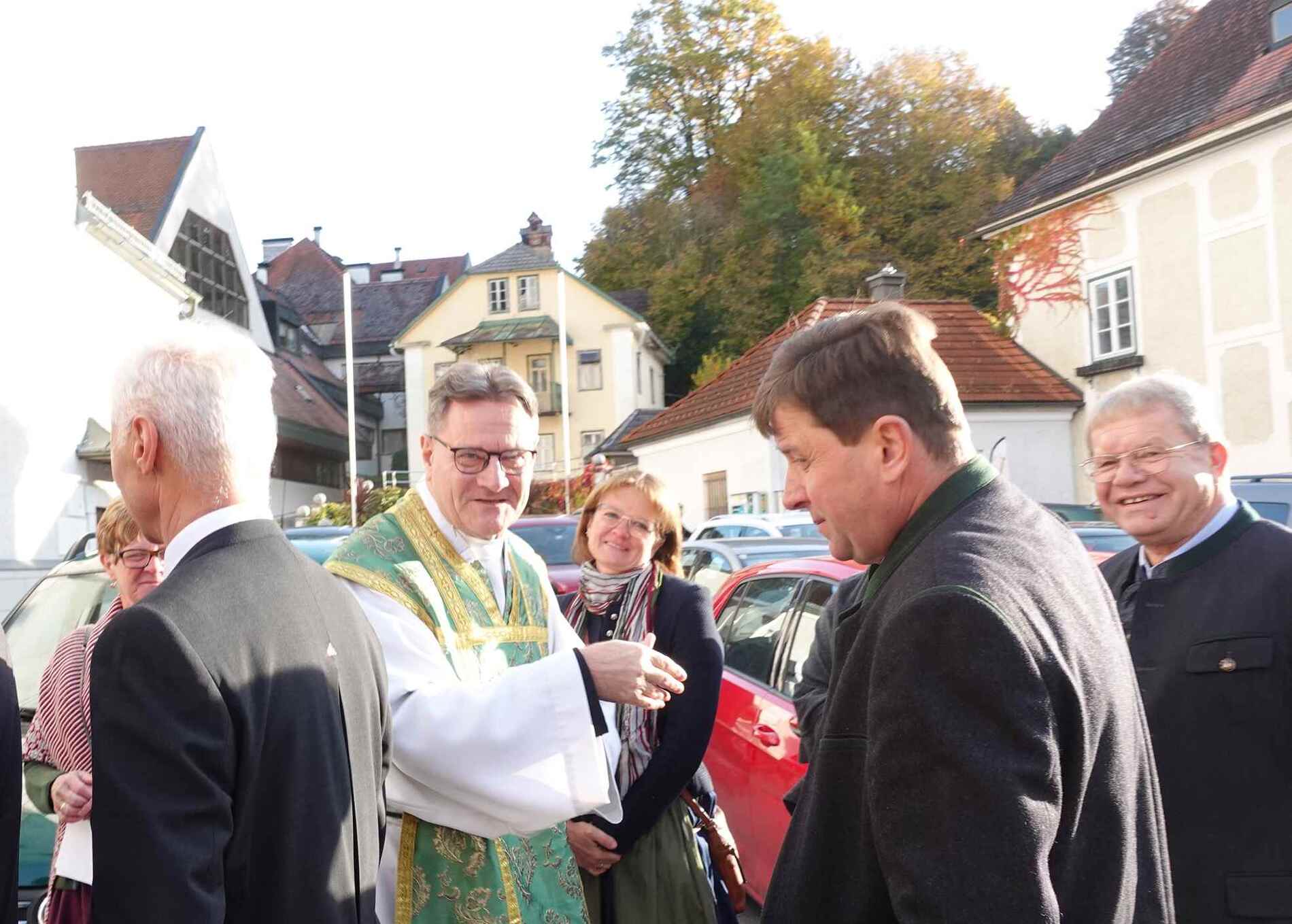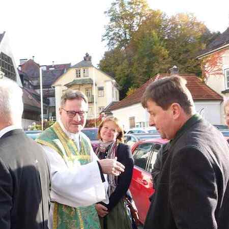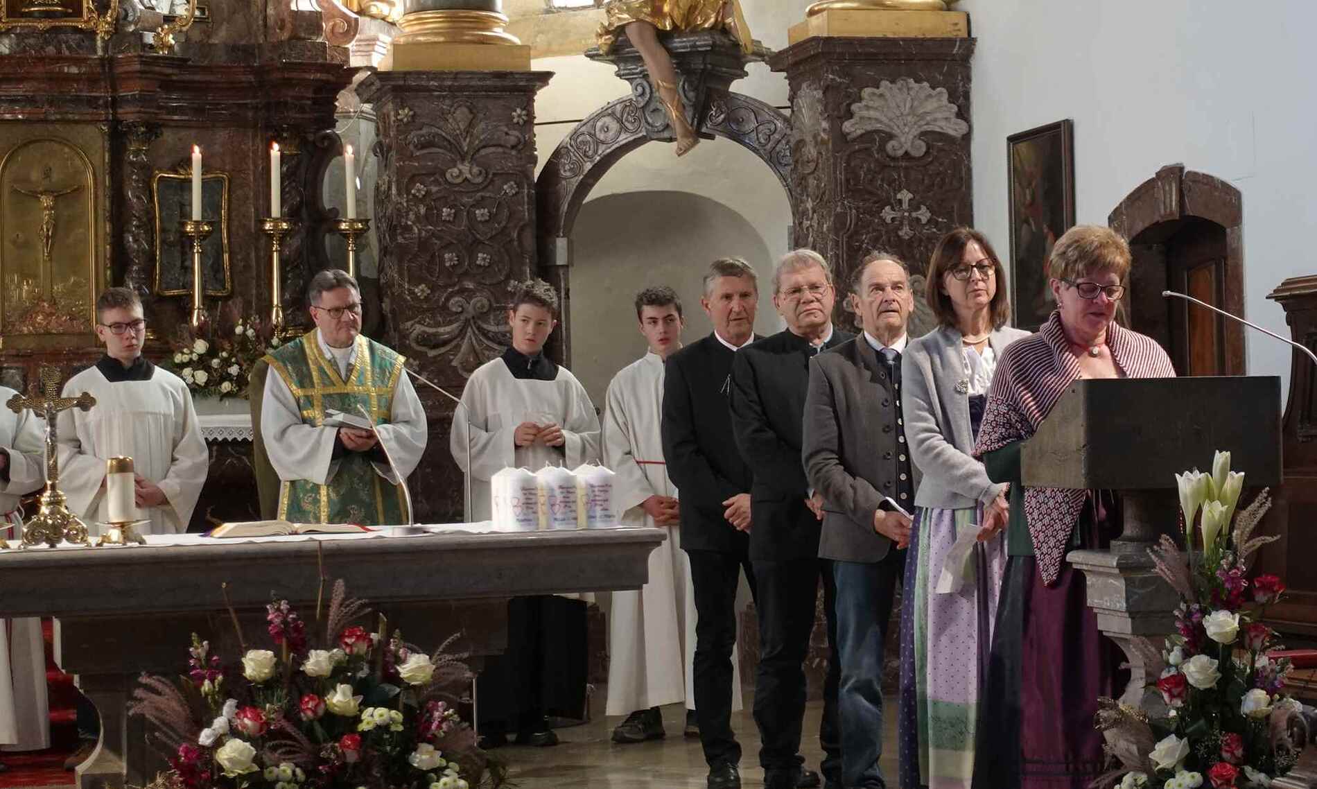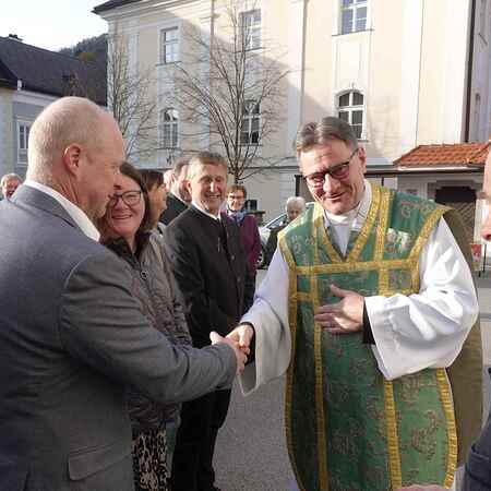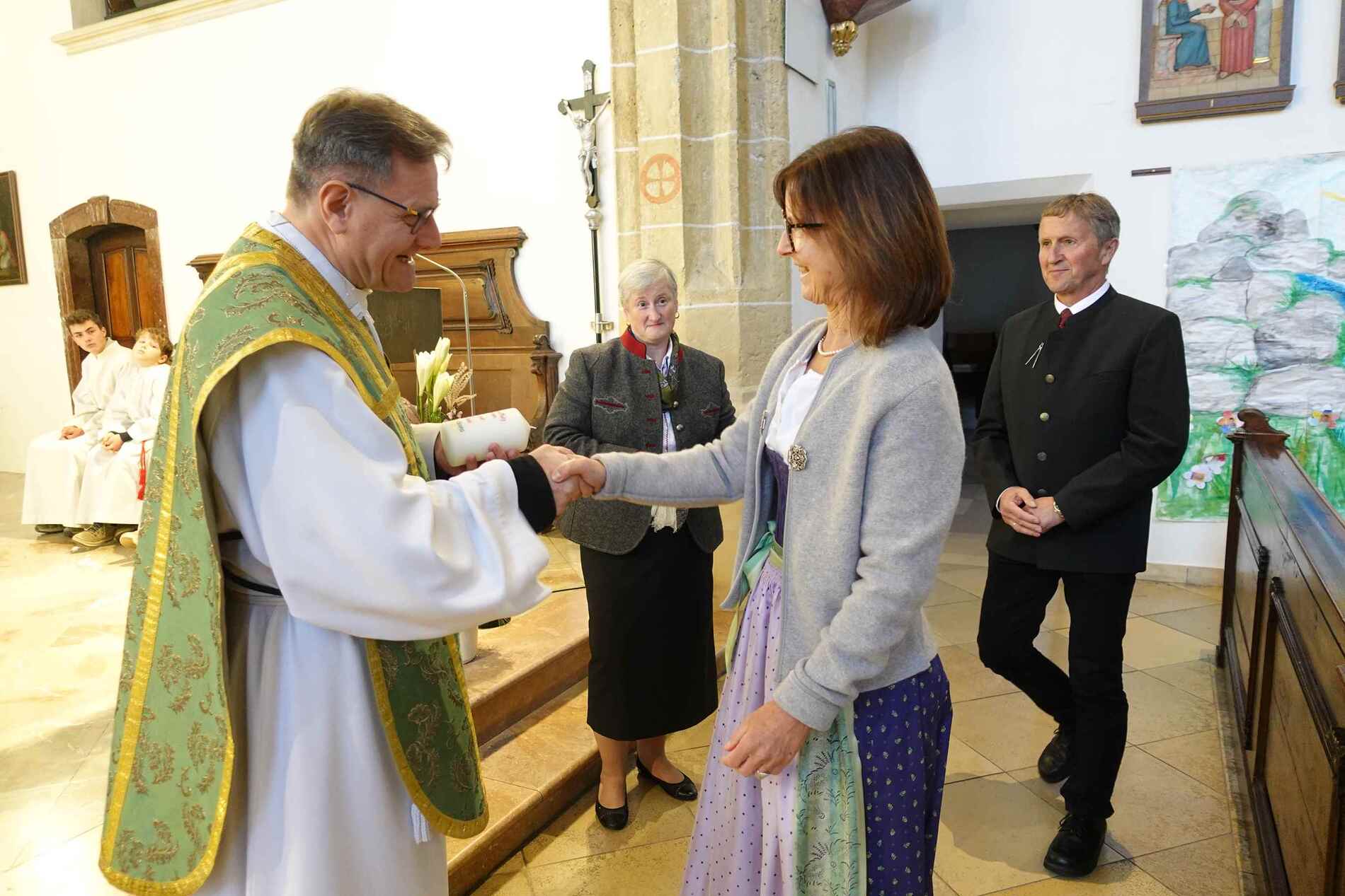 P. Jacobus gratulierte den Paaren im Namen der Pfarre und überreichte jedem Ehepaar eine Kerze, die er vorher gesegnet hatte. Die musikalische Gestaltung durch ein Bläserensemble und den Bäuerinnenchor, zur Ehre Gottes und der Jubelpaare, erfreute die ganze Gottesdienstgemeinde. Nach der Festmesse empfing der Vizebürgermeister die Paare im Ferrum, um ihnen ebenfalls zu gratulieren.