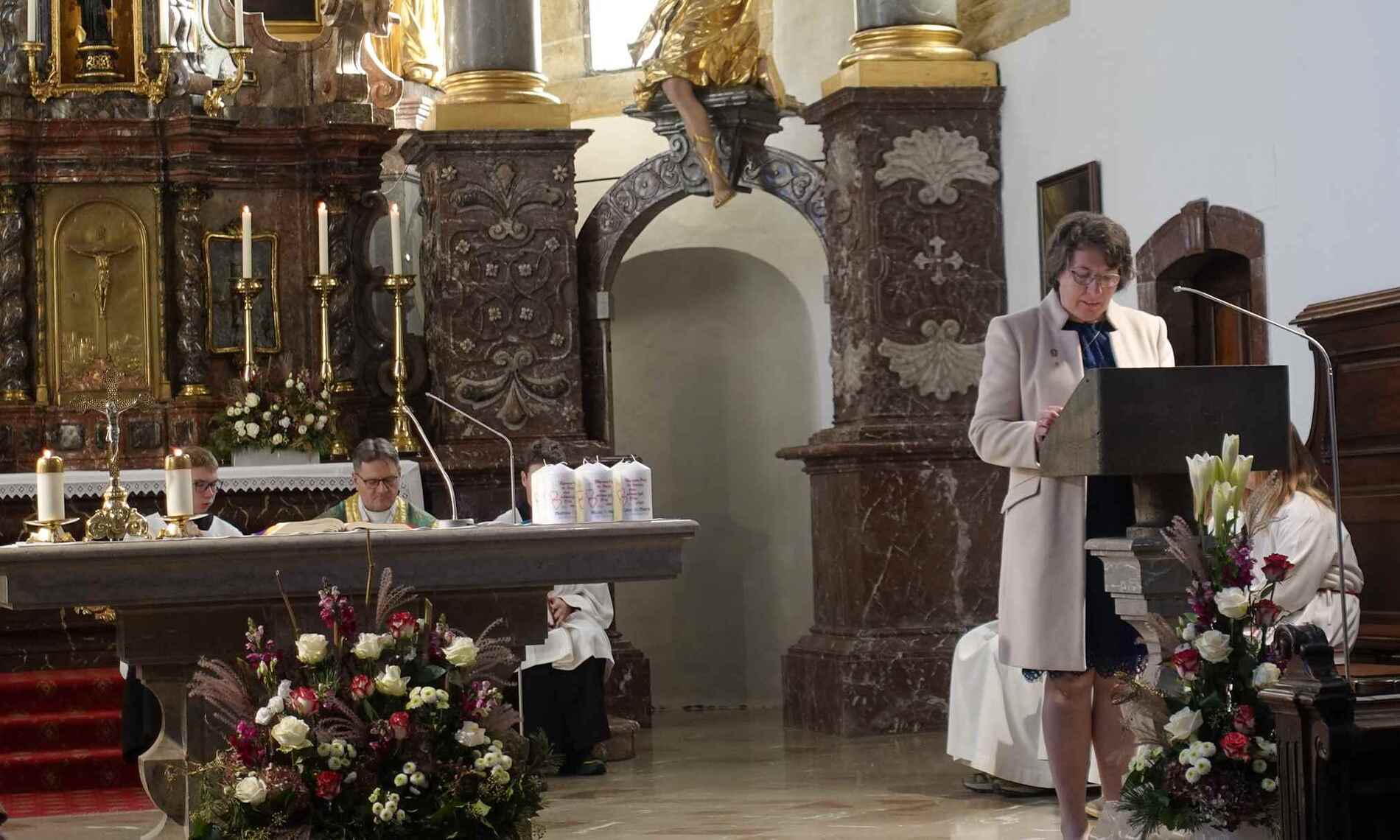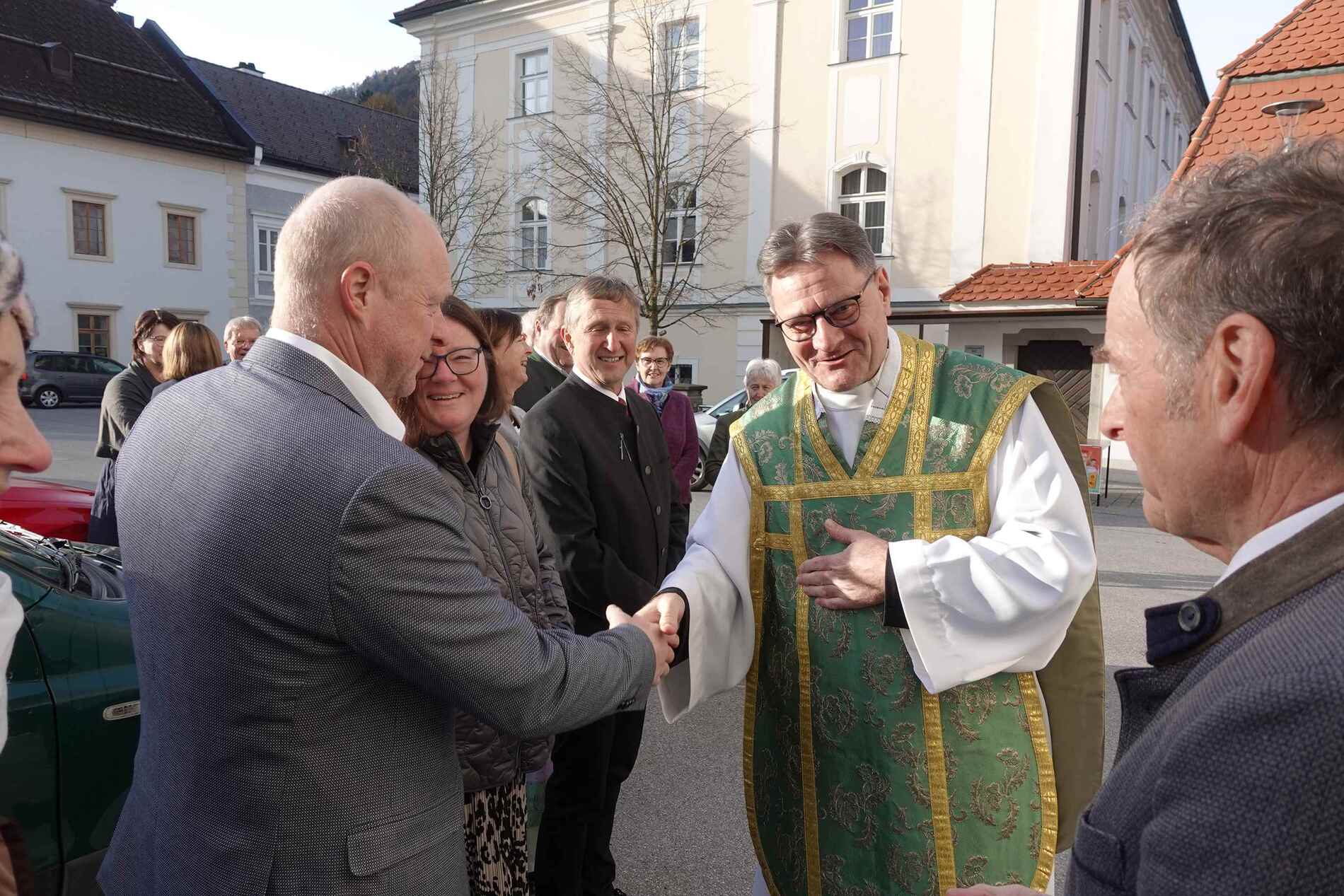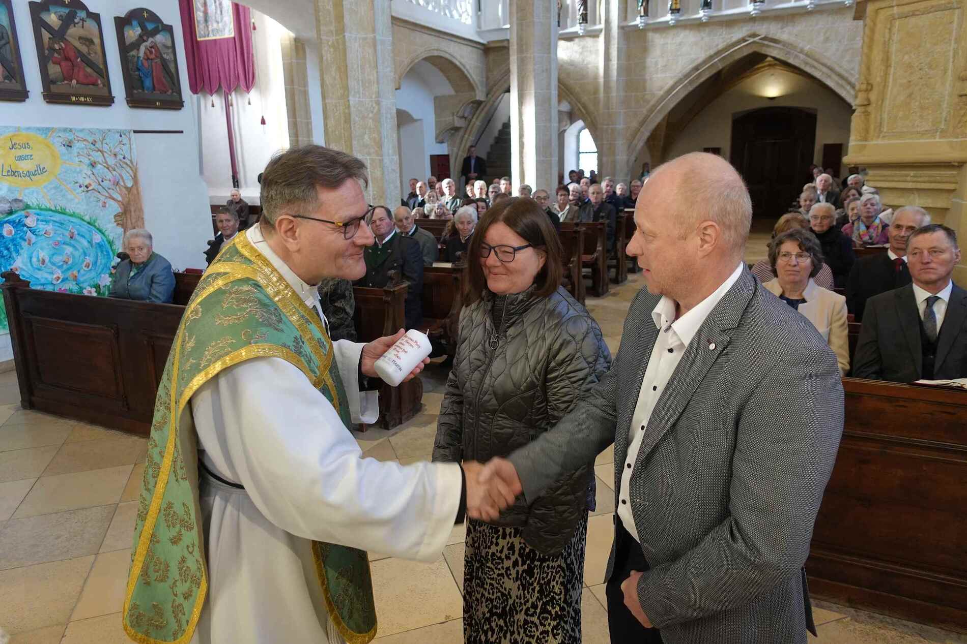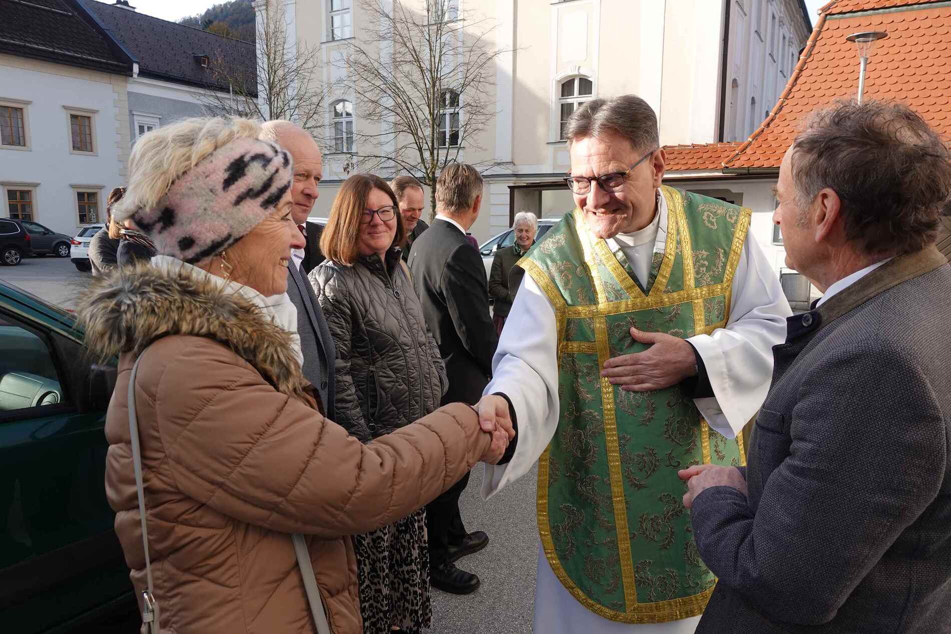P. Jacobus gratulierte den Paaren im Namen der Pfarre und überreichte jedem Ehepaar eine Kerze, die er vorher gesegnet hatte. Die musikalische Gestaltung durch ein Bläserensemble und den Bäuerinnenchor, zur Ehre Gottes und der Jubelpaare, erfreute die ganze Gottesdienstgemeinde. Nach der Festmesse empfing der Vizebürgermeister die Paare im Ferrum, um ihnen ebenfalls zu gratulieren.