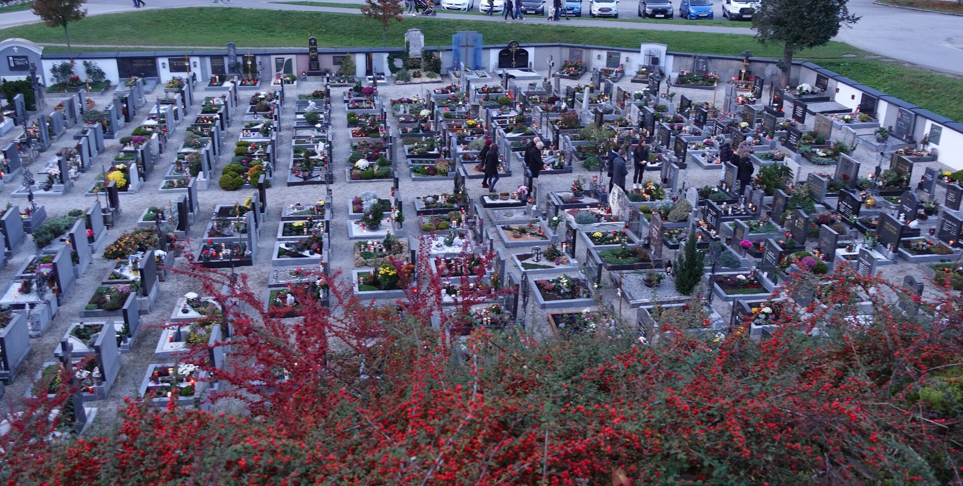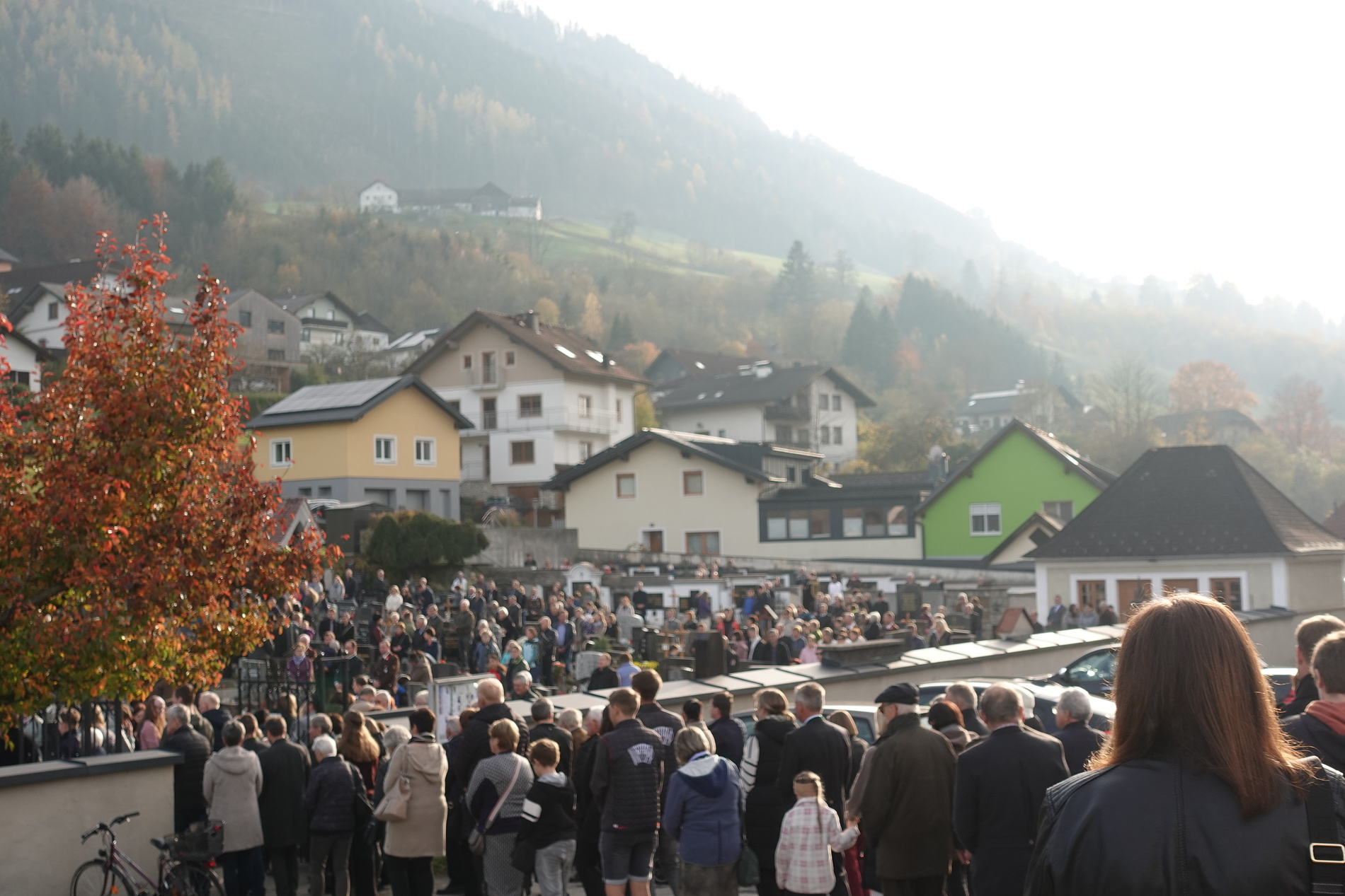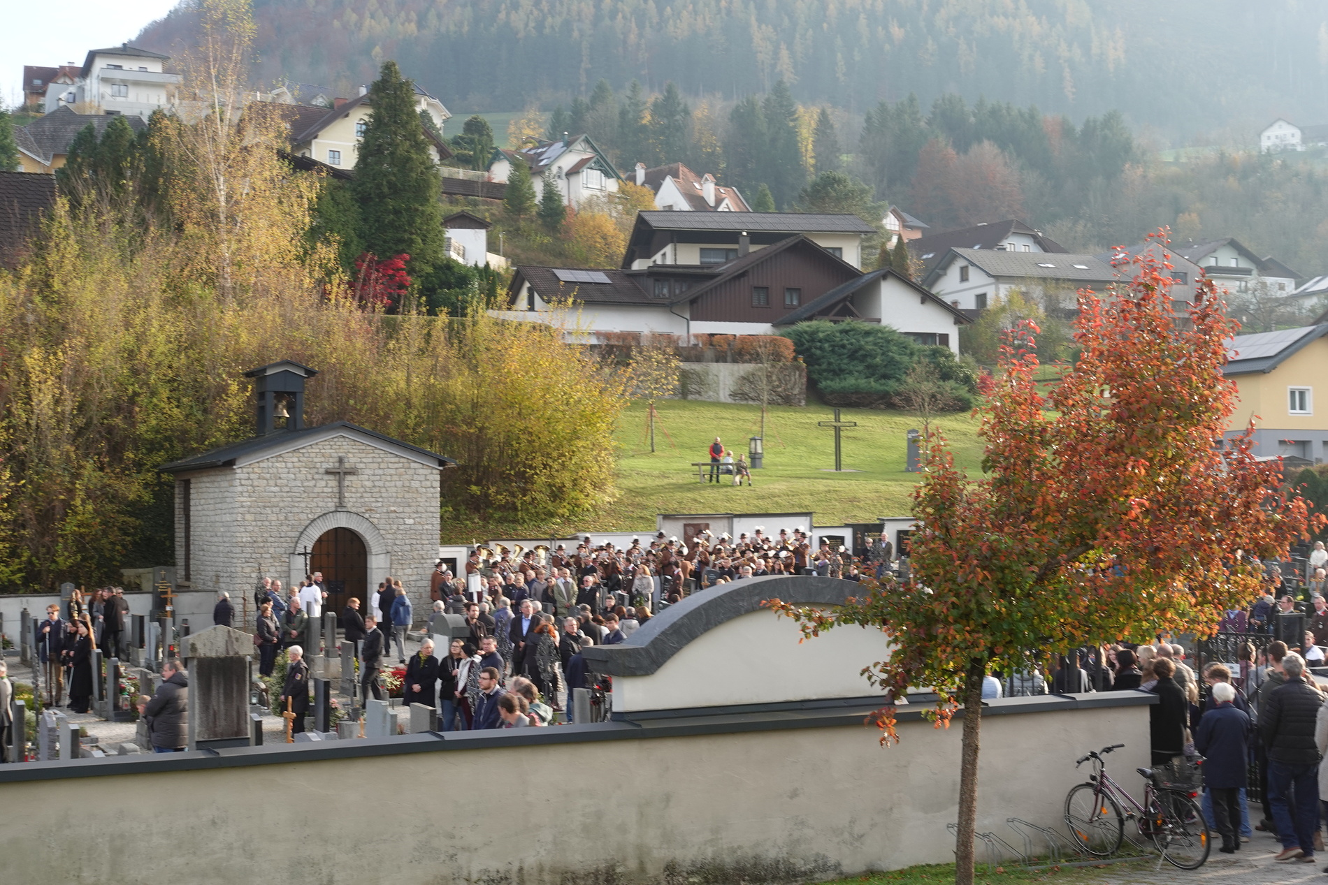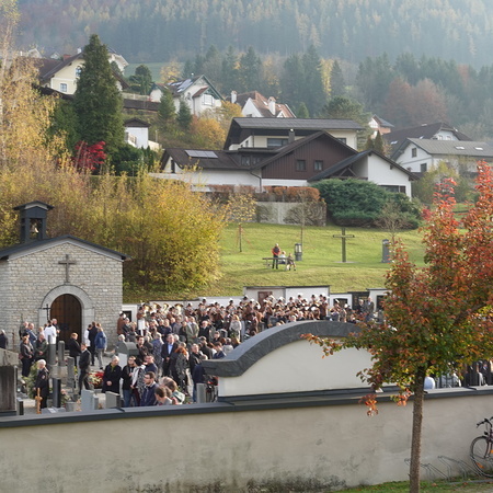 Bei der Totenandacht am Nachmittag wurde vor allem der Verstorbenen Angehörigen und der 33 Pfarrmitglieder gedacht, die seit Allerheiligen letzten Jahres verstorben sind. Nach der Kranzniederlegung im Gedenken an die Gefallenen der beiden Weltkriege erfolgte der Friedhofgang und die Gräbersegnung.