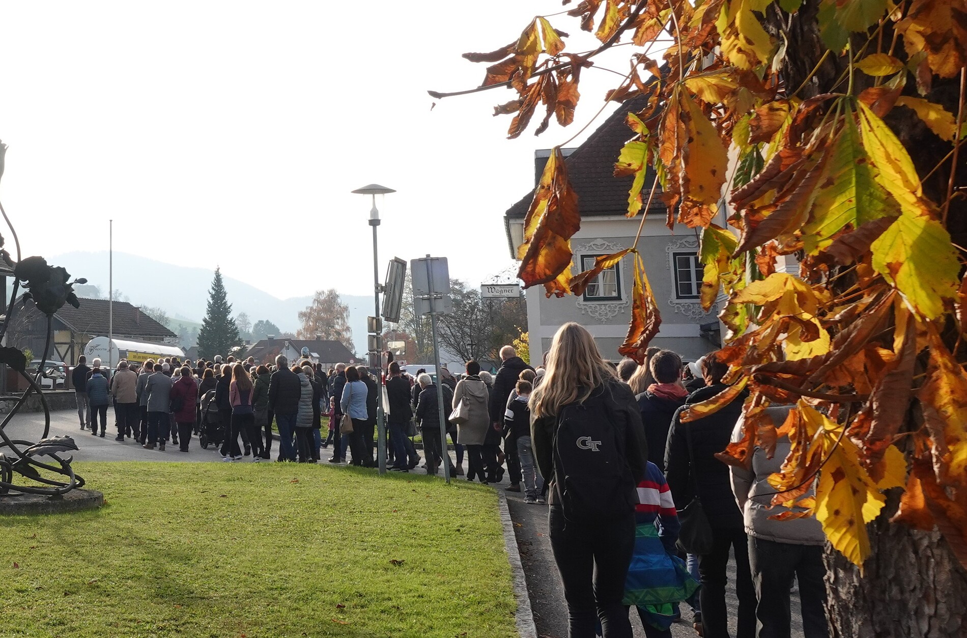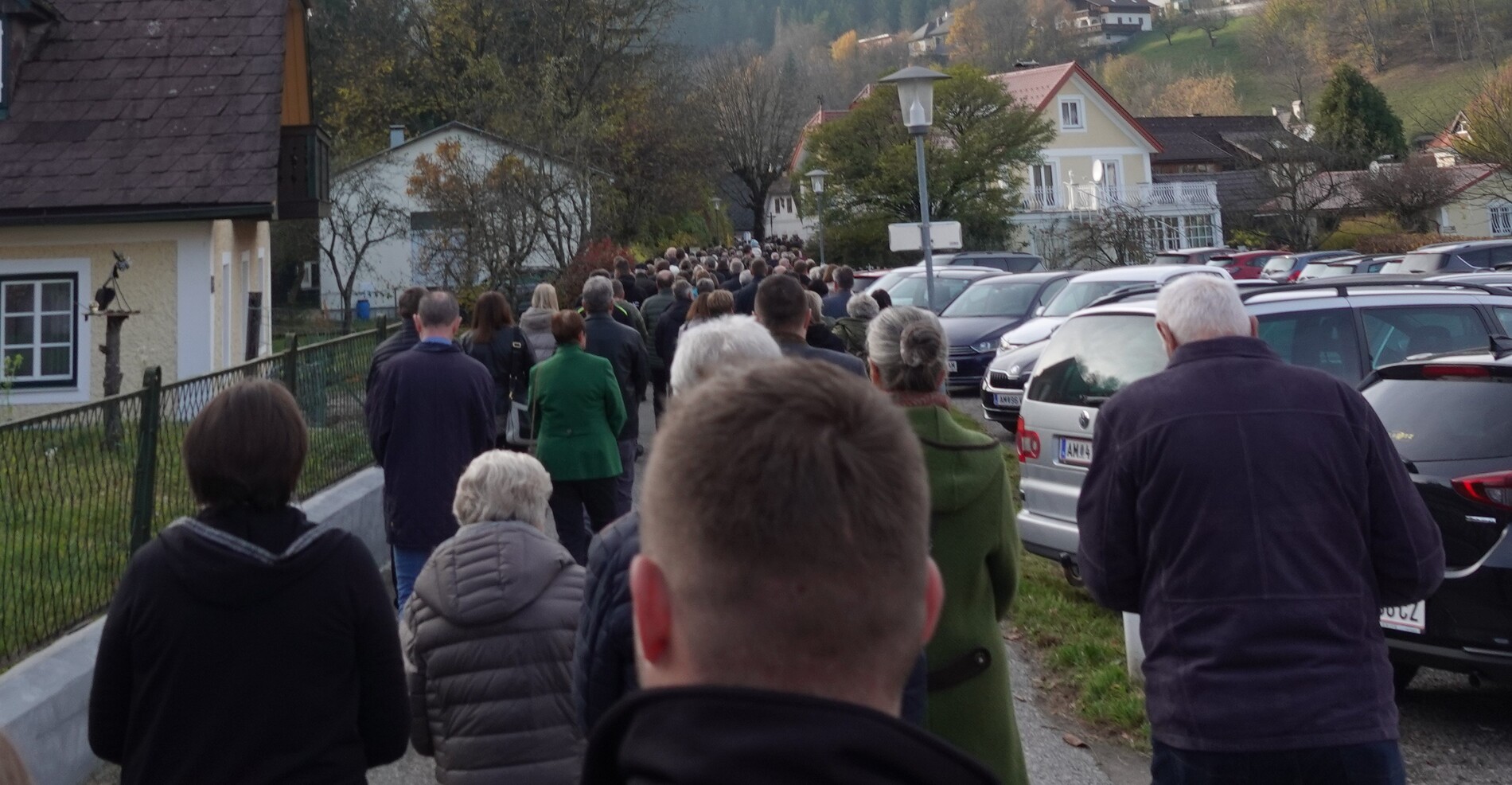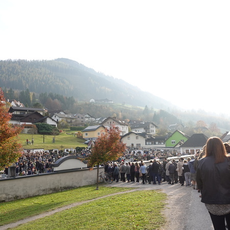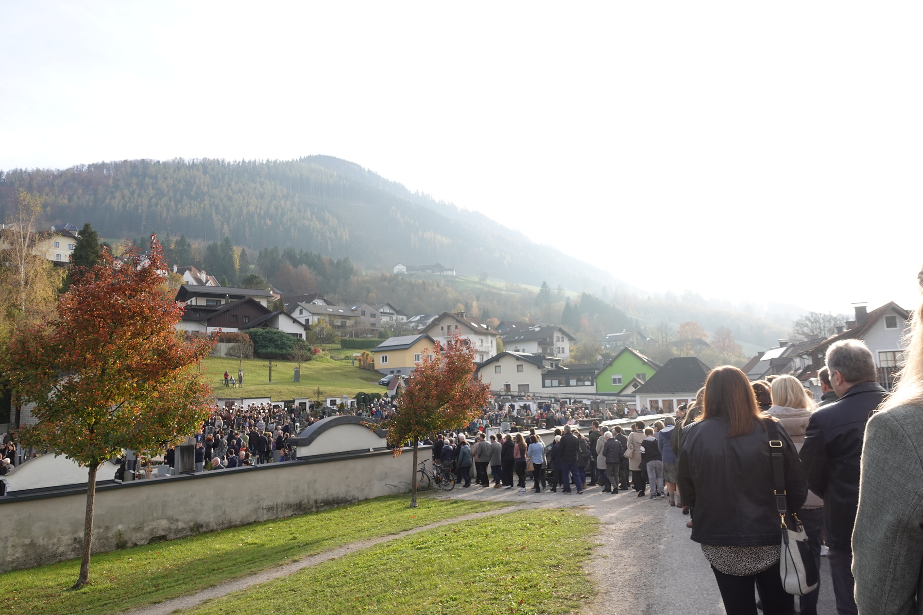 Bei der Totenandacht am Nachmittag wurde vor allem der Verstorbenen Angehörigen und der 33 Pfarrmitglieder gedacht, die seit Allerheiligen letzten Jahres verstorben sind. Nach der Kranzniederlegung im Gedenken an die Gefallenen der beiden Weltkriege erfolgte der Friedhofgang und die Gräbersegnung.