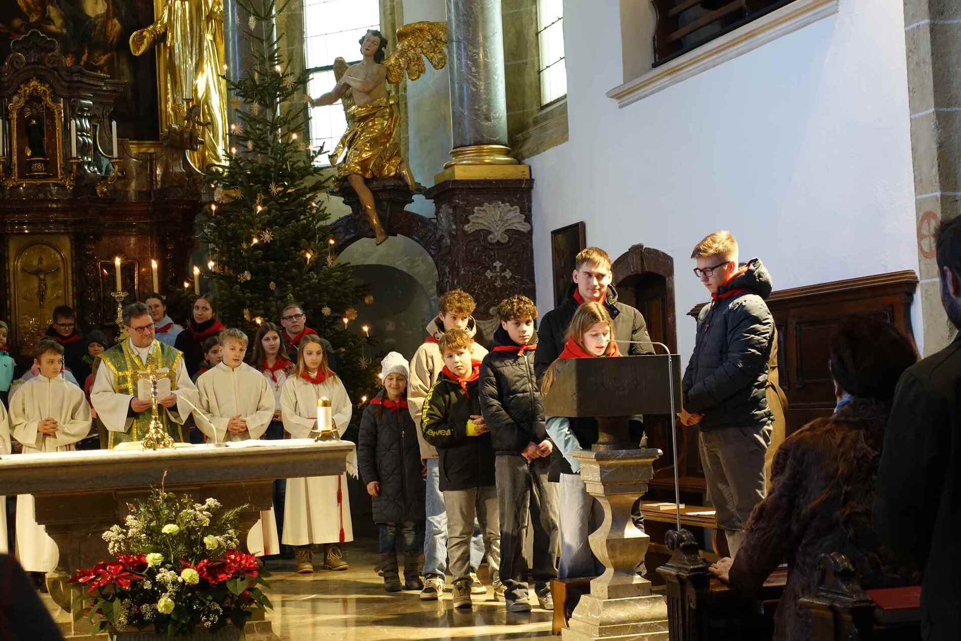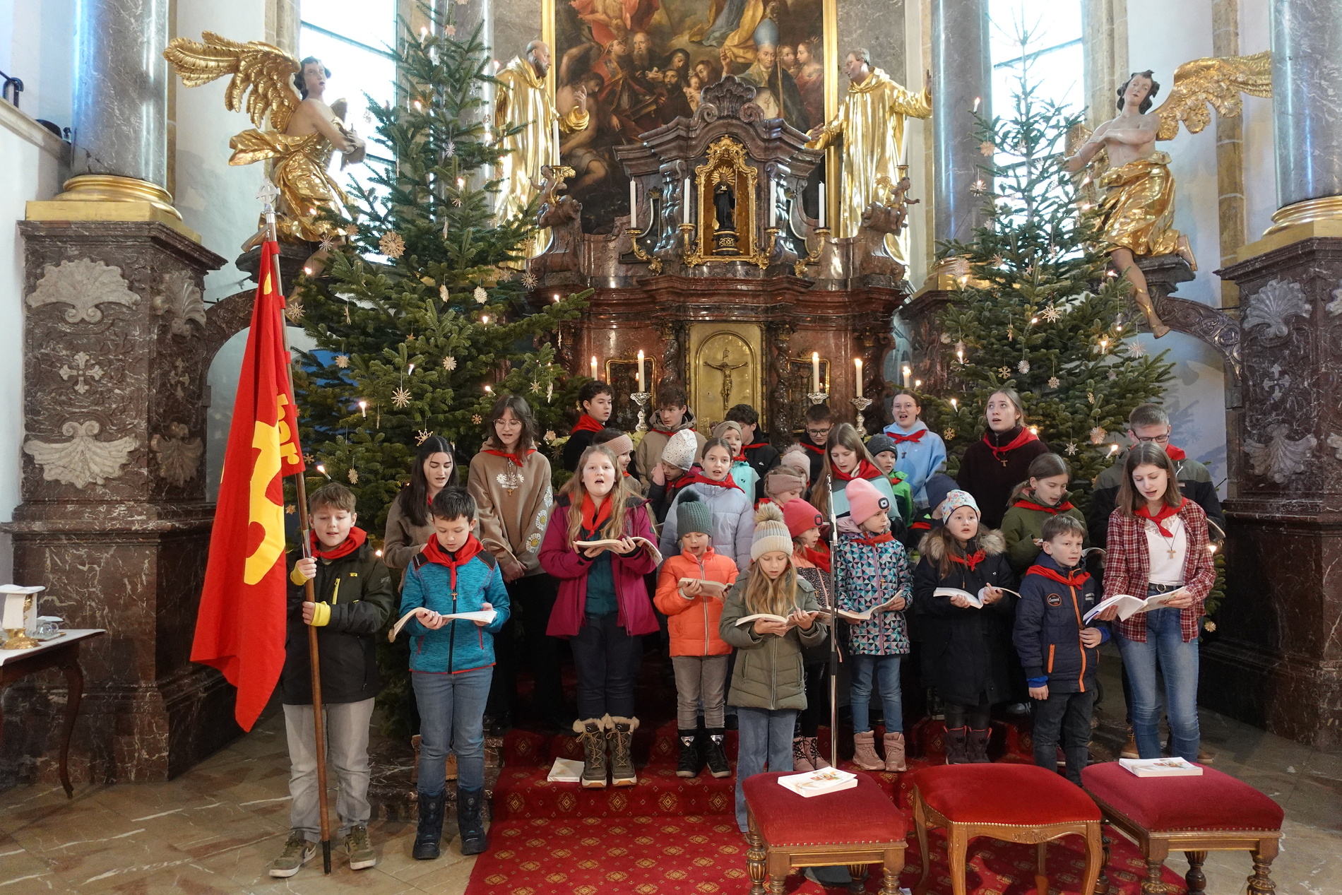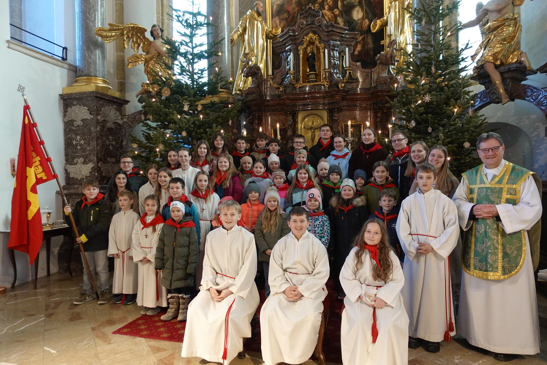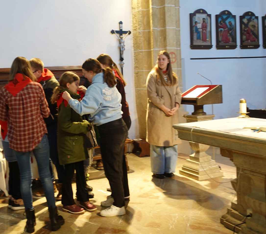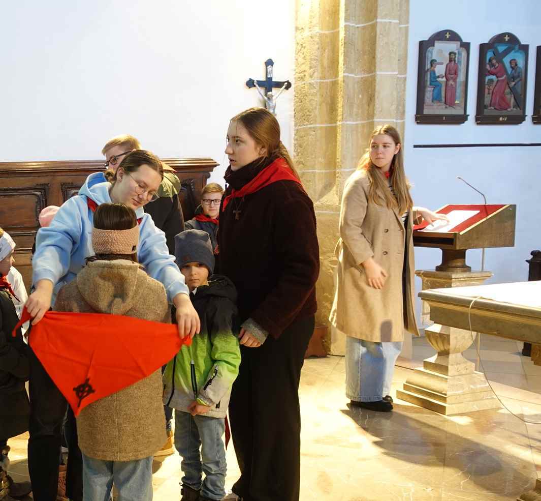 Sichtlich stolz und voll Freude waren die neuen Jungscharkinder, die durch die Überreichung des Jungschartuches und eines Kreuzes, das vorher gesegnet wurde, in die Gemeinschaft aufgenommen wurden - auch neue Jungscharleiter und -leiterinnen waren dabei.