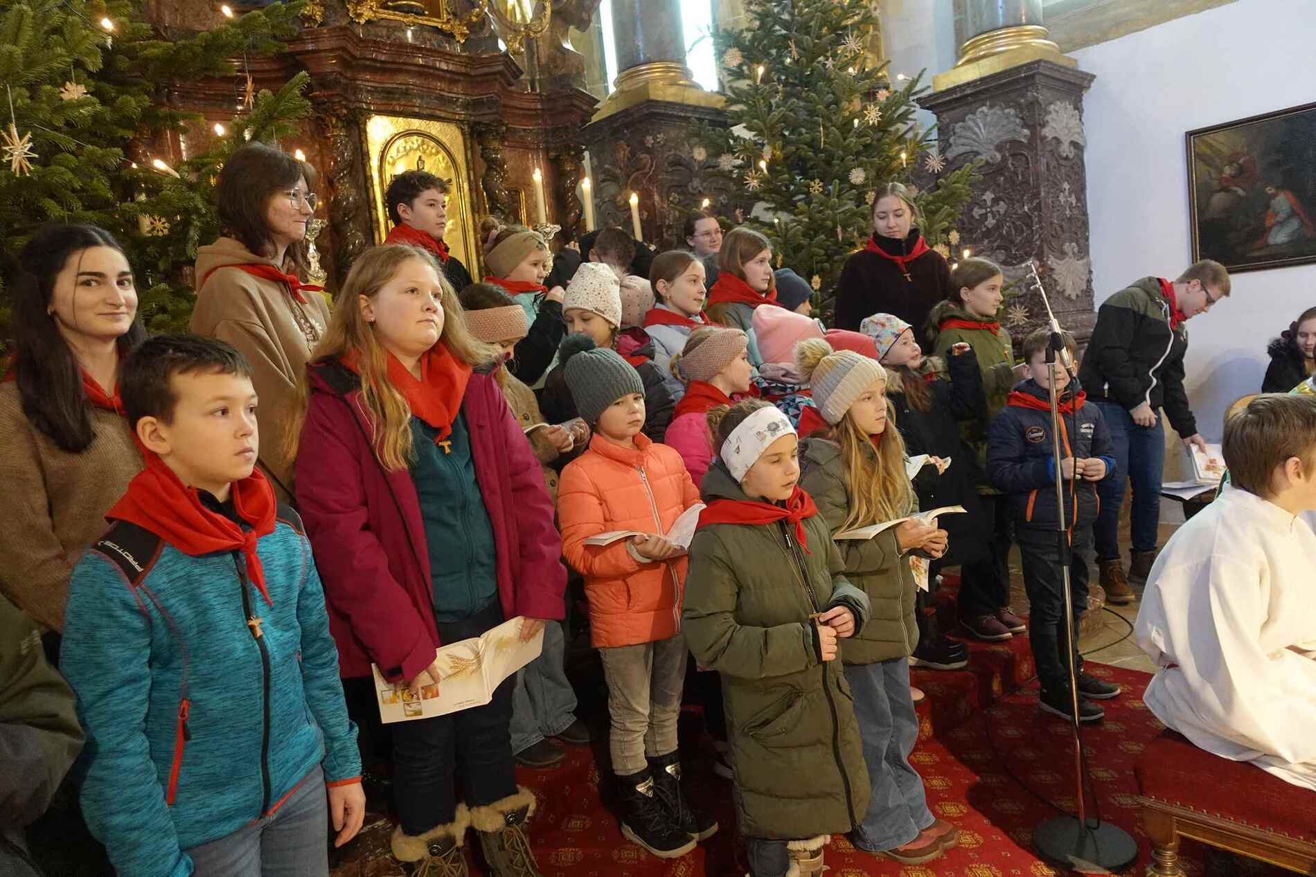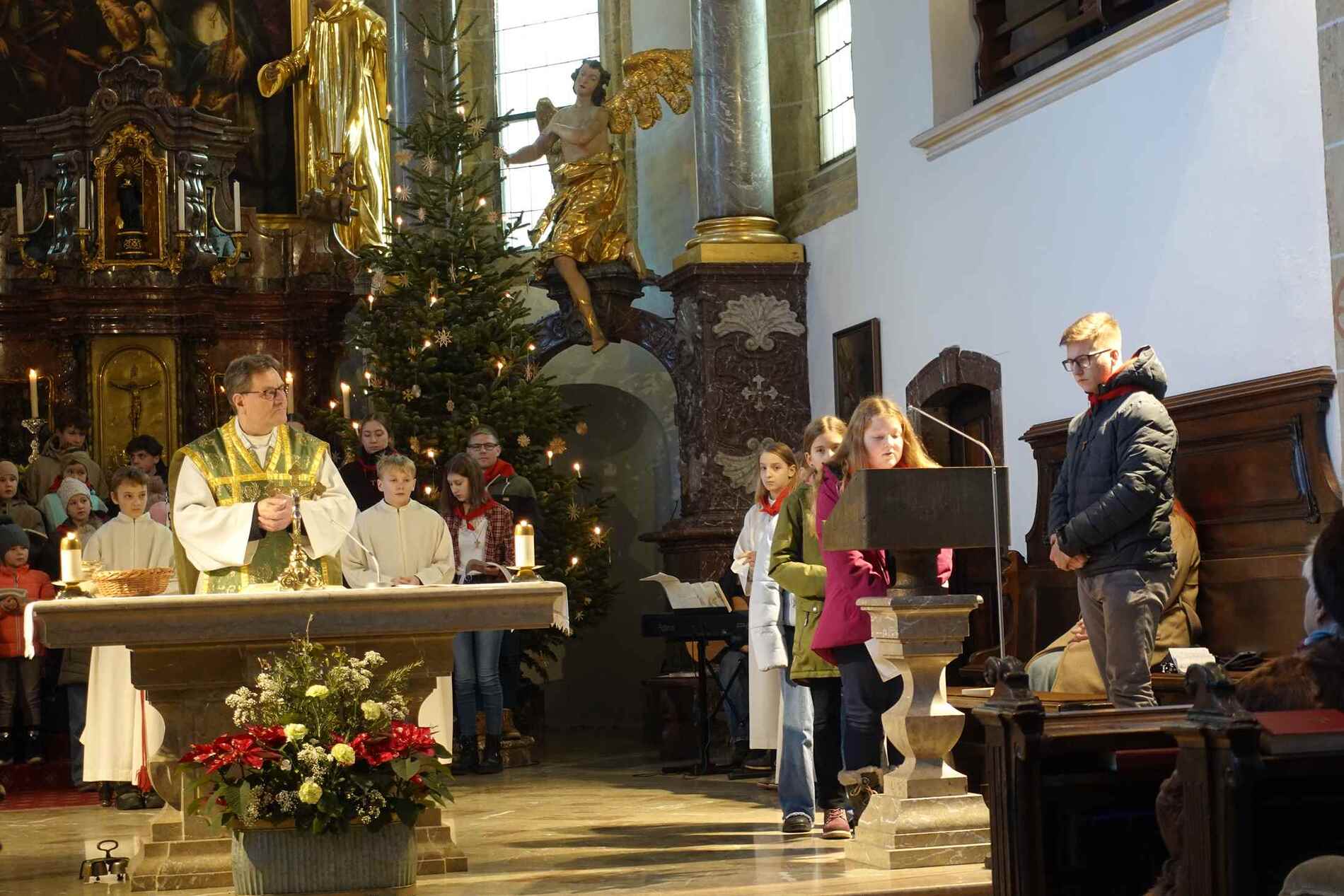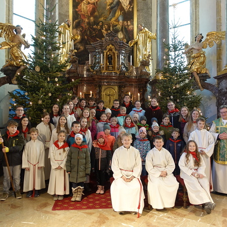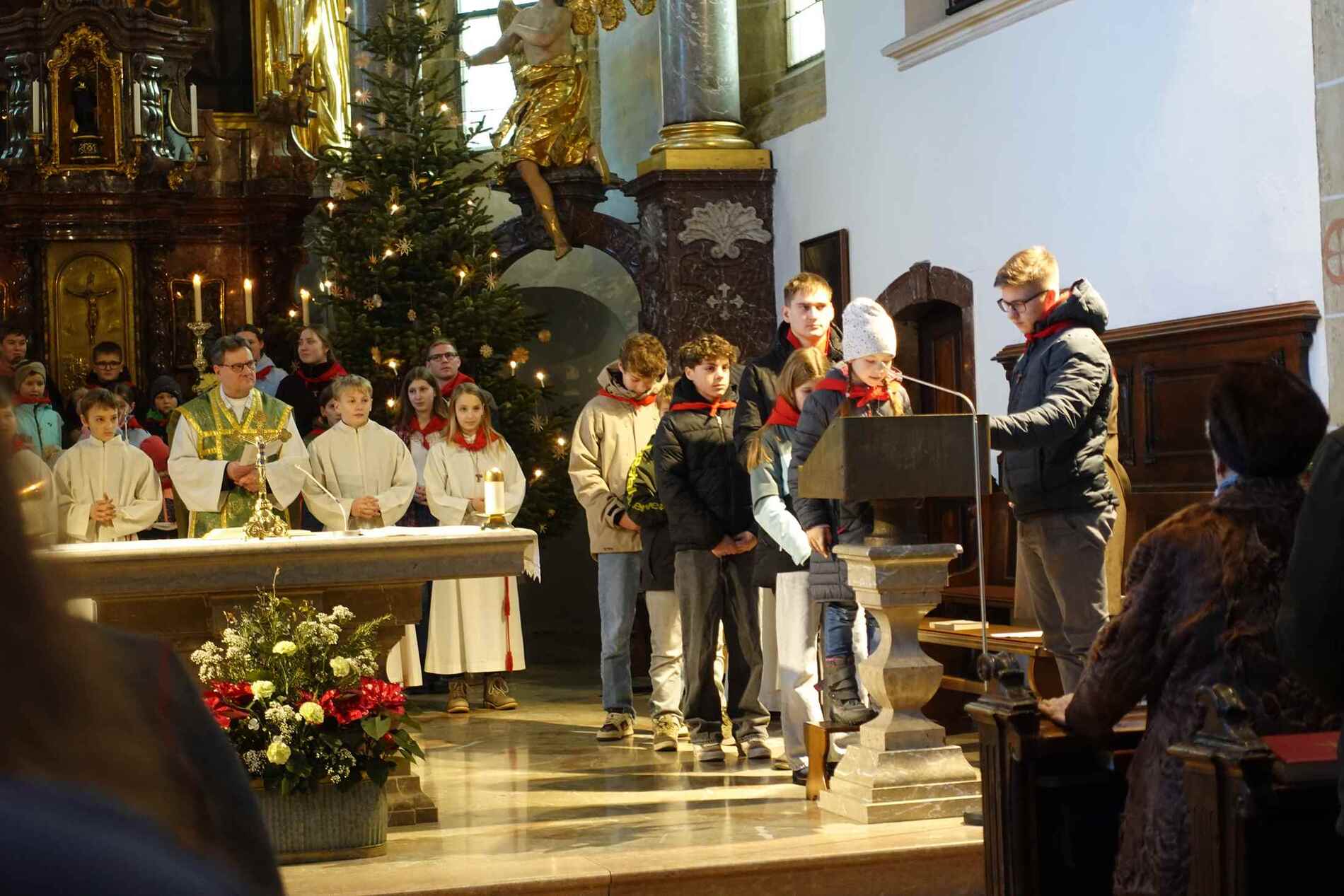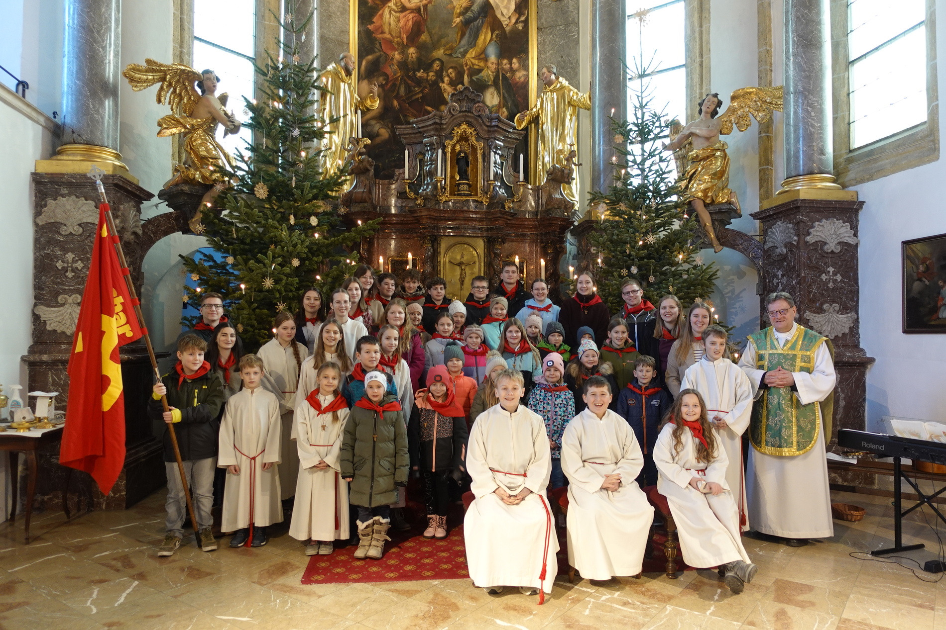Sichtlich stolz und voll Freude waren die neuen Jungscharkinder, die durch die Überreichung des Jungschartuches und eines Kreuzes, das vorher gesegnet wurde, in die Gemeinschaft aufgenommen wurden - auch neue Jungscharleiter und -leiterinnen waren dabei.