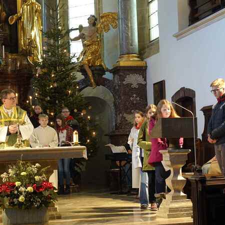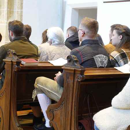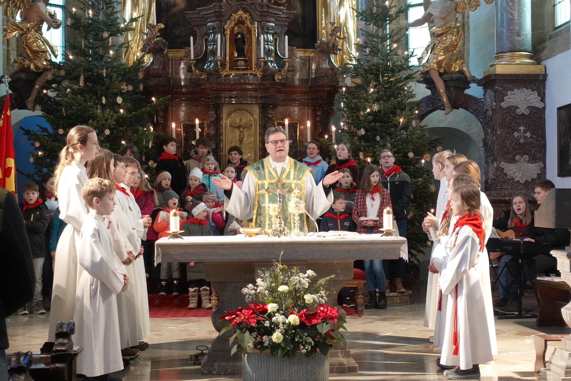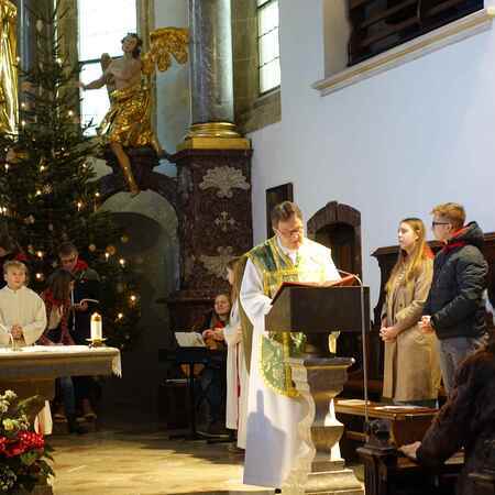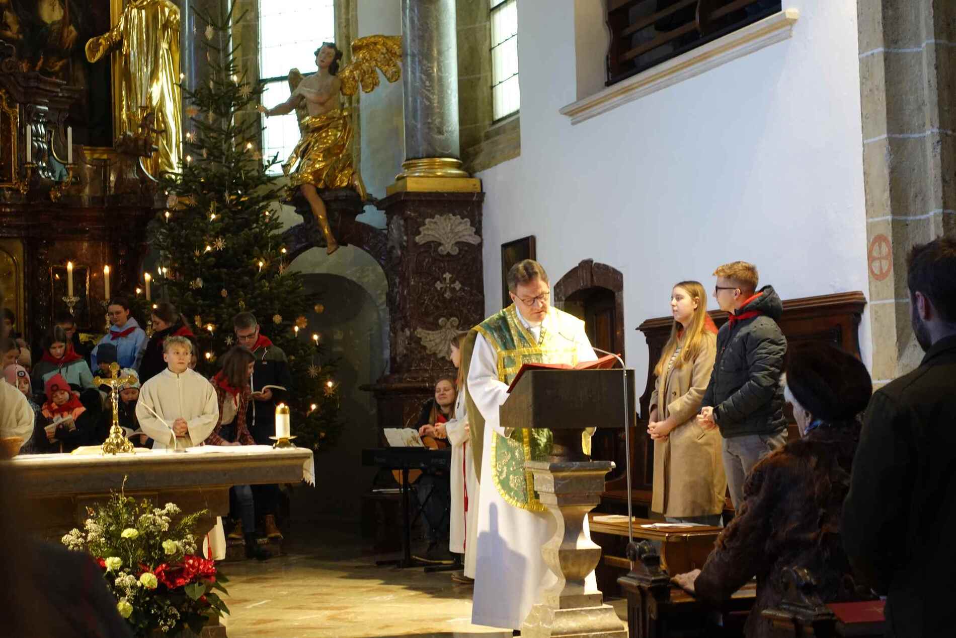 Der Pfarrer freute sich über soviel Jugend in der Kirche und nahm die Predigt zum Anlass, um einen Weg aufzuzeigen, an dem man sich geistig festhalten kann. Er wies auf den Täufer Johannes hin, der bereits vor 2000 Jahren die Menschen zu Jesus führte und gesagt hat "auf ihn sollt ihr hören." Für den Glaubenden ist es heute nicht leicht, sich zur Kirche zu bekennen. Doch wenn wir uns trotz allen Gegenwindes zu Gott bekennen, werden wir entdecken, dass Gott uns liebt und seine Gnade schenkt. Er verheißt uns Großes für dieses Leben und einst die ewige Freude in seinem Reich. Wer an Christus glaubt, wird entdecken, dass jeder Tag ein Gottesgeschenk ist. Gott lenkt unser Leben, seine Liebe nimmt uns nicht die Freiheit, sondern schenkt sie uns. Denn wahre Freiheit bedeutet nicht Willkür und Egoismus, sondern Hingabe in Liebe, um gerade so zu sich selbst, zu den anderen und zu Gott zu finden.