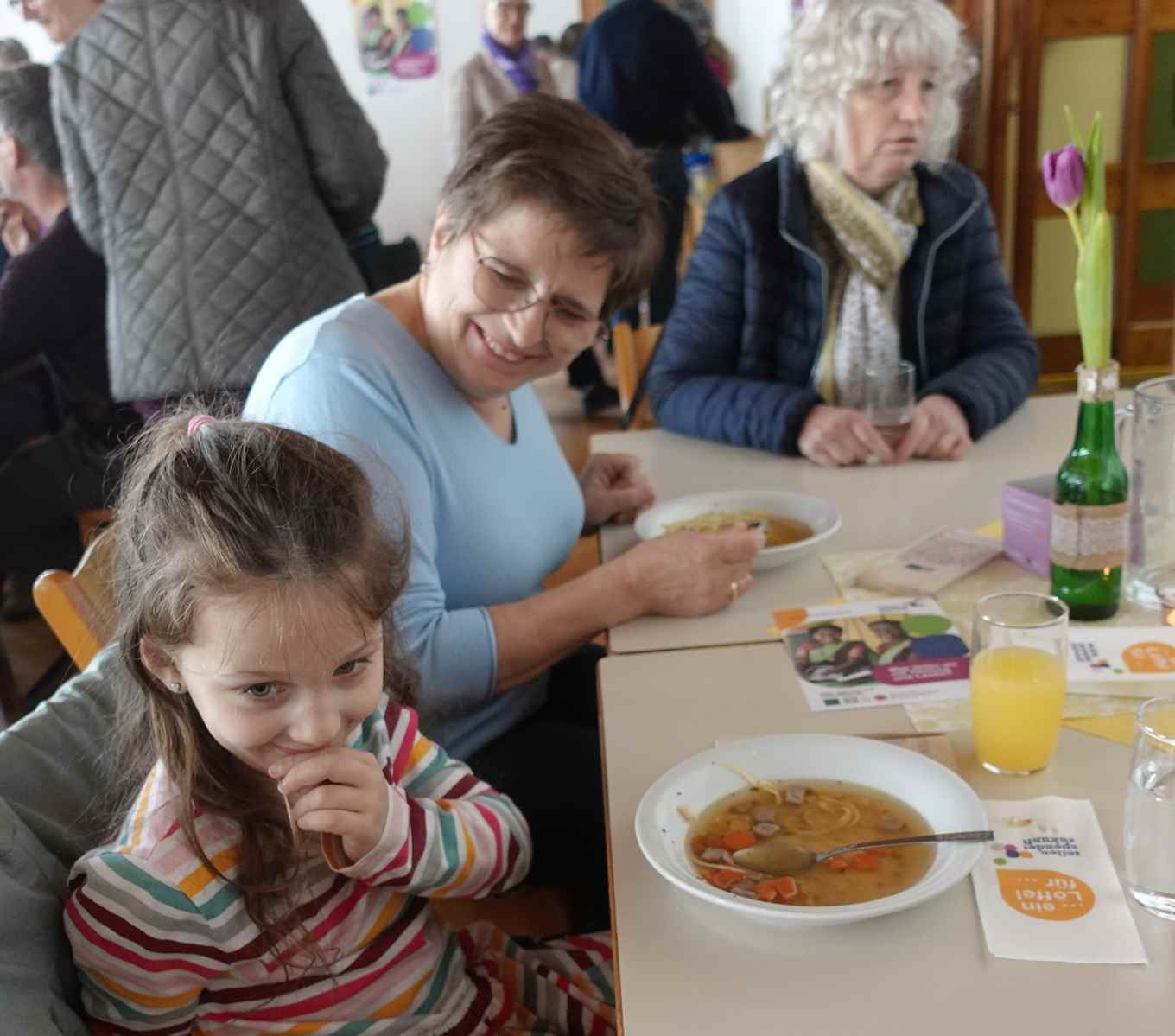 Bei angeregten Gesprächen und freundschaftlichem Beisammensein wurde dieser Sonntag zu einem gelungenen Zeichen der Solidarität und des Miteinanders - das zeigt auch das erfreuliche Spendenergebnis bei der Fastensuppe von 1.627,70 Euro bzw. ein Umsatz von 1.642 Euro beim Weltladenverkauf. Ein herzliches Dankeschön an alle, die mitgeholfen und teilgenommen haben!