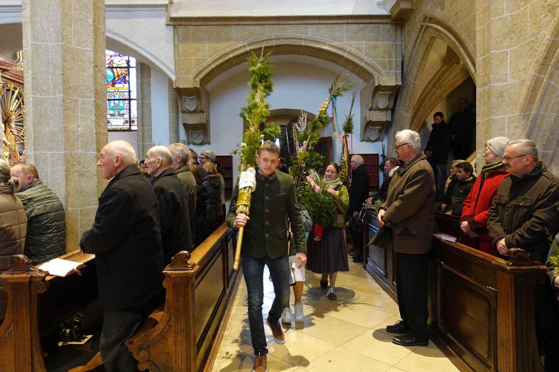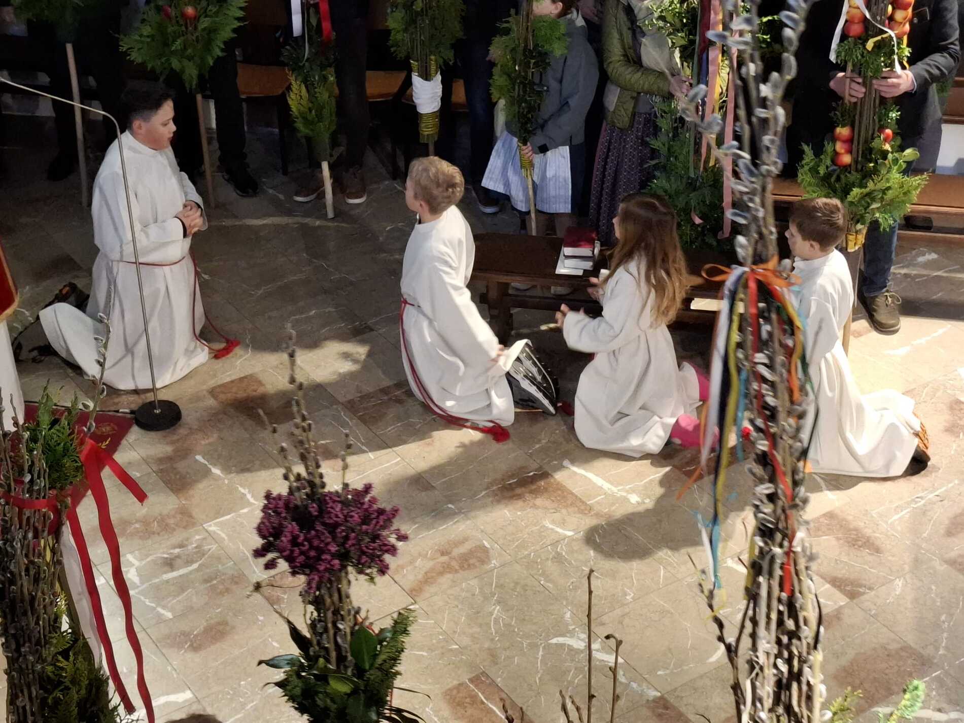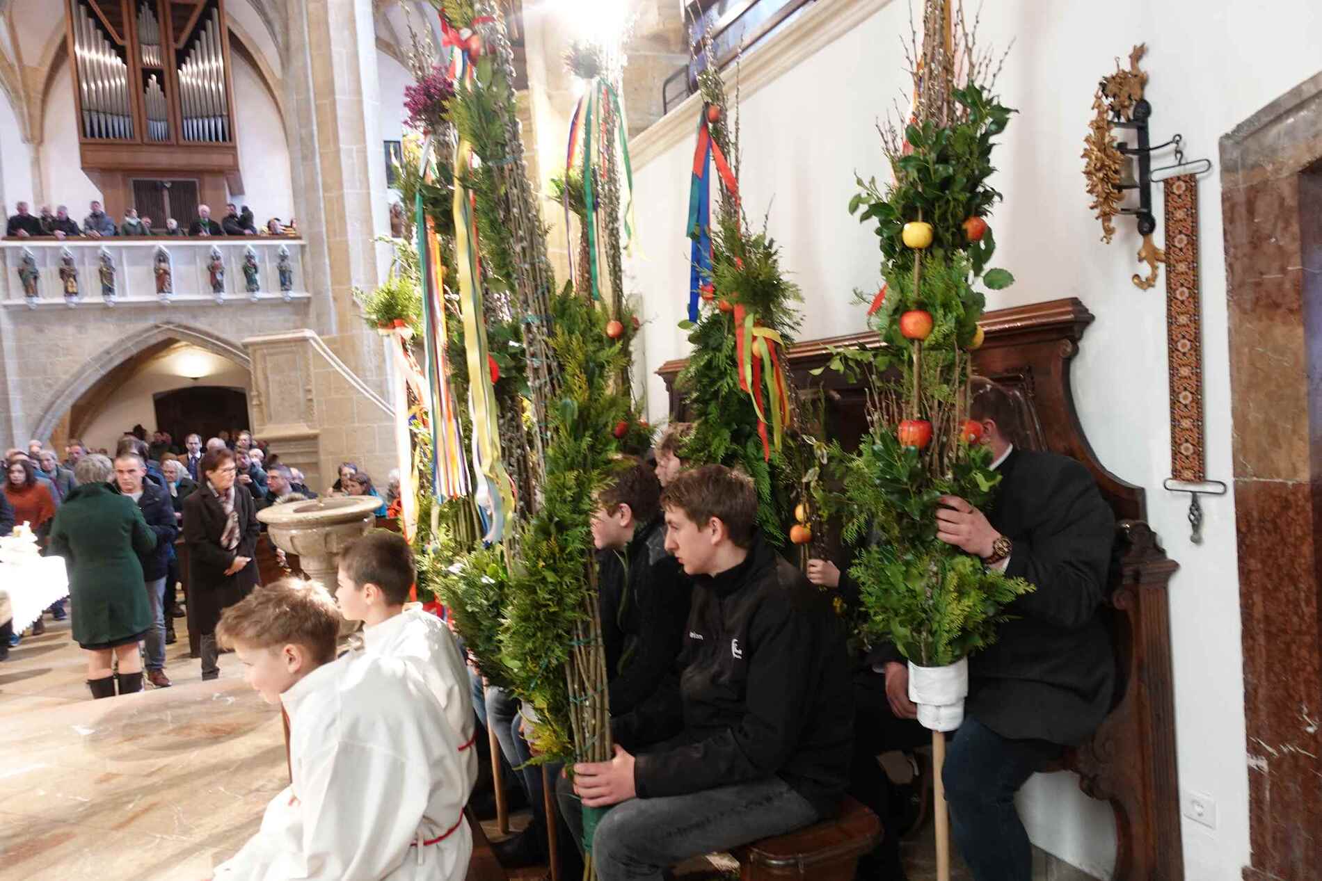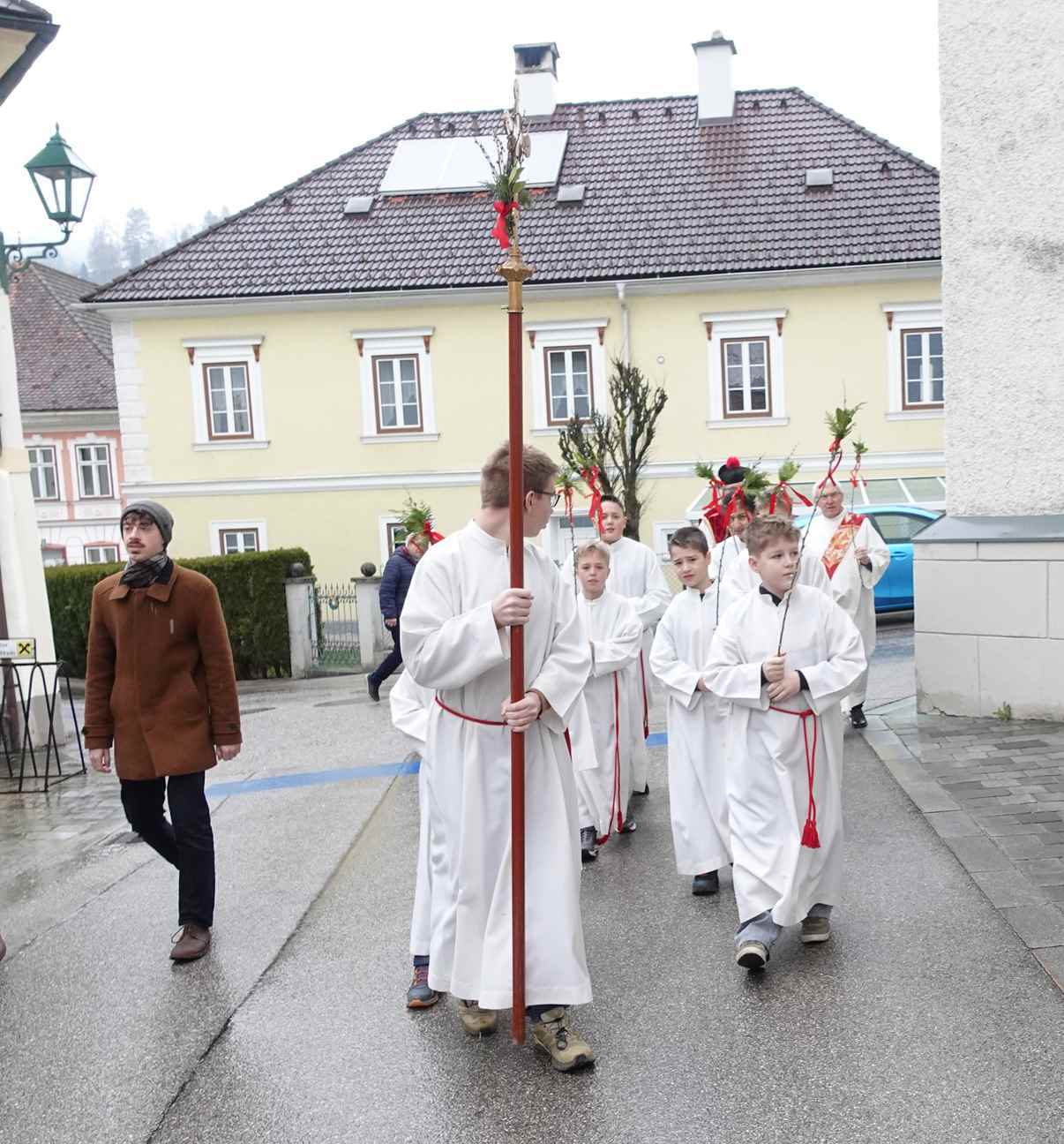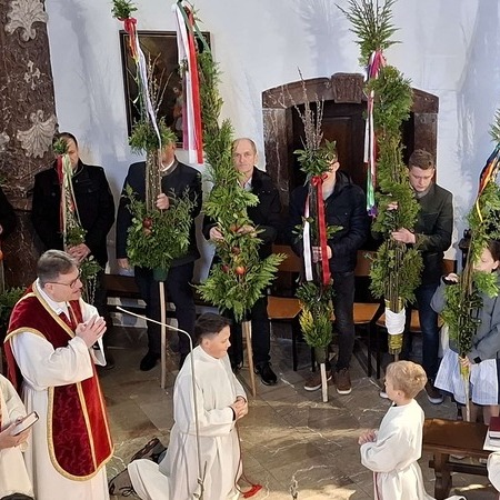 Die gesegneten Palmzweige, besonders die stattlichen und prachtvoll gebundenen Palmbuschen im Altarraum beeindruckten als Zeichen des Glaubens. Sie erinnern an den Einzug Jesu in Jerusalem, wo die Menschen ihm zujubelten, wo man Hosanna rief und ihn hochleben ließ. Der Jubel war aber bald verklungen - in der Passion wurden Leiden und Tod Jesu betrachtet und dann in den heiligen Geheimnissen des Messopfers seine Auferstehung gefeiert.