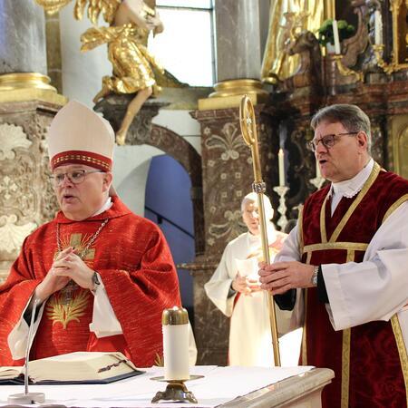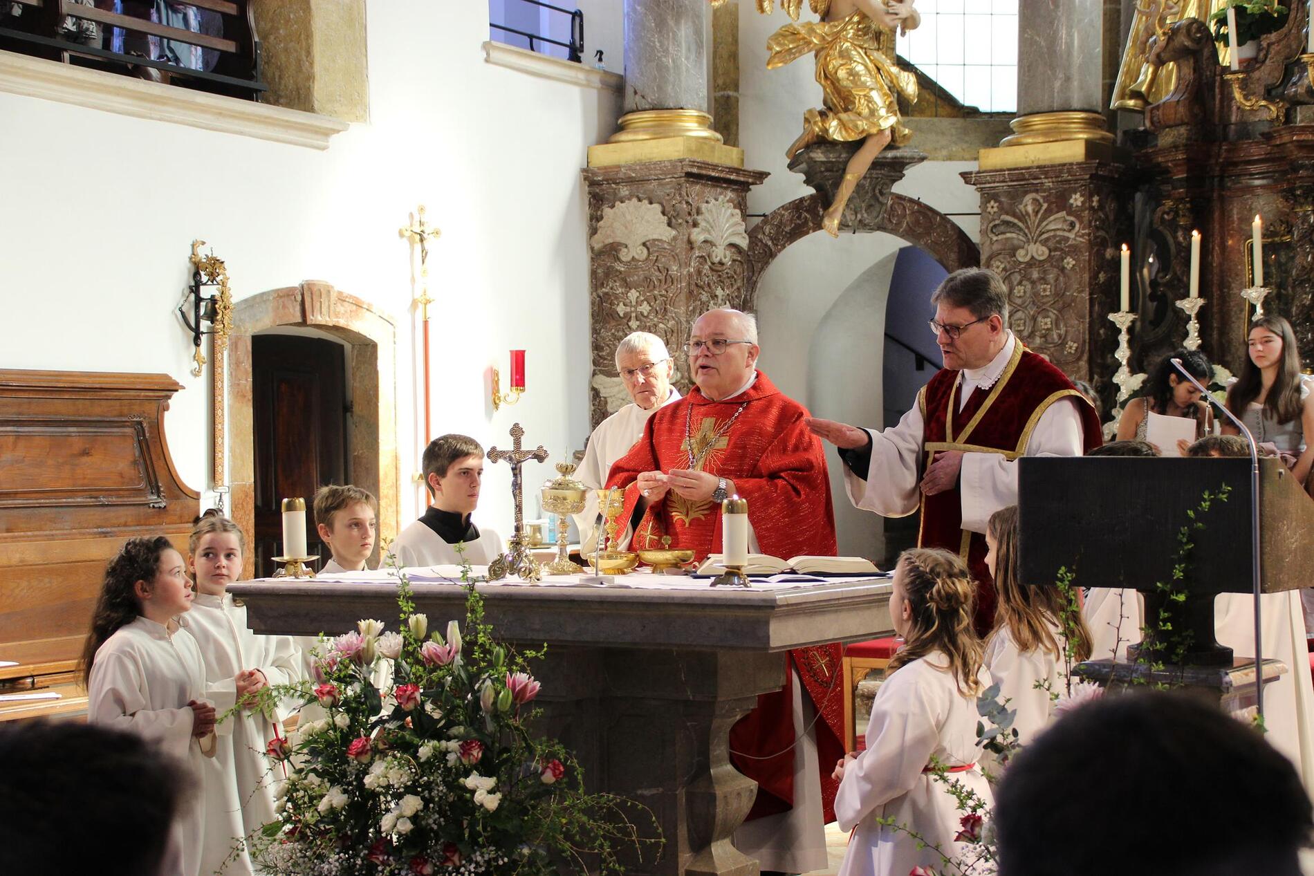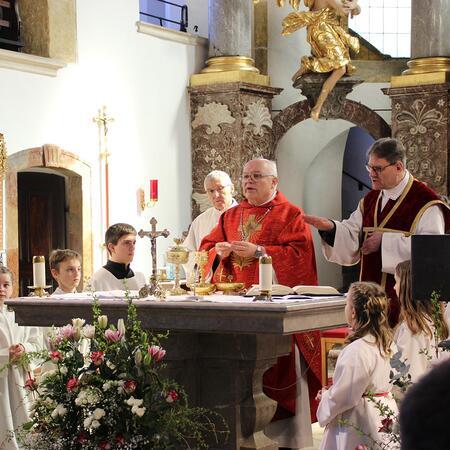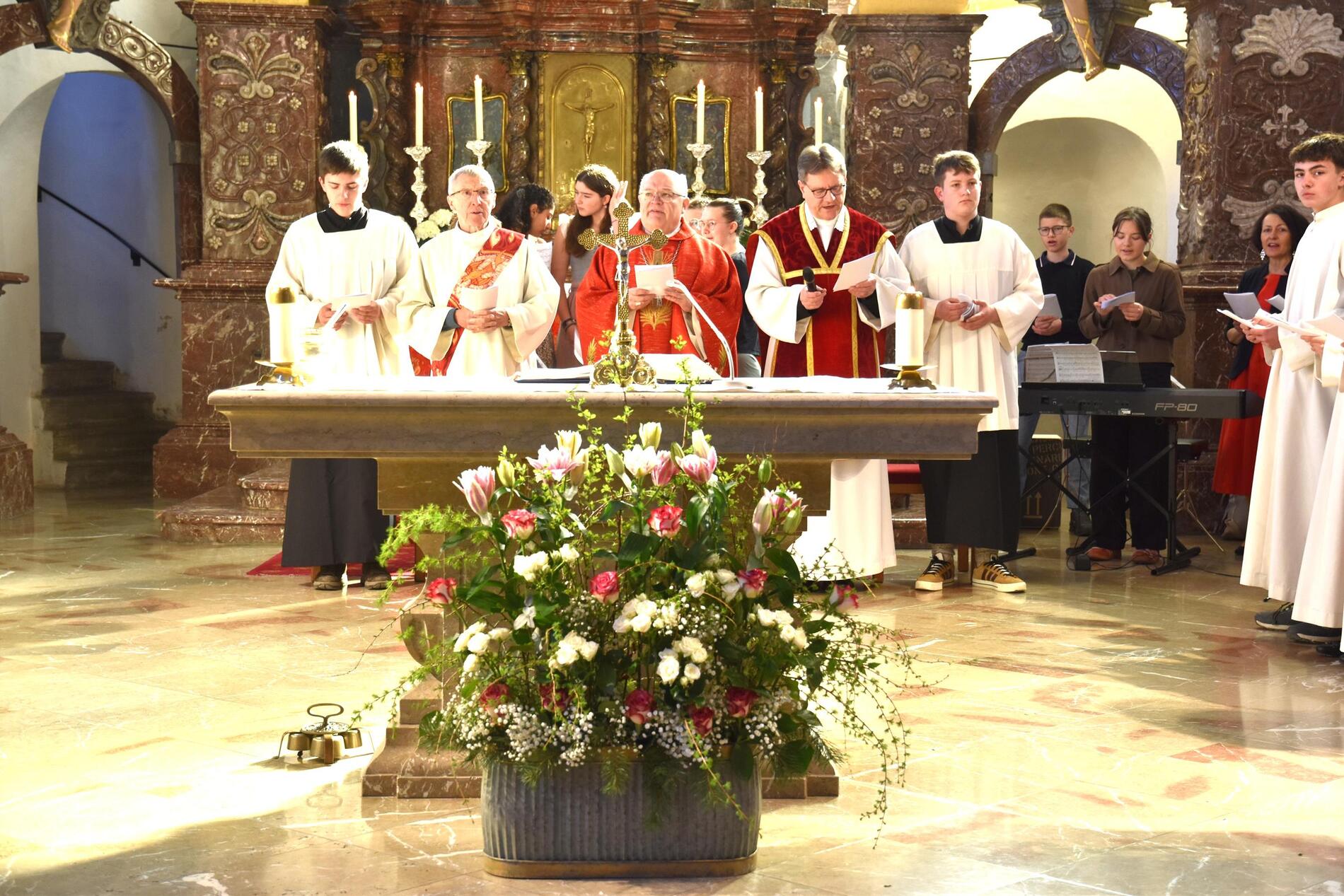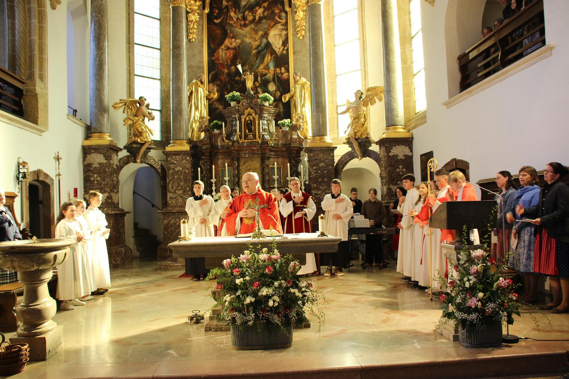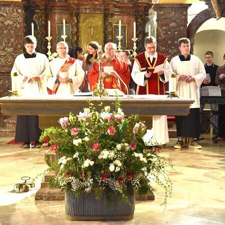 Der Gottesdienst wurde von Geschwistern und Freunden der Firmlinge ansprechend und schwungvoll gestaltet. Abt Petrus versuchte ausgehend vom Evangelium "Ich kenne die Meinen, und die Meinen kennen mich" die Firmlinge für ein Leben in Fülle mit Gott zu begeistern.