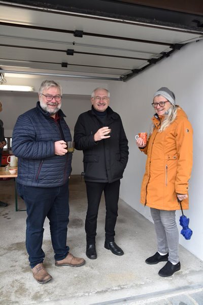 Am Kirchenausgang wurde um Spenden für die Armen in Niederösterreich gebeten, und als Dank gab es ein Teesackerl zum Mitnehmen. Außerdem wurde heißer Tee ausgeschenkt – auch der Himmel hatte ein Einsehen, denn der Regen hörte am Ende des Gottesdienstes auf, so dass sich am Kirchenvorplatz bei einem Glas Glückstee nette Gespräche ergaben. Die nachfolgenden Fotos sollen ein paar Eindrücke geben.