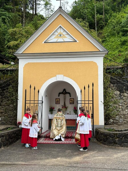 Am Hochfest des Leibes und Blutes Christi, Fronleichnam, begrüßte P. Jacobus herzlich alle, die zahlreich der Einladung in unsere wunderbar geschmückte Kirche gefolgt waren.