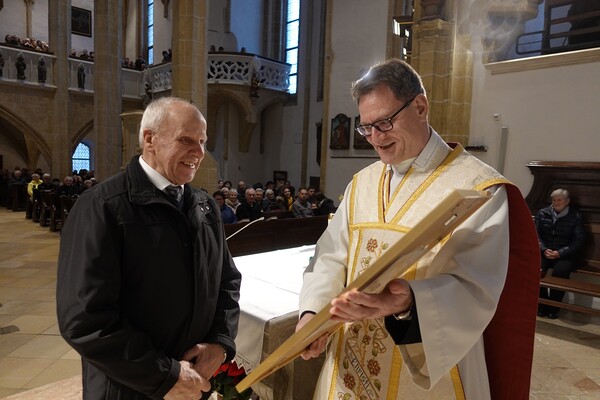 Am Dreikönigstag bedankte sich P. Jacobus nach dem Festgottesdienst bei Pfarrkirchenrat Rudi Dieminger herzlich für seine langjährige, treue und überaus sorgfältige Arbeit in Friedhof und Kirche.