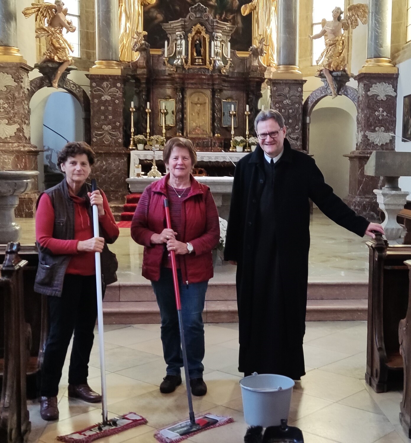 Berta Hirsch und Marianne Heigl sorgen für eine saubere Kirche.